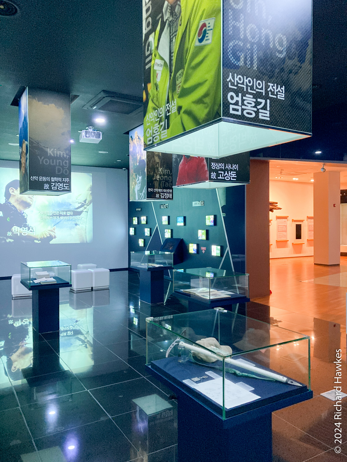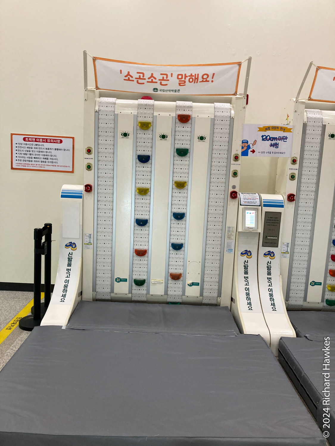 On my way to the lake area, I spotted the National Mountain Museum (국립산악박물관), so thought, “Why not!”. It’s free, on four storeys, and features displays on mountains, mountaineering, and also has climbing walls and lessons available. I didn’t use the climbing walls, but I found the displays of old mountaineering equipment quite interesting. There’s also a rooftop terrace with views all the way to Seoraksan (assuming the construction site next door isn’t planning to block the view with whatever’s going on there!).