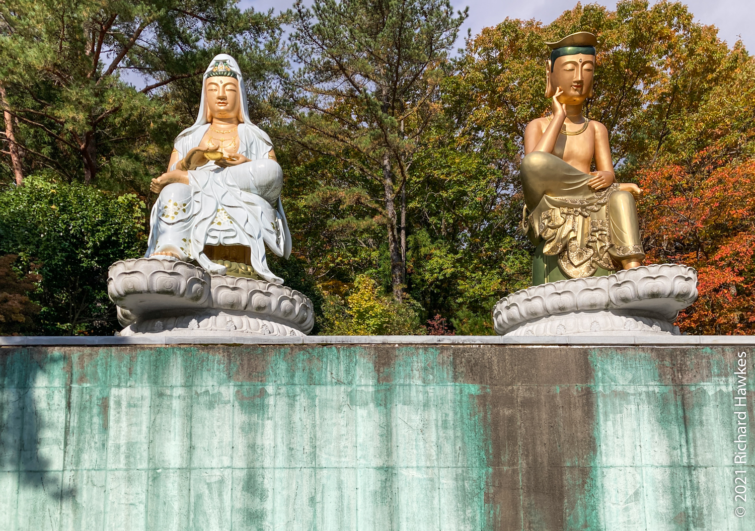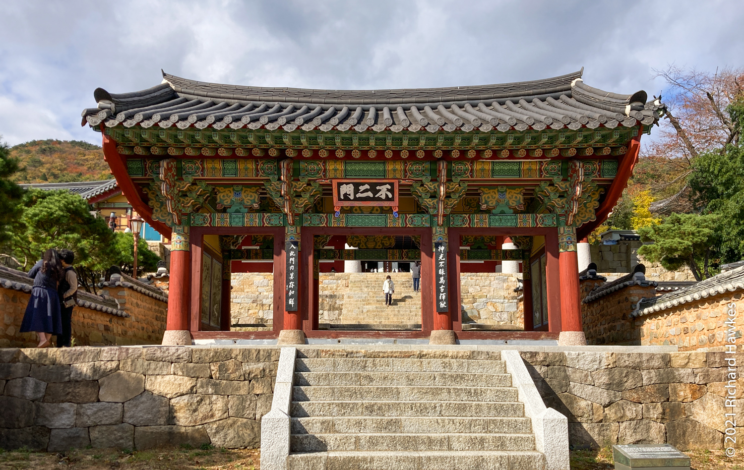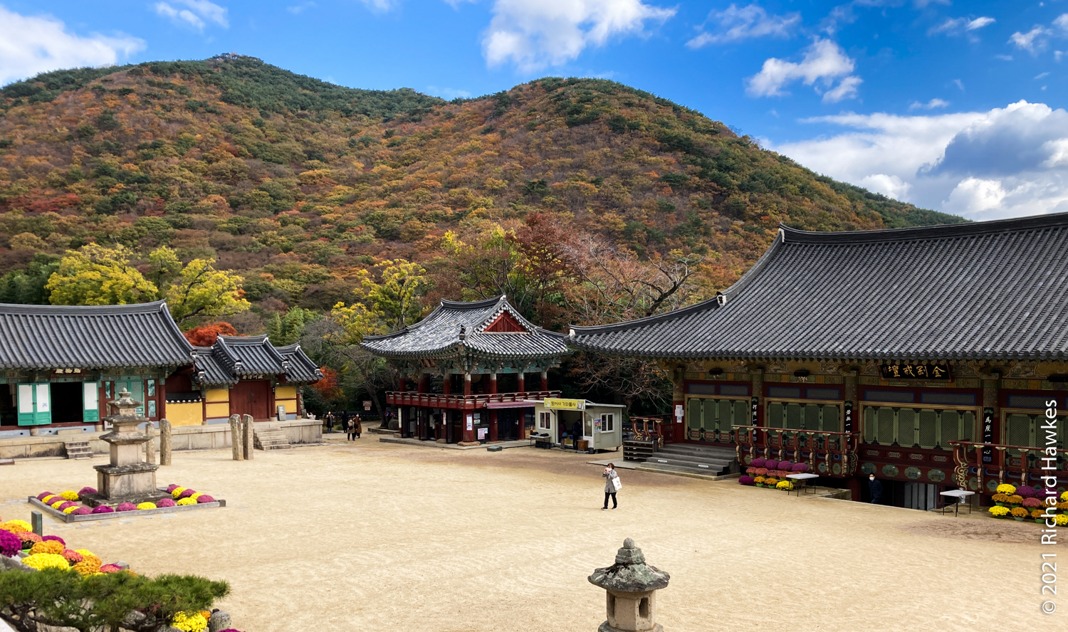 After a long toilet stay (thanks for ordering the spicy pizza last night Ryan…), I was on the train to one of the recommended mountain trails, Geumjeongsan (금정산). You can start at Beomeosa Temple (범어사) which takes about an hour from Songjeong Beach; just head to Beomeosa Station on the subway, in the north part of Busan. The entrance to the park and temple are very nice and I recommend going to the right of the temple and visiting Cheongryeonam hermitage (청련암) after you look at the main temple. The hermitage has lots of interesting statues in a central square area; a woman seemed to be circling it and praying each time around. There were a few plastic water bottles at some of the statues; my initial thought was “Rubbish? Here?” but then I thought that they must be offerings!