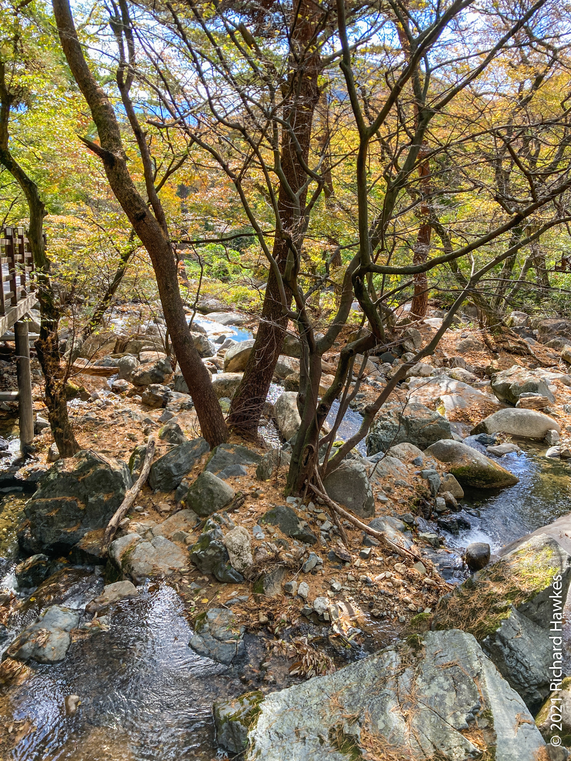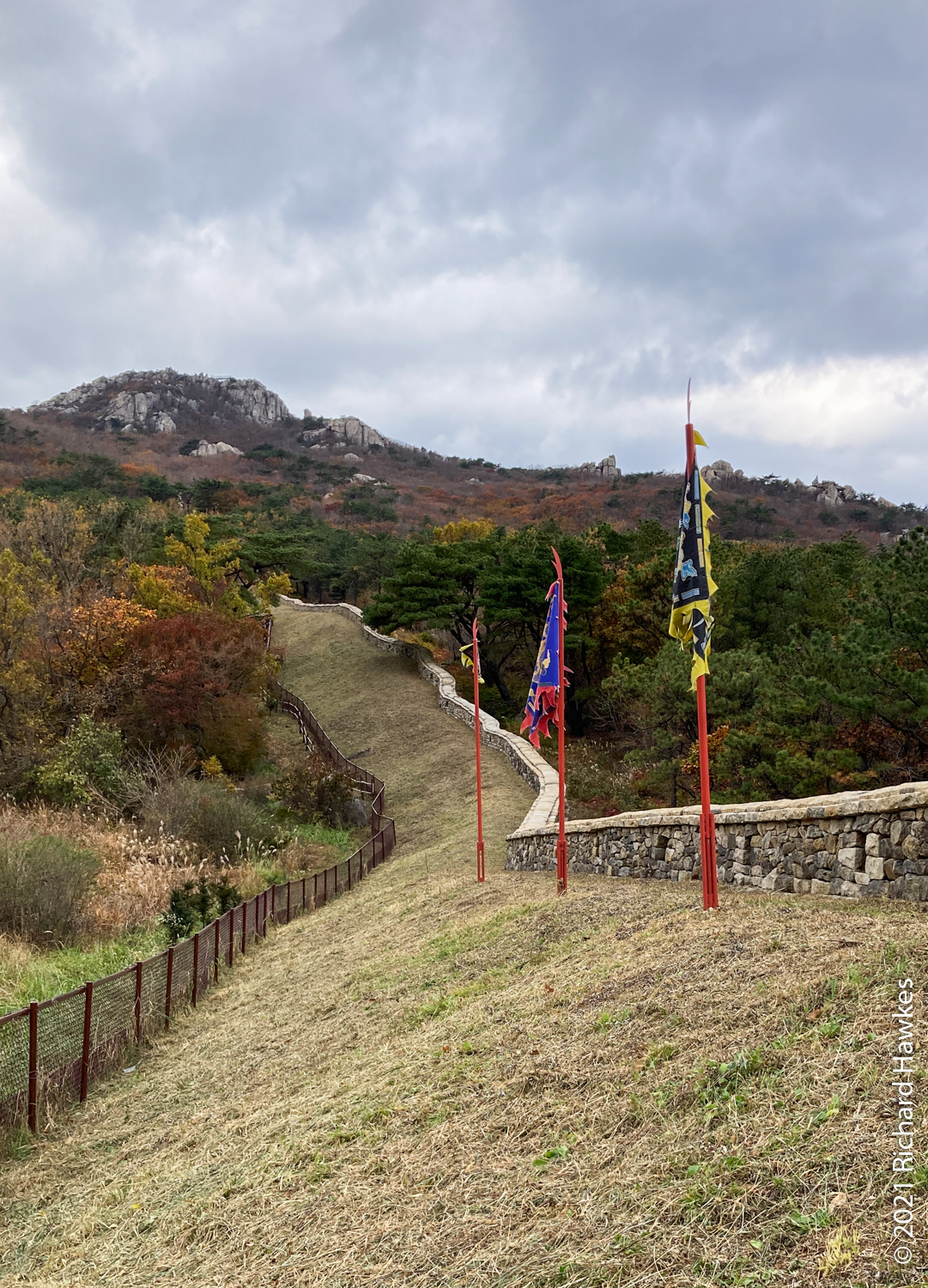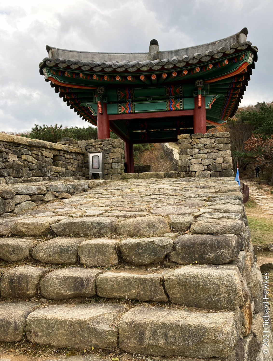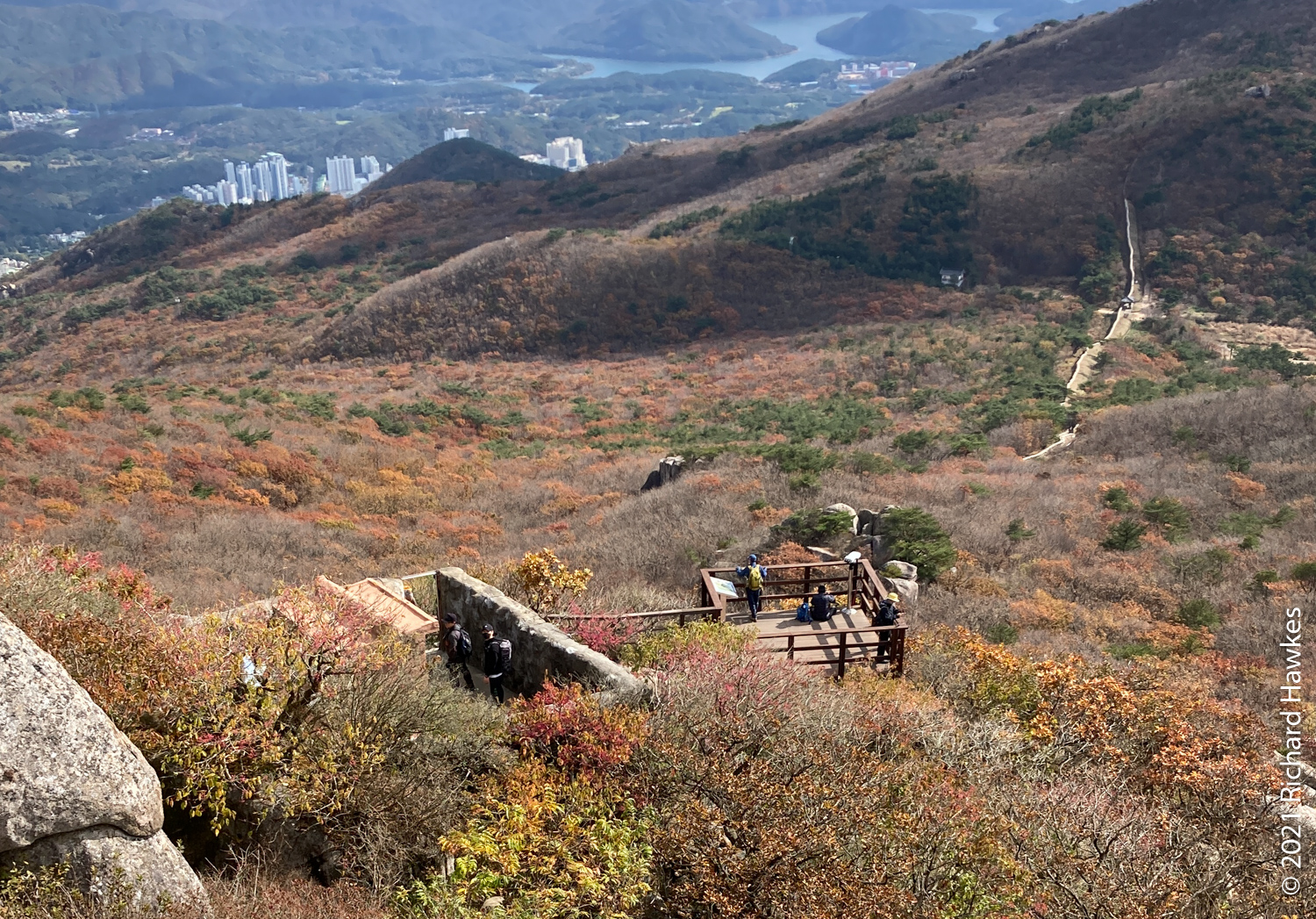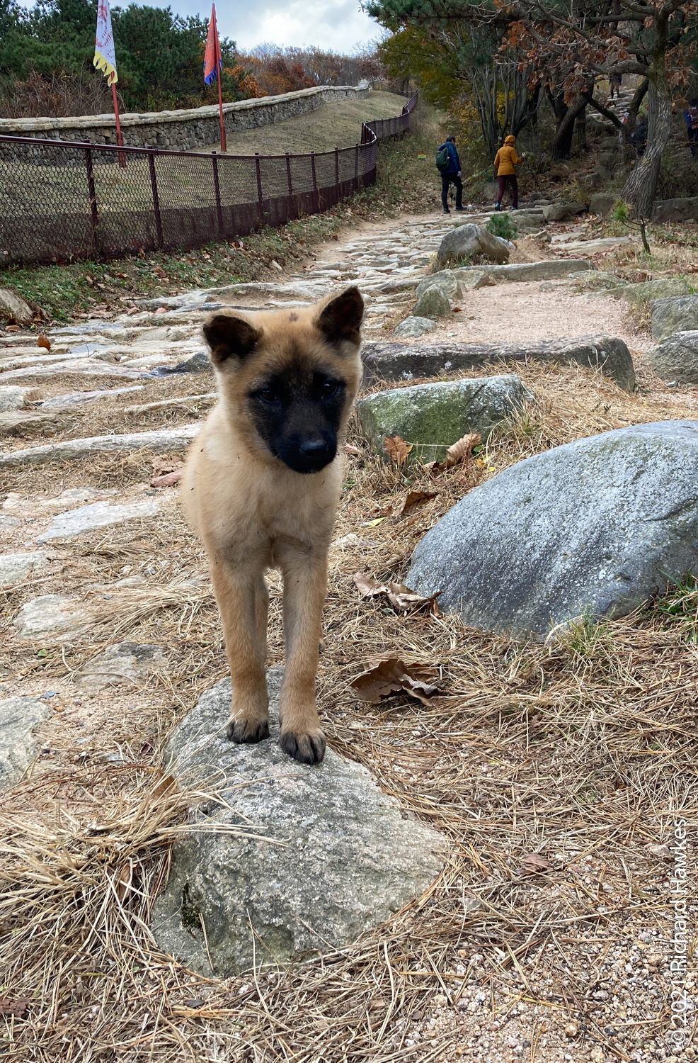 The trail down was a fortress wall with lots of gates on the way so it was just a matter of following them. I saw a number of cats plus the cutest of jindo puppies all on his own running around being friendly to the hikers.