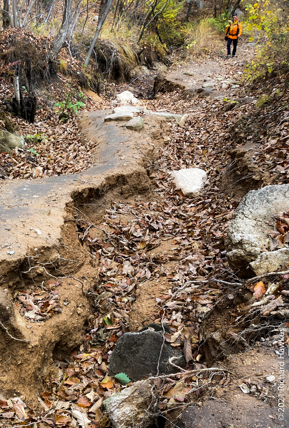 Going to the hermitage will get you on the route to one of the main peaks, Godangbong (고당봉). It was an easy forest hike but there were a few obstacles; one was a digger ripping up the trail so I had to go into the forest and cut out this section. Other obstacles weren’t that much hassle; after the rains, some of the trail had trenches in them so care was needed.