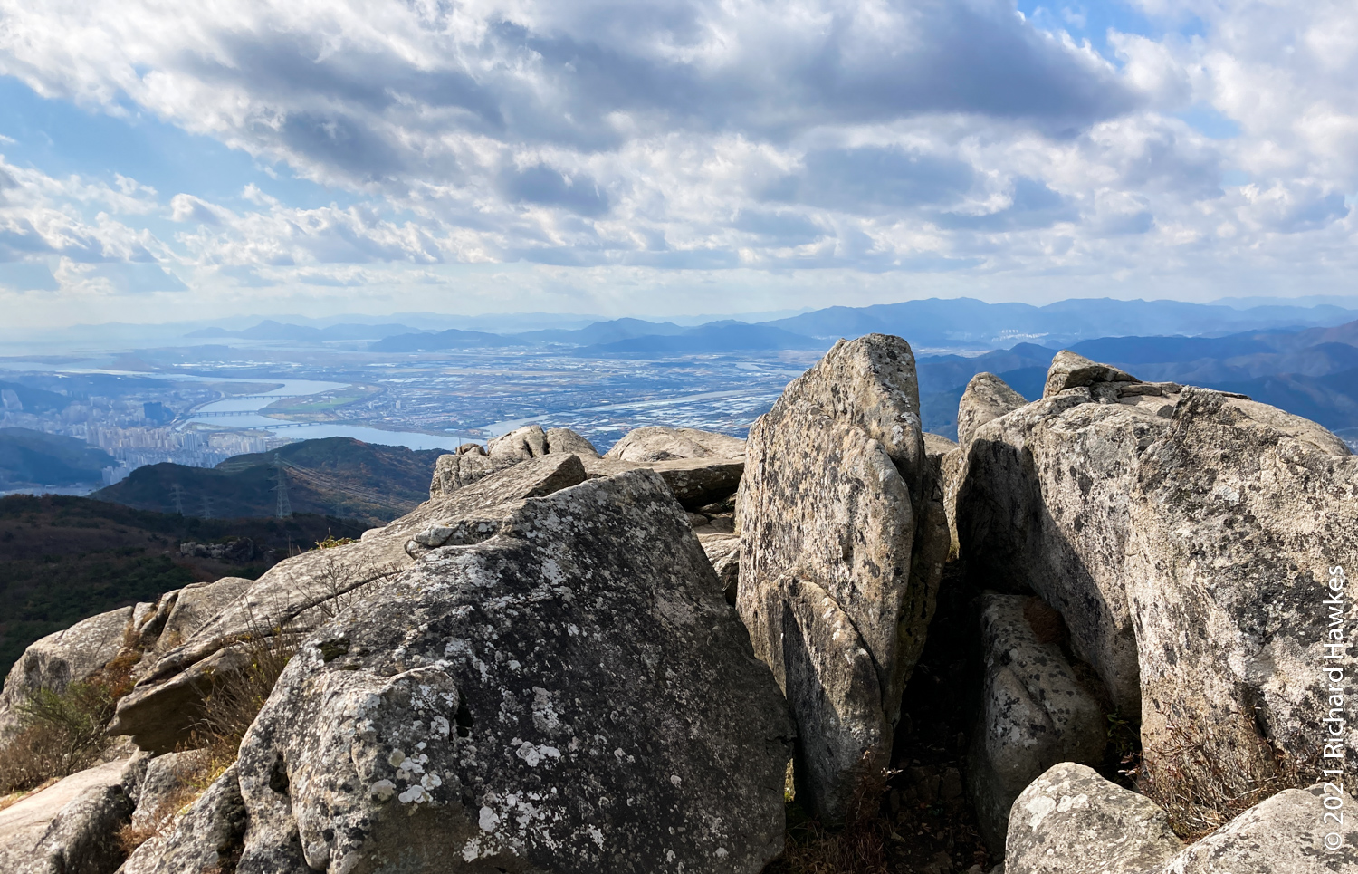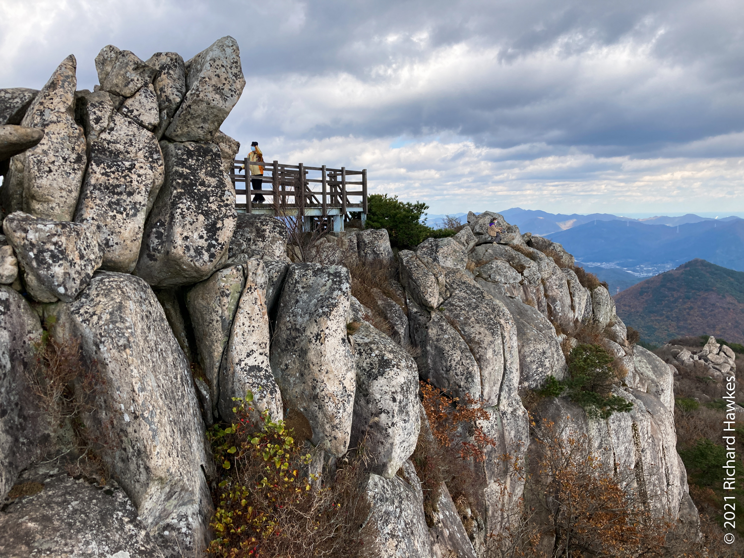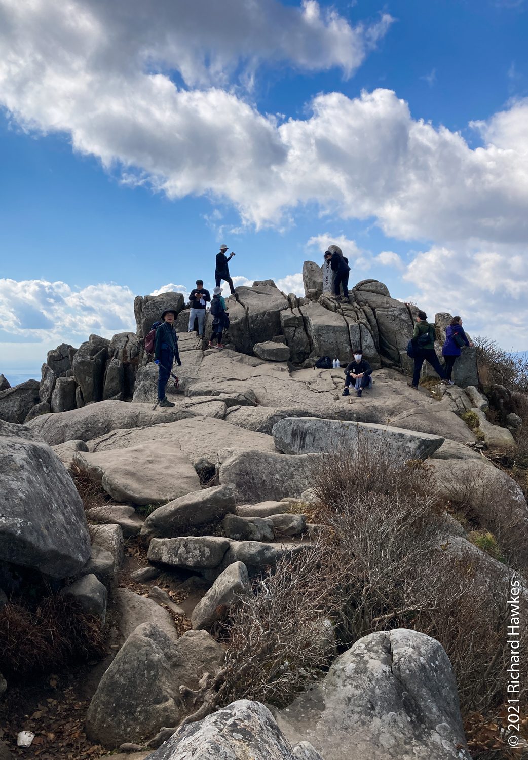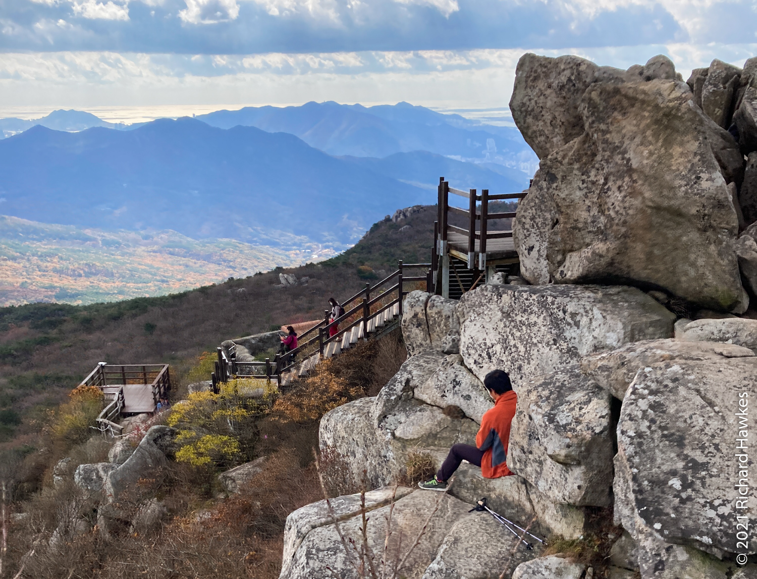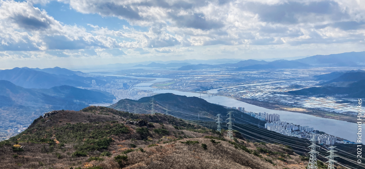 The peak was nice with good 360 degree views over the mountain and the cities front and back. It was even possible to see all the way down to the towers of Haeundae Beach and Gwangan Bridge (광안대교). At this point it started to get a bit windy and chilly so I had to hunker down out of the wind to eat my packed lunch! I was regretting not bringing my extra fleece.