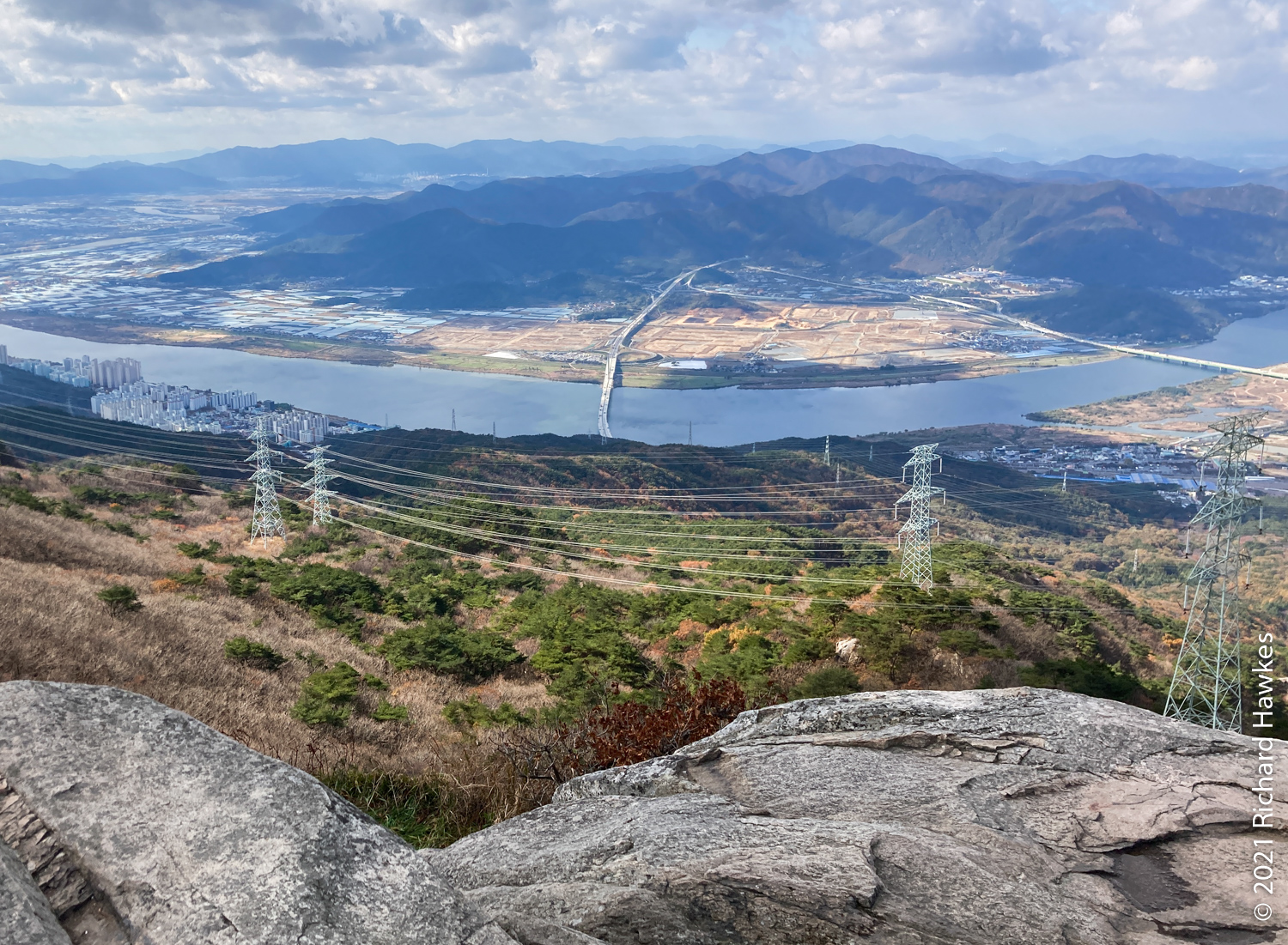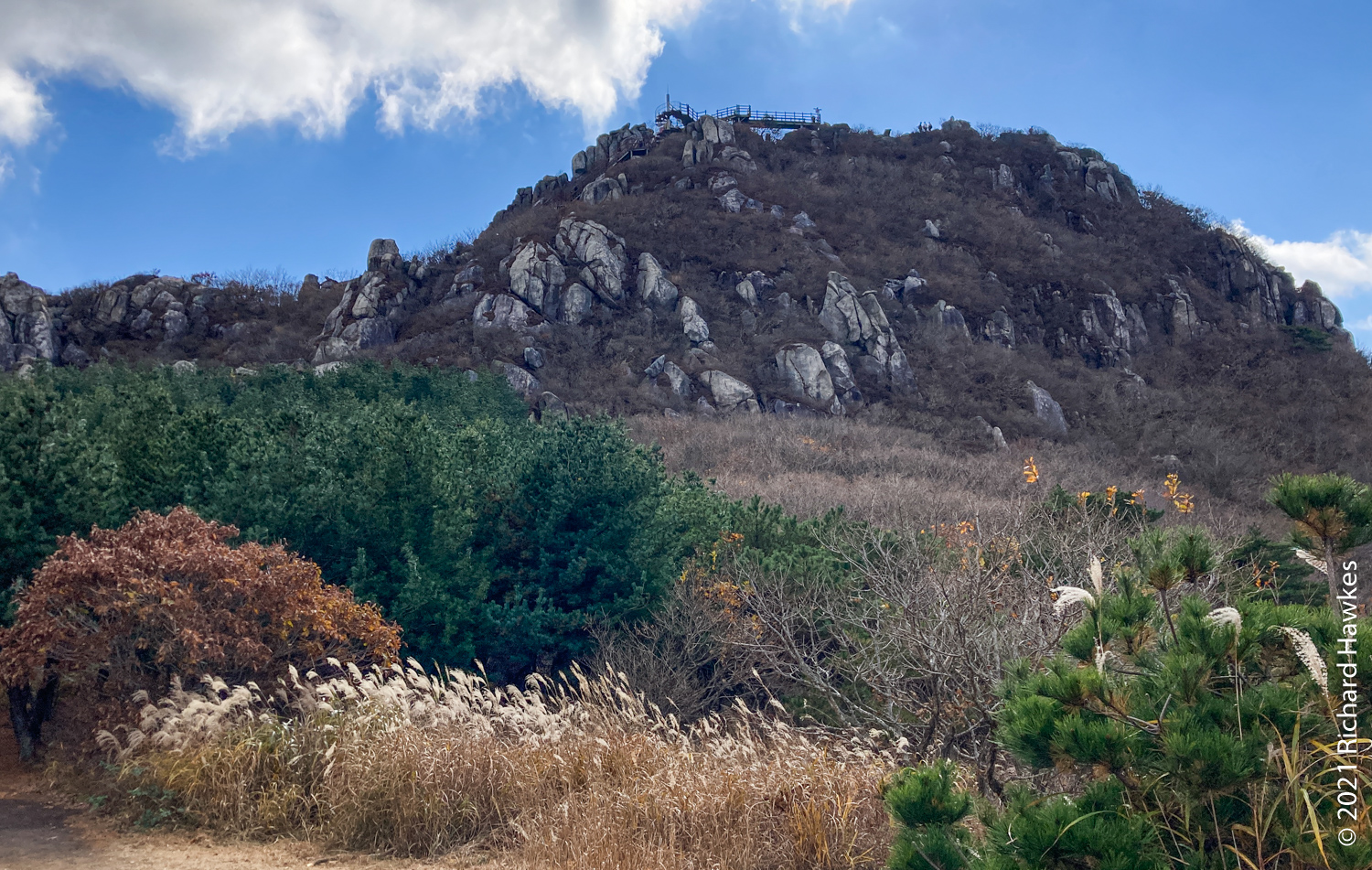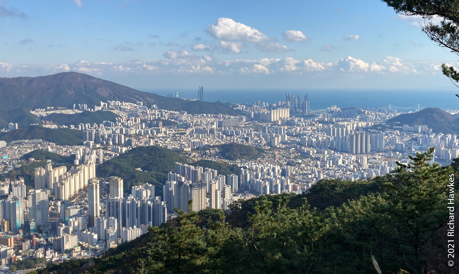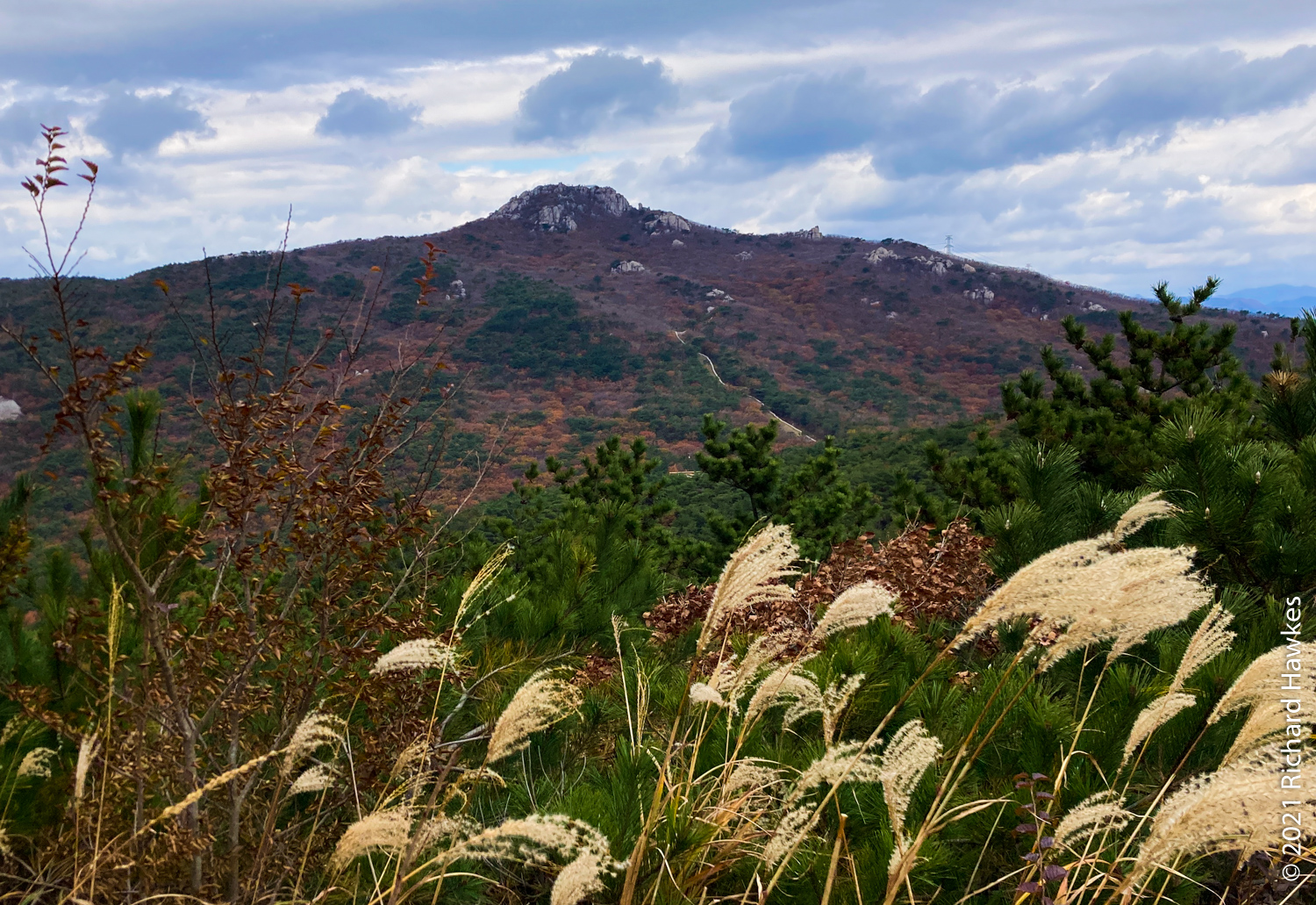 The peak was nice with good 360 degree views over the mountain and the cities front and back. It was even possible to see all the way down to the towers of Haeundae Beach and Gwangan Bridge (광안대교). At this point it started to get a bit windy and chilly so I had to hunker down out of the wind to eat my packed lunch! I was regretting not bringing my extra fleece.