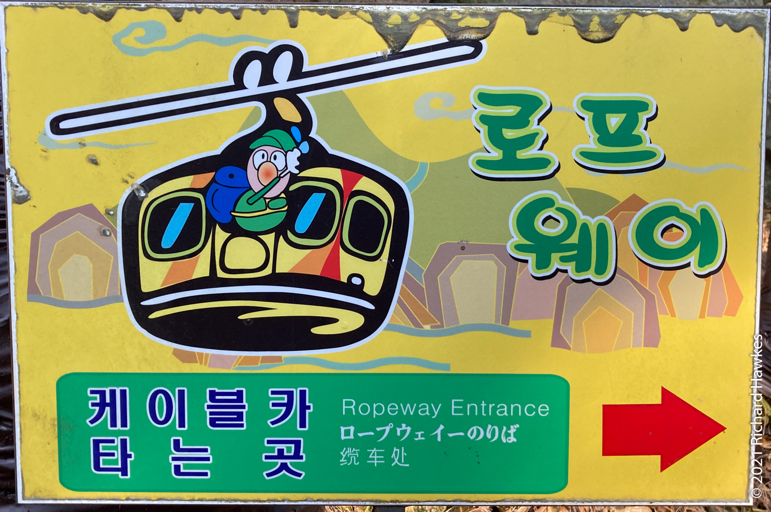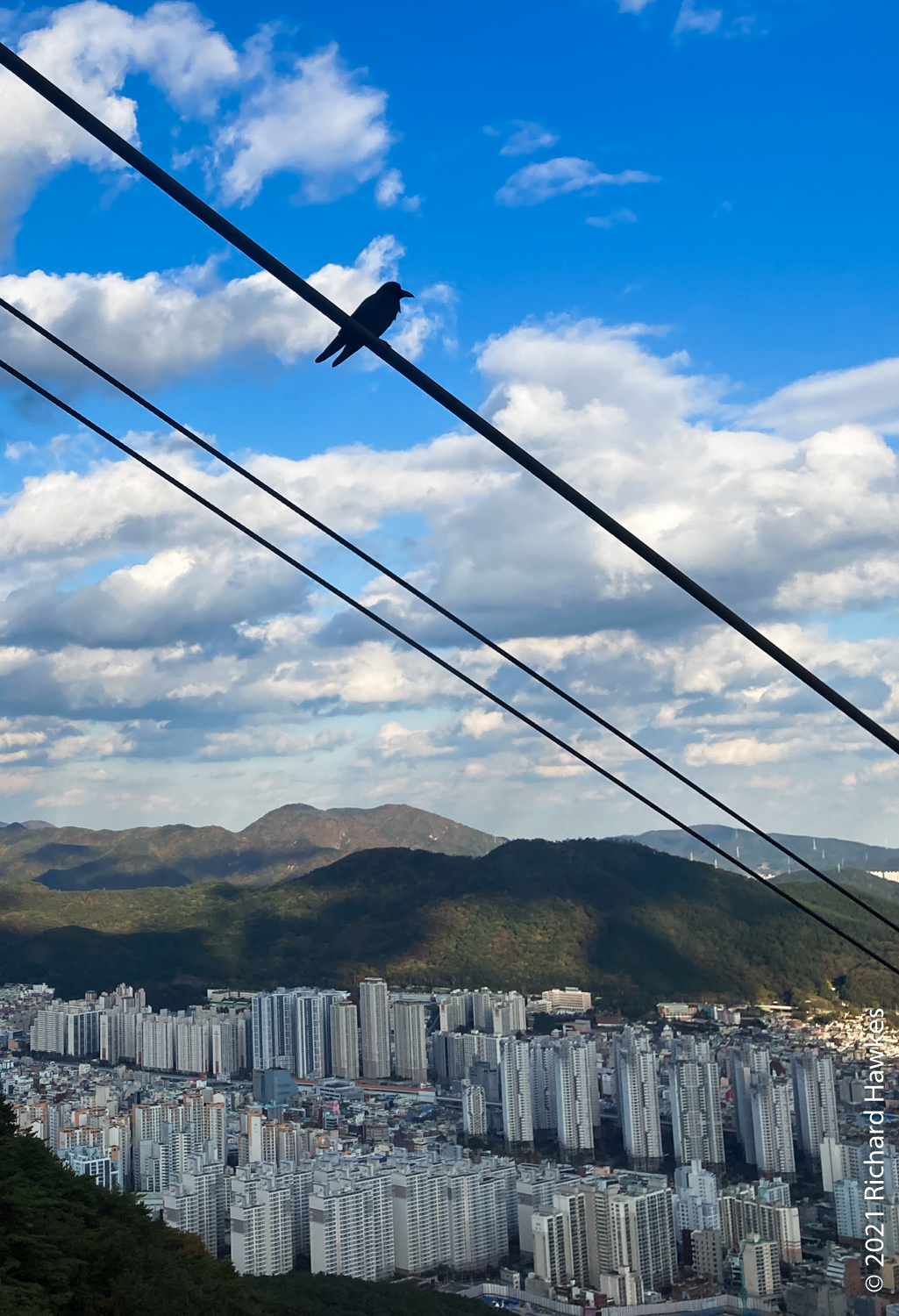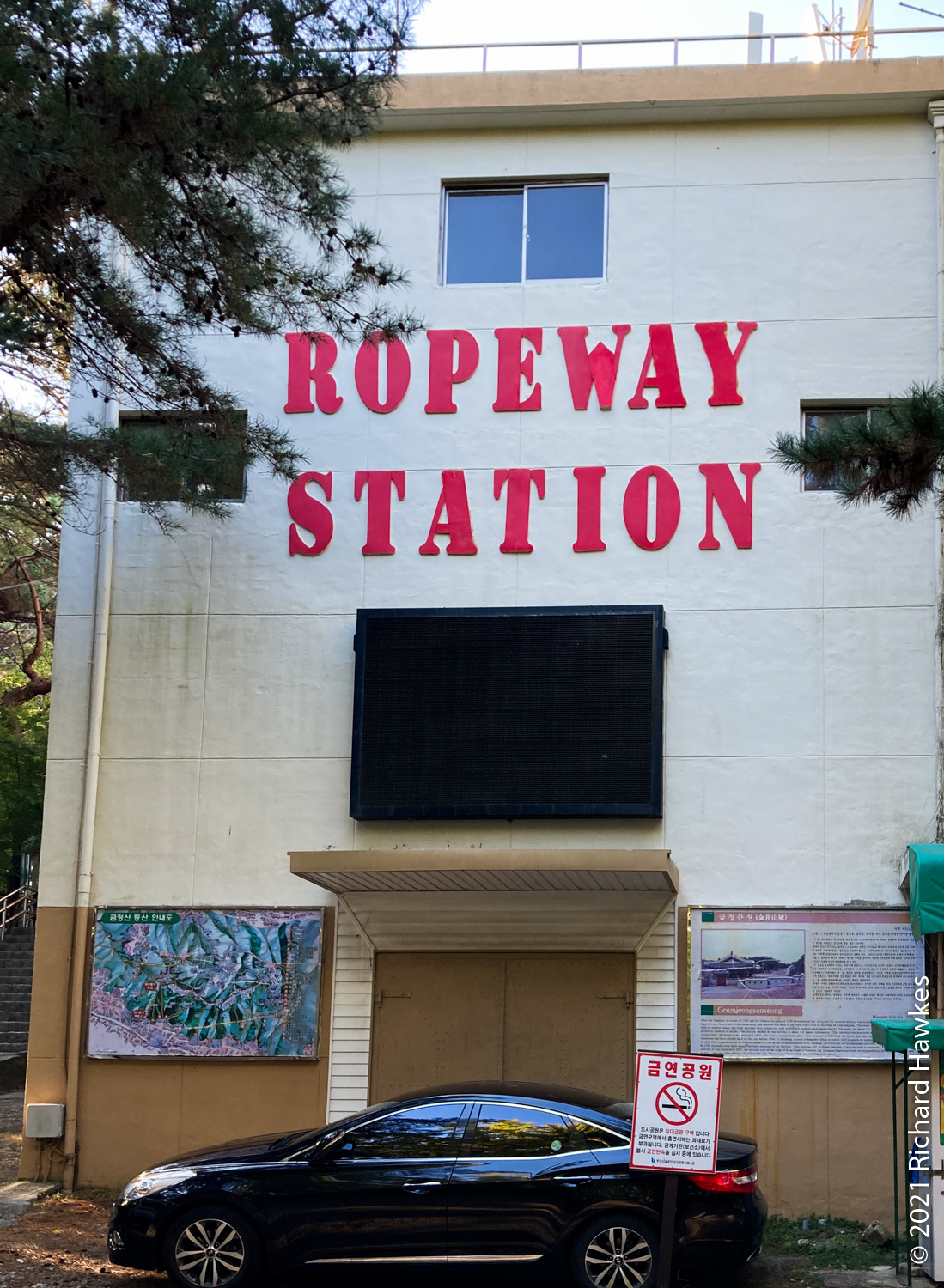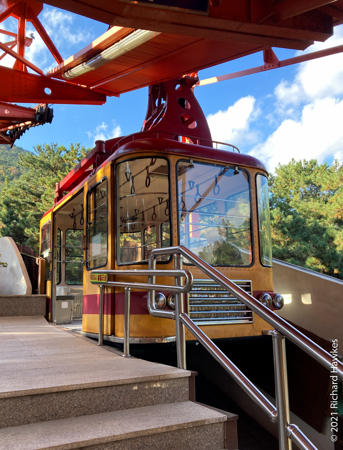 I was aiming to get to the cable car to take it down however since the latter part of the trail wasn’t that interesting (all trees), I got down at about the east gate and took a bus to Geumgang Park (금강공원) to get the cable car. Note, here it’s called a ropeway; new to me! The ropeway had a real old tin toy feel to it, very colourful and quaint looking. Also clean and well maintained I might add! It was a nice ride up and at the top there are refreshments. I didn’t stop though, just went to the lookout point about 200 metres further up. From there I could see better views of the sea and south part of Busan.