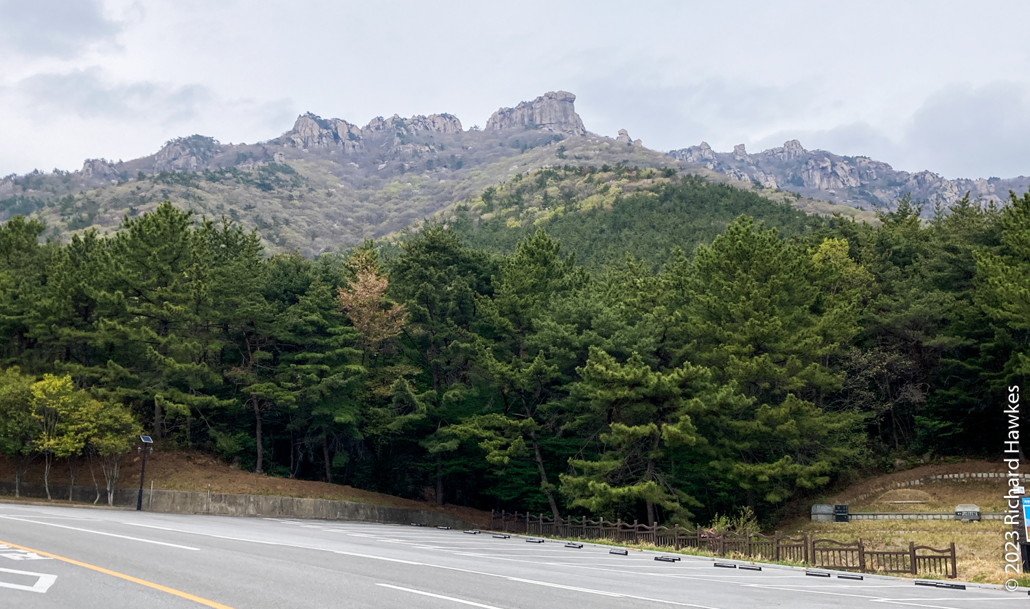 After breakfast at the guesthouse, I drove out to Geumsan Mountain to hike to Boriam Temple. I’d planned a loop to take me back reasonably close to my car. I parked at the Dumo Vallley (두모계곡) entrance to the mountain, on the south side. I’ve added my AllTrails recording below.