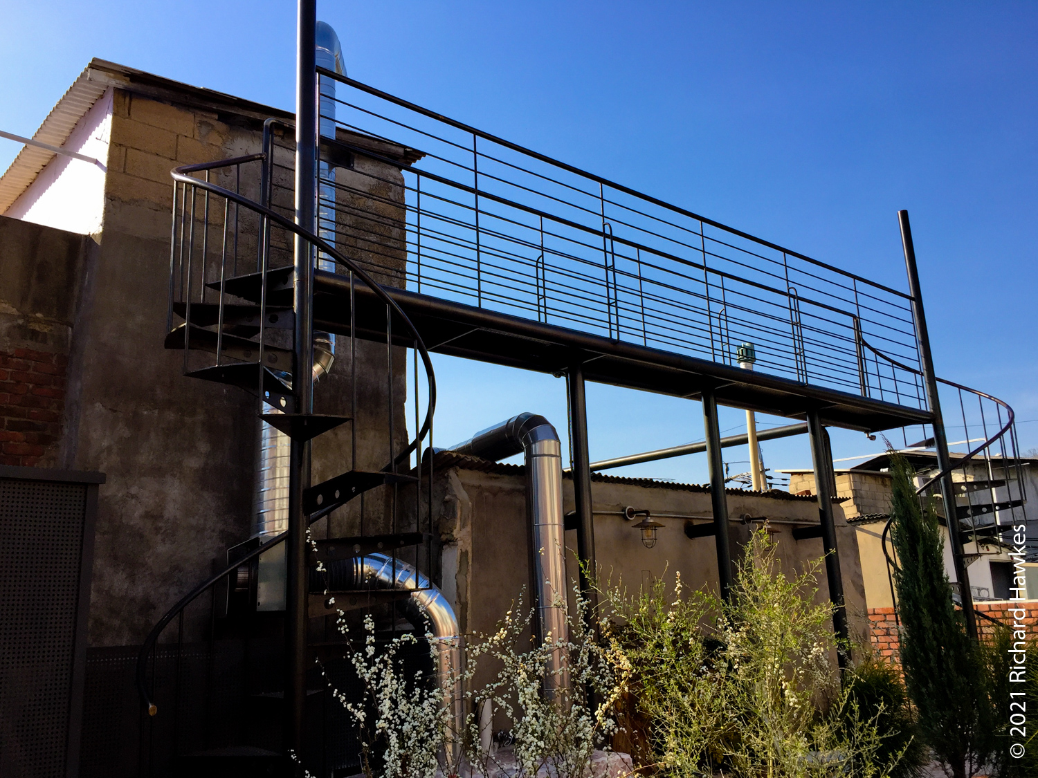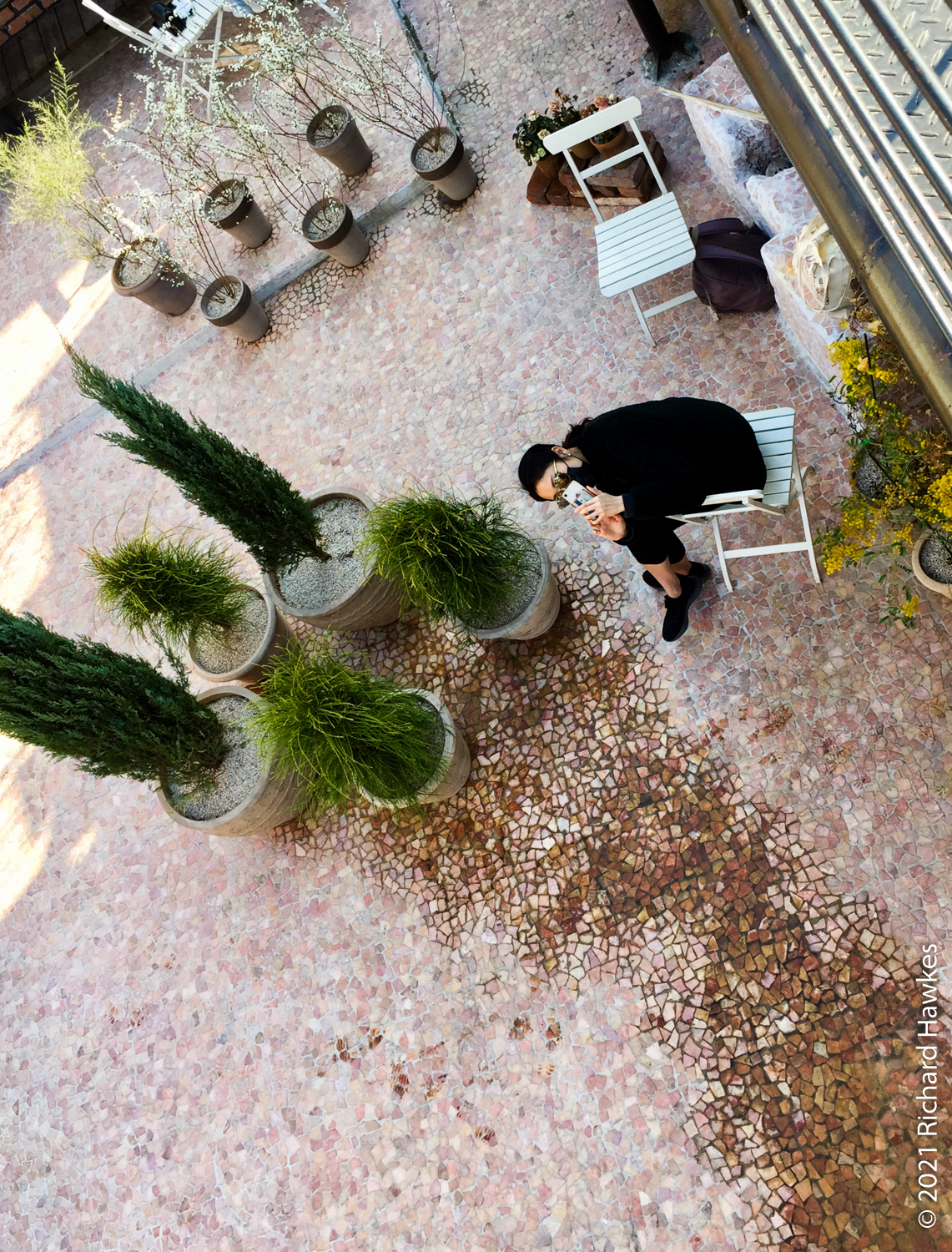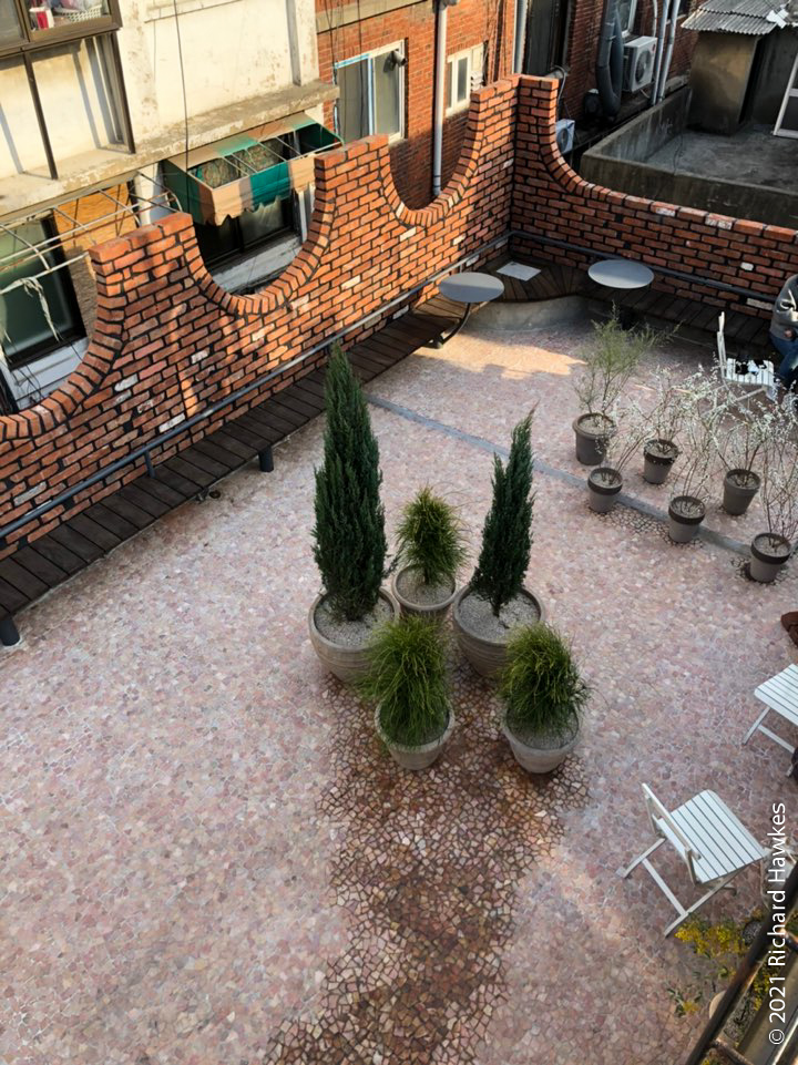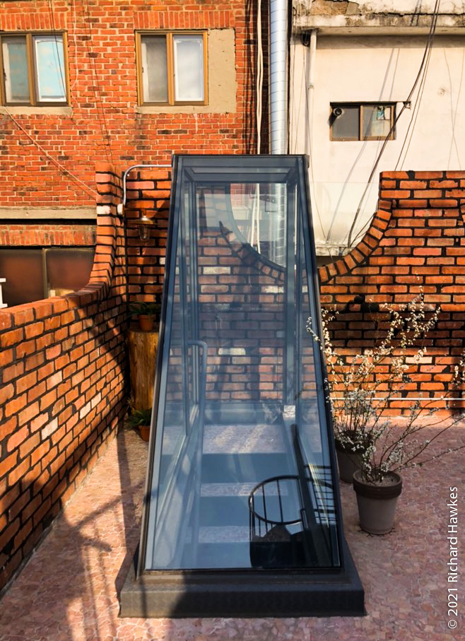 There’s an interesting roof space where Romana and I stayed for a while, taking pictures and enjoying the views of Namsan Tower and down into the streets below. The coffee was nice, as was the tiramisu.