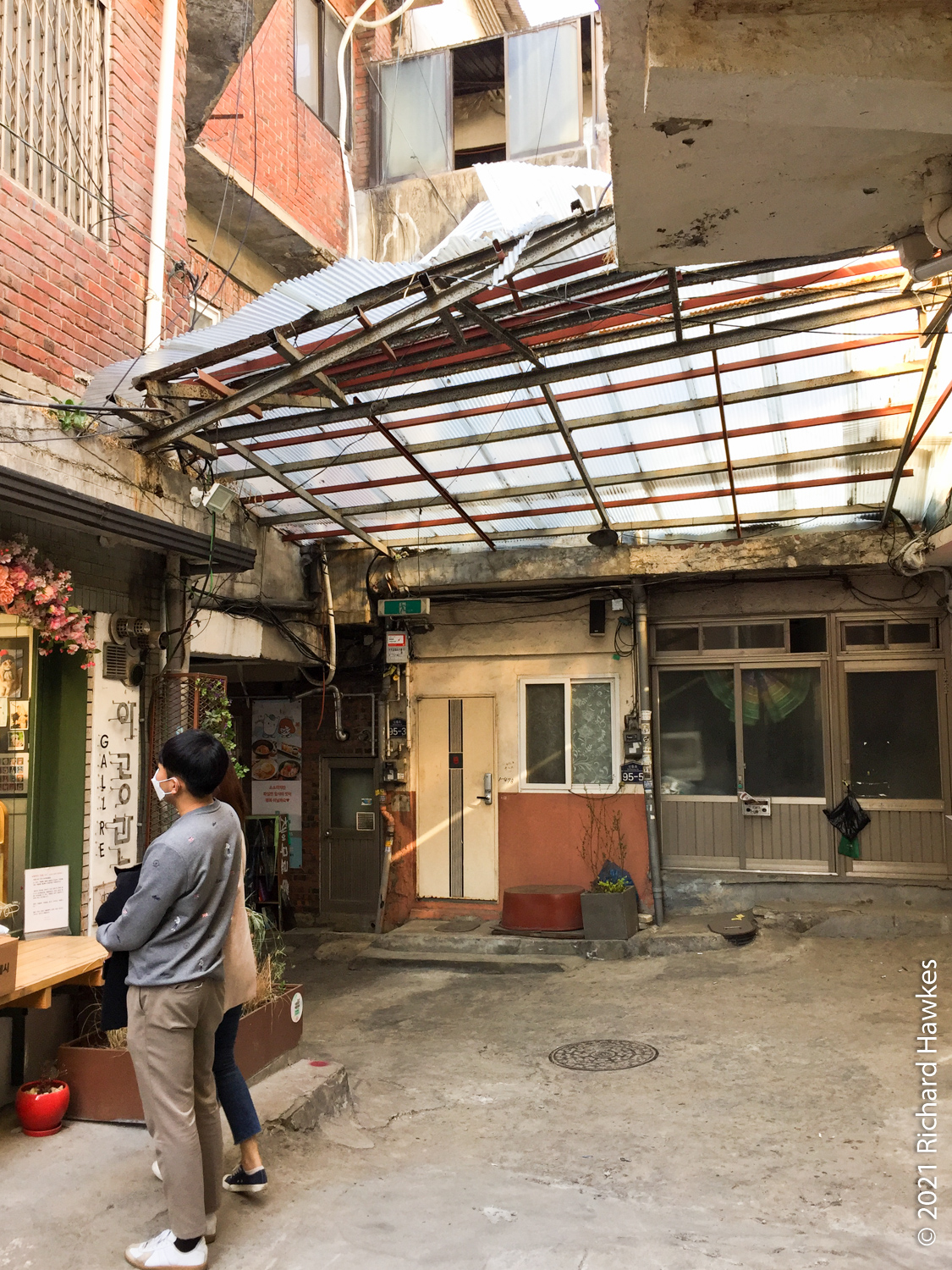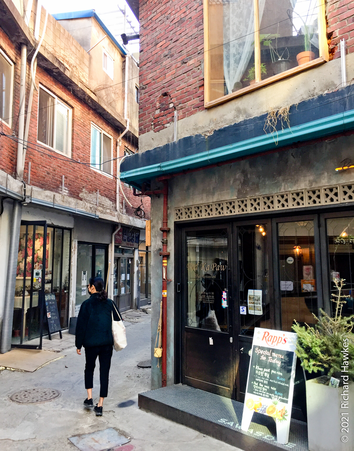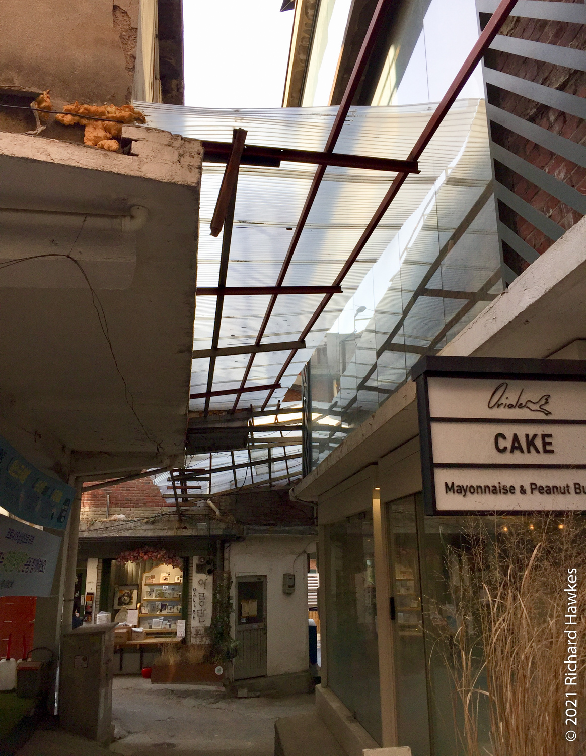 Coffee shop Oriole or Goldsmith? is (was) in the old refurbished market in Haebangchon (HBC 해방촌). It’s in stylishly rundown building amongst various other coffee shops and restaurants. People seem to like taking photos there. These photos are by me and Romana.