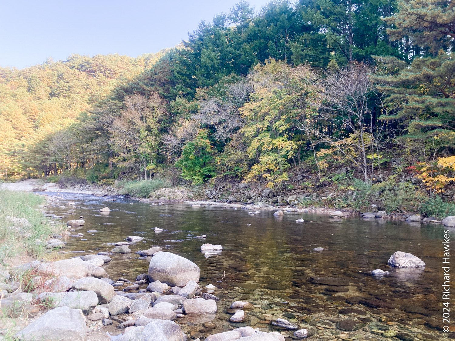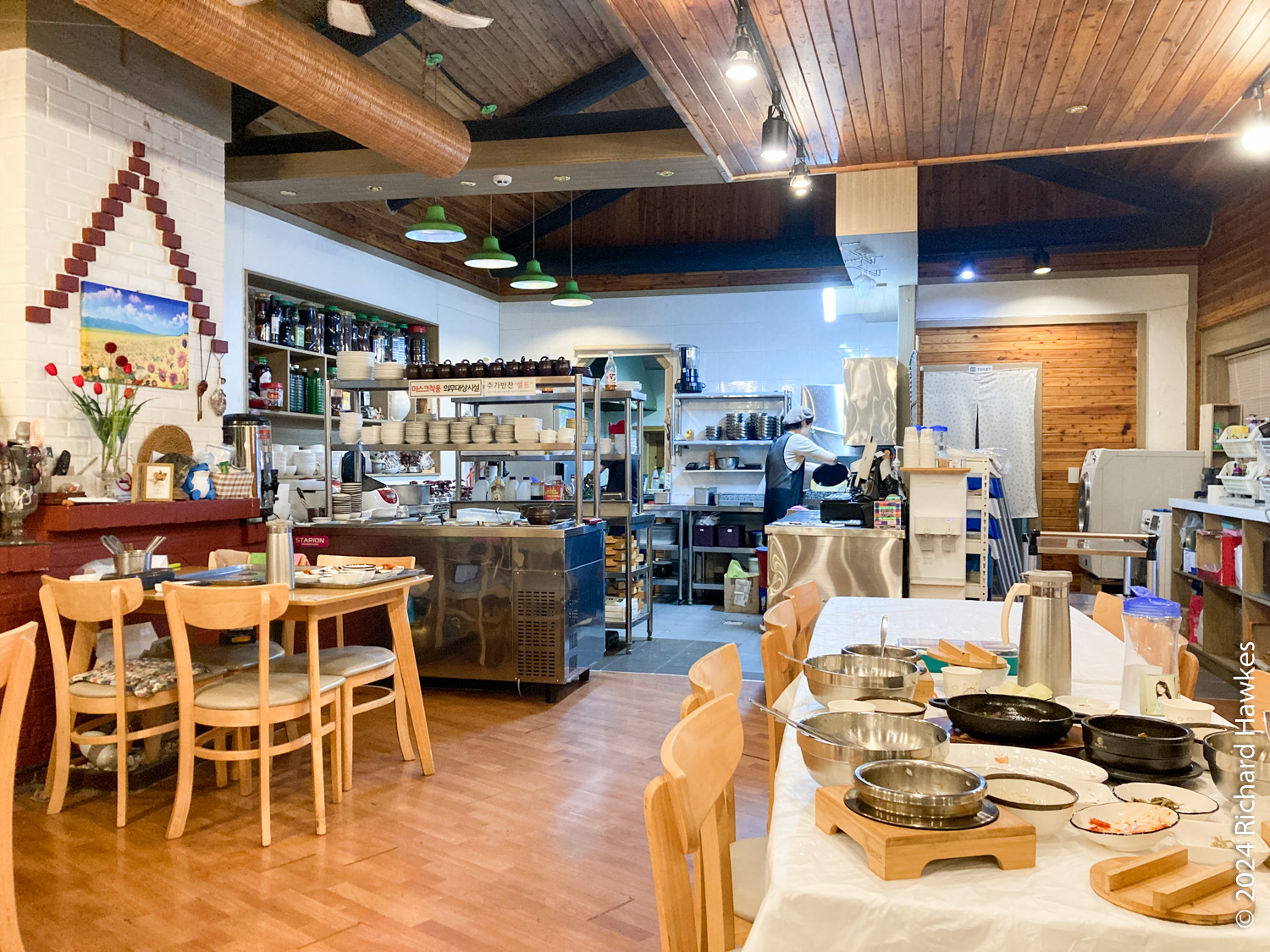 There was a point of interest I’d pinned on my map app about 30 minutes away, another trail, so I drove there. I got makguksu at ‘Forest…Binteobangdong Makguksu’ (숲속의빈터방동막국수) a local country restaurant, then had a look at the trail. Unfortunately, it wasn’t a well organised trail and seemed to be going through private farmland. On closed inspection on the map, it was also quite long to I opted to not do it! I then look for a cafe I could drop by on the way back to the hotel. On the way, I stopped at a stream that had some important looking signage and took a few pictures; nice spot.