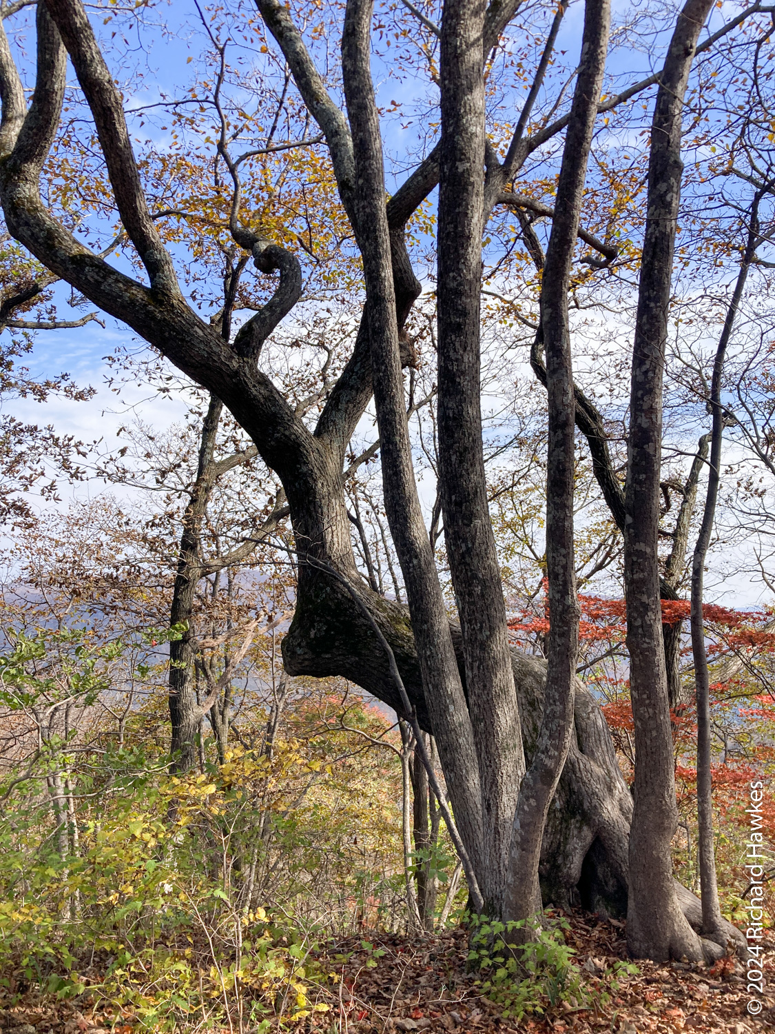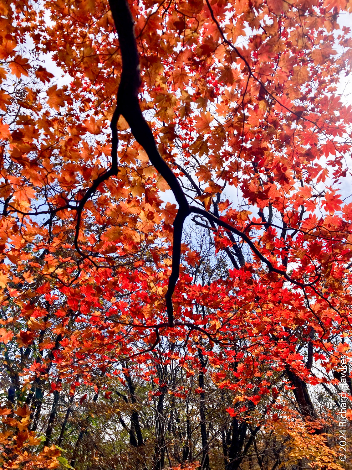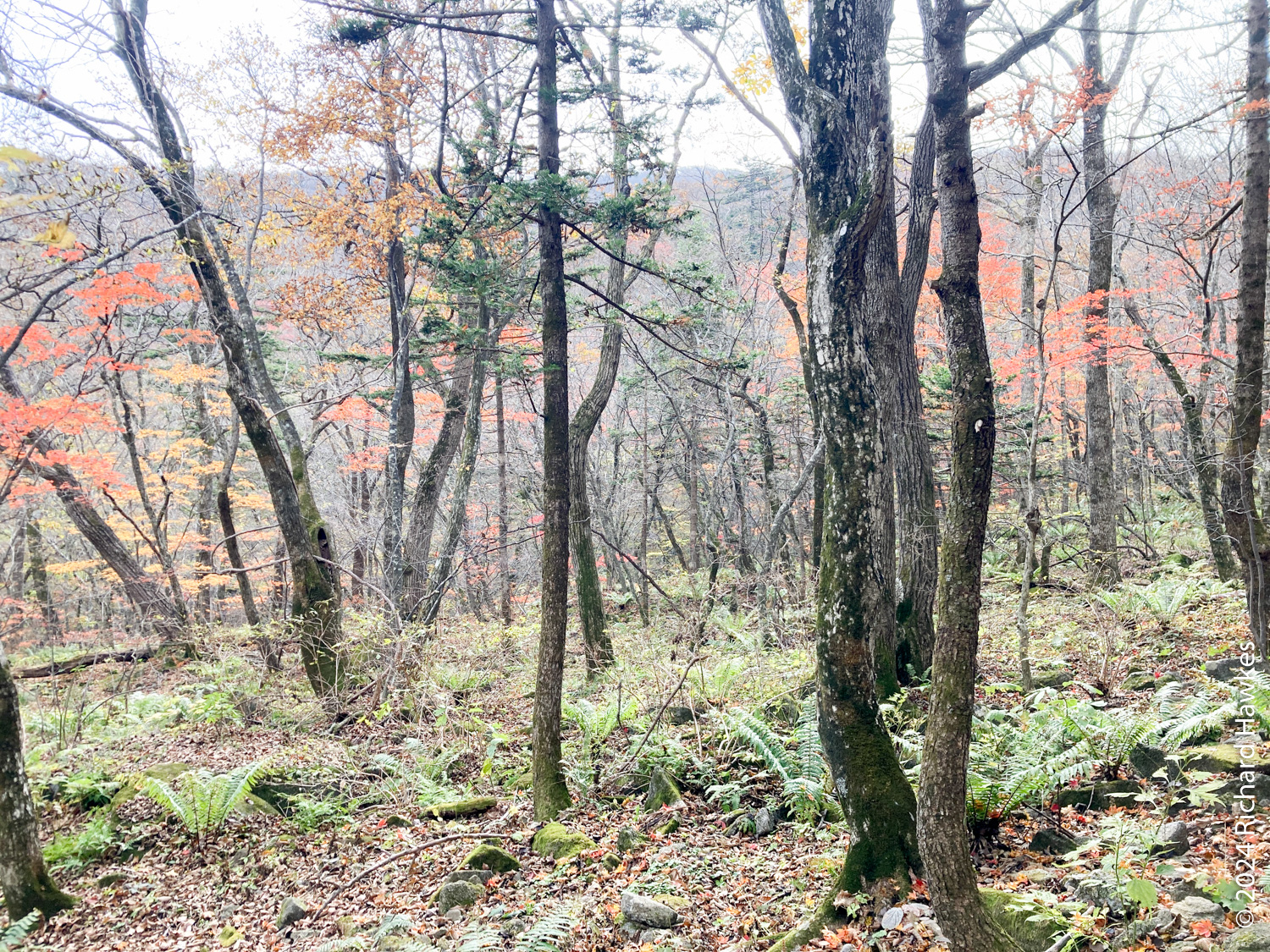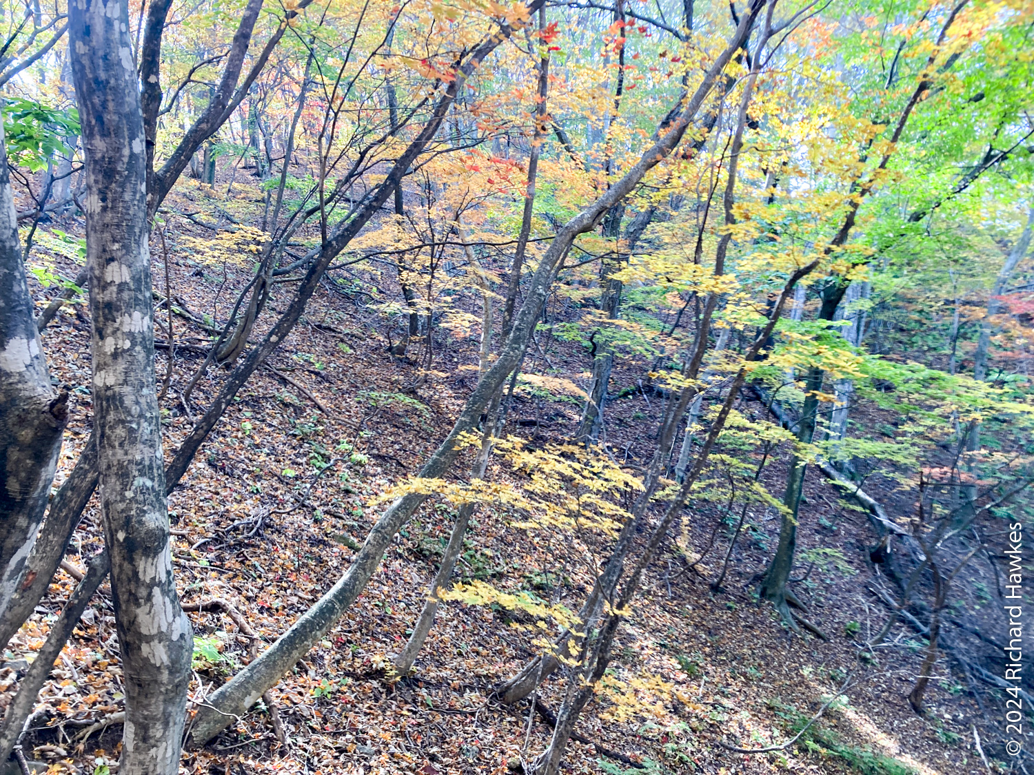 The start of the trail goes through nice stream-side forest with lots of colourful leaves. As I passed a few groups of people, it got less busy and soon I was mostly alone on the trail. At some point you get to a small food village where owners wait for customers. It was a little early for me to get food so I guess the owners do most their business when people take the blue trail back; I’d be doing the loop, so I wouldn’t be revisiting the village unfortunately.