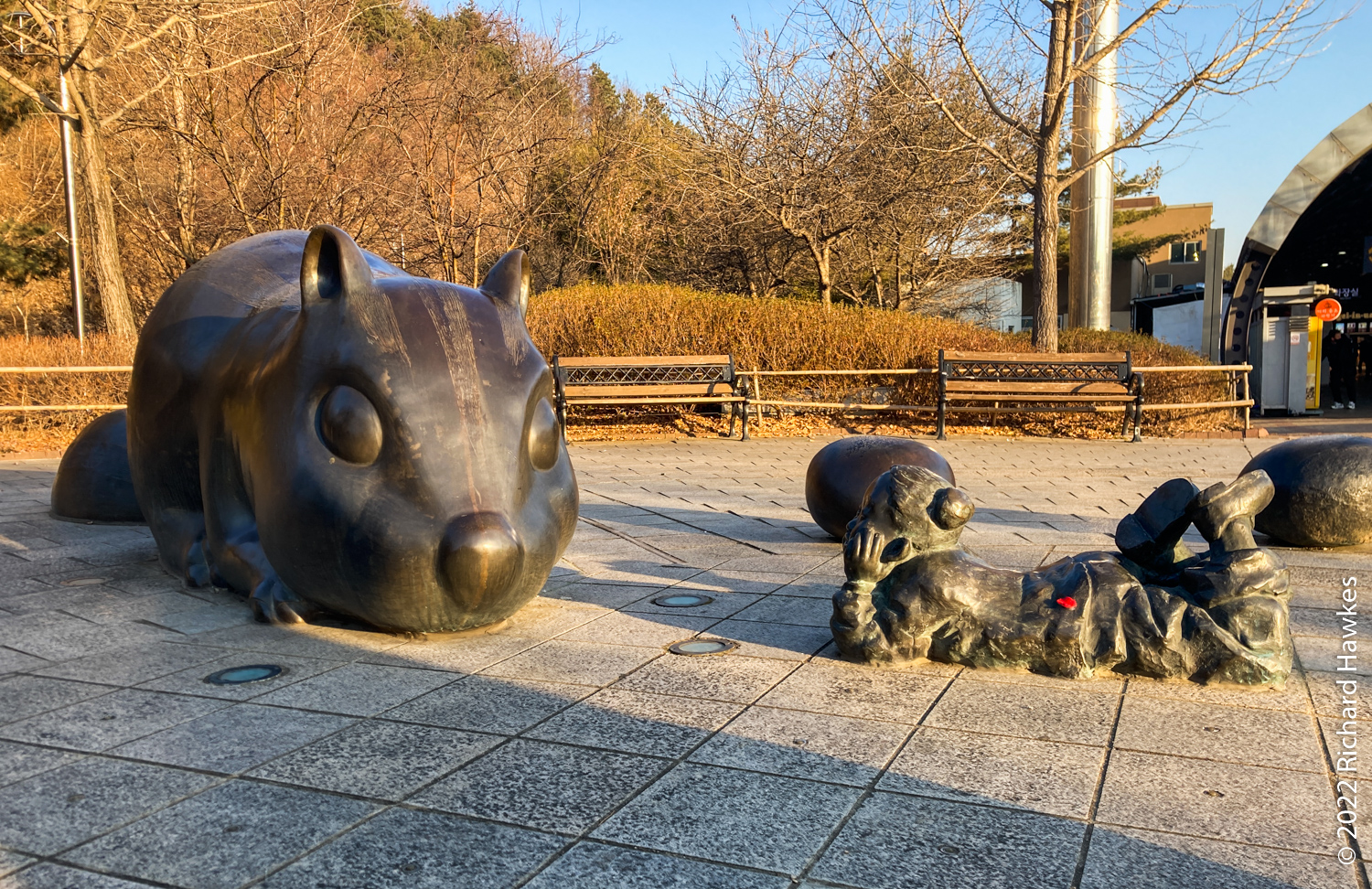 Me and a friend took an express bus from Gosok Bus Terminal in the middle of Seoul. These coach/bus rides are usually direct and extremely comfortable and reasonably priced. It took only about 2 hours from to Gunsan. As usual, there was a fifteen-minute stop at some motorway services. This time, I encountered some scarily scaled rodents…
