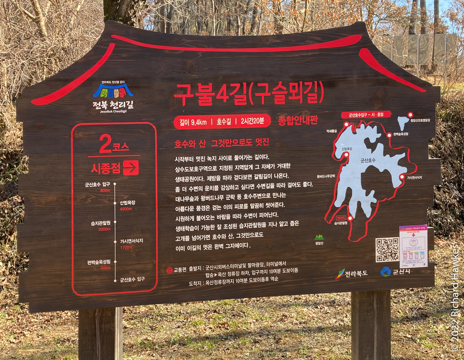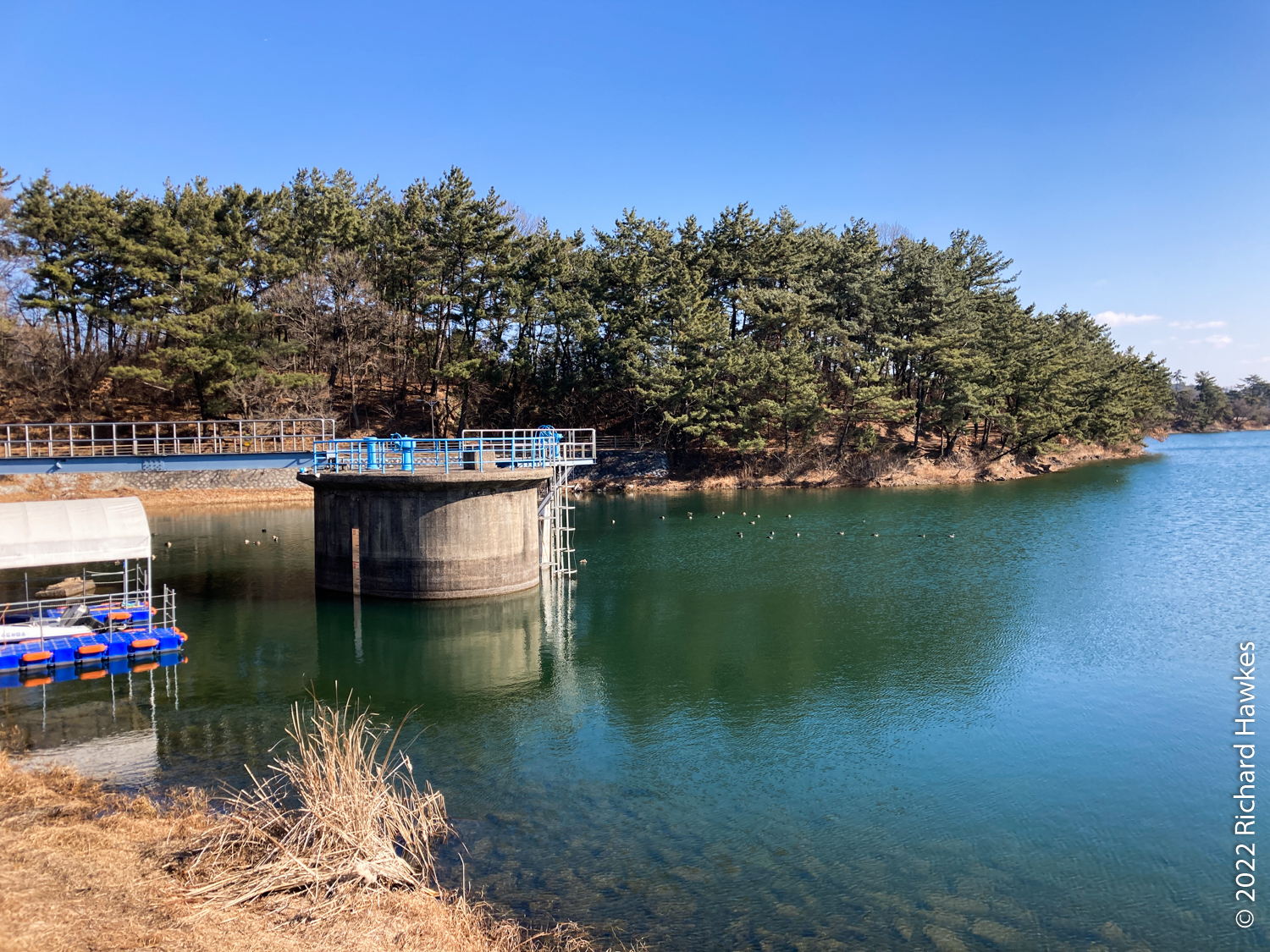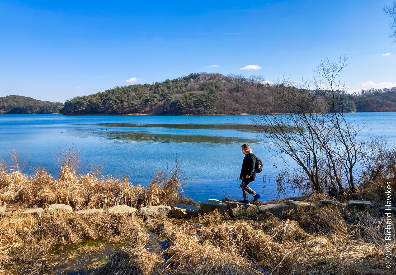 In Gunsan, we grabbed a coffee and sandwich, then had to get a taxi to our accommodation (to dump my bag). We then got another cab to our first main stop, Gunsan Lake (군산호수), about 10 minutes drive south. Asking to go to Gunsan Lake confused our driver, so you may need to use alternative names or use a map; try Gunsan-josuji (군산조주지). There are two big lakes in the area and I think he wanted to drive us to a different one.