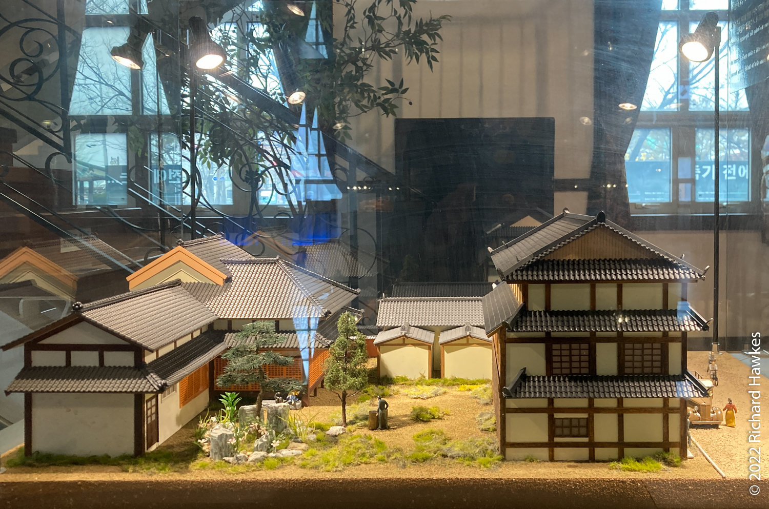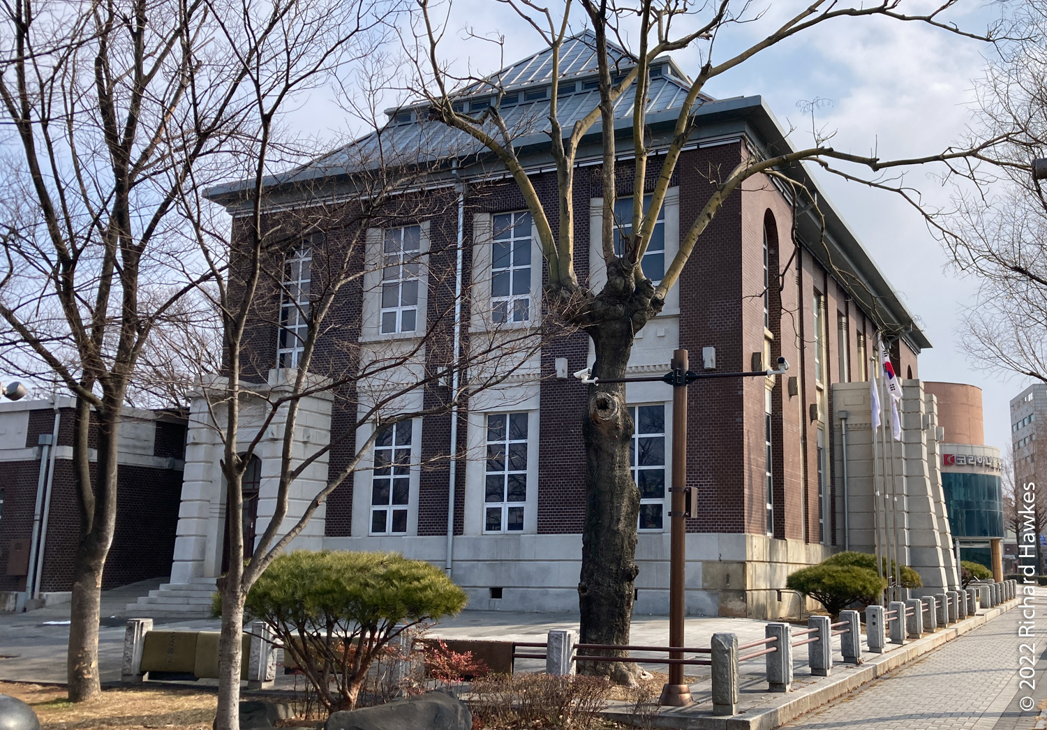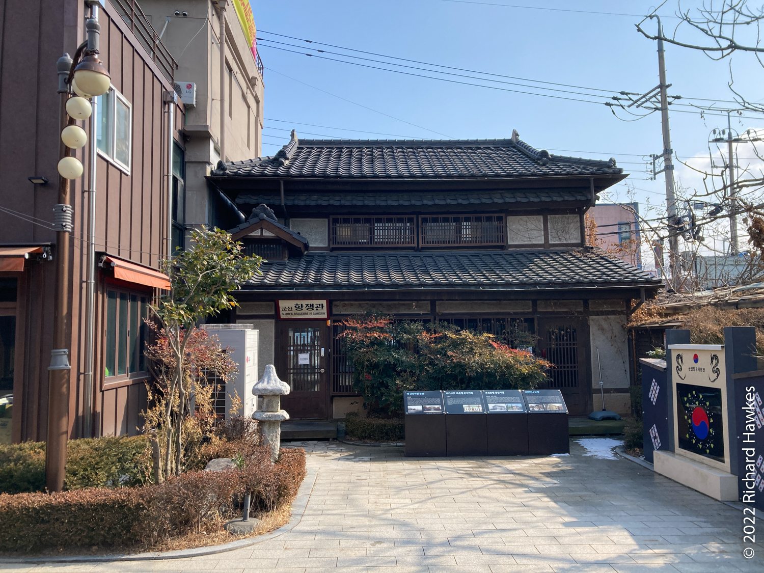 After walking east into town a bit more, we found more business then residential buildings of the era. Later on we came across Sinheung-dong Japanese House (신흥동 일본식가옥). This house was unfortunately closed for inside viewing (Covid?) but you could wander around the grounds. Very pretty and well kept.