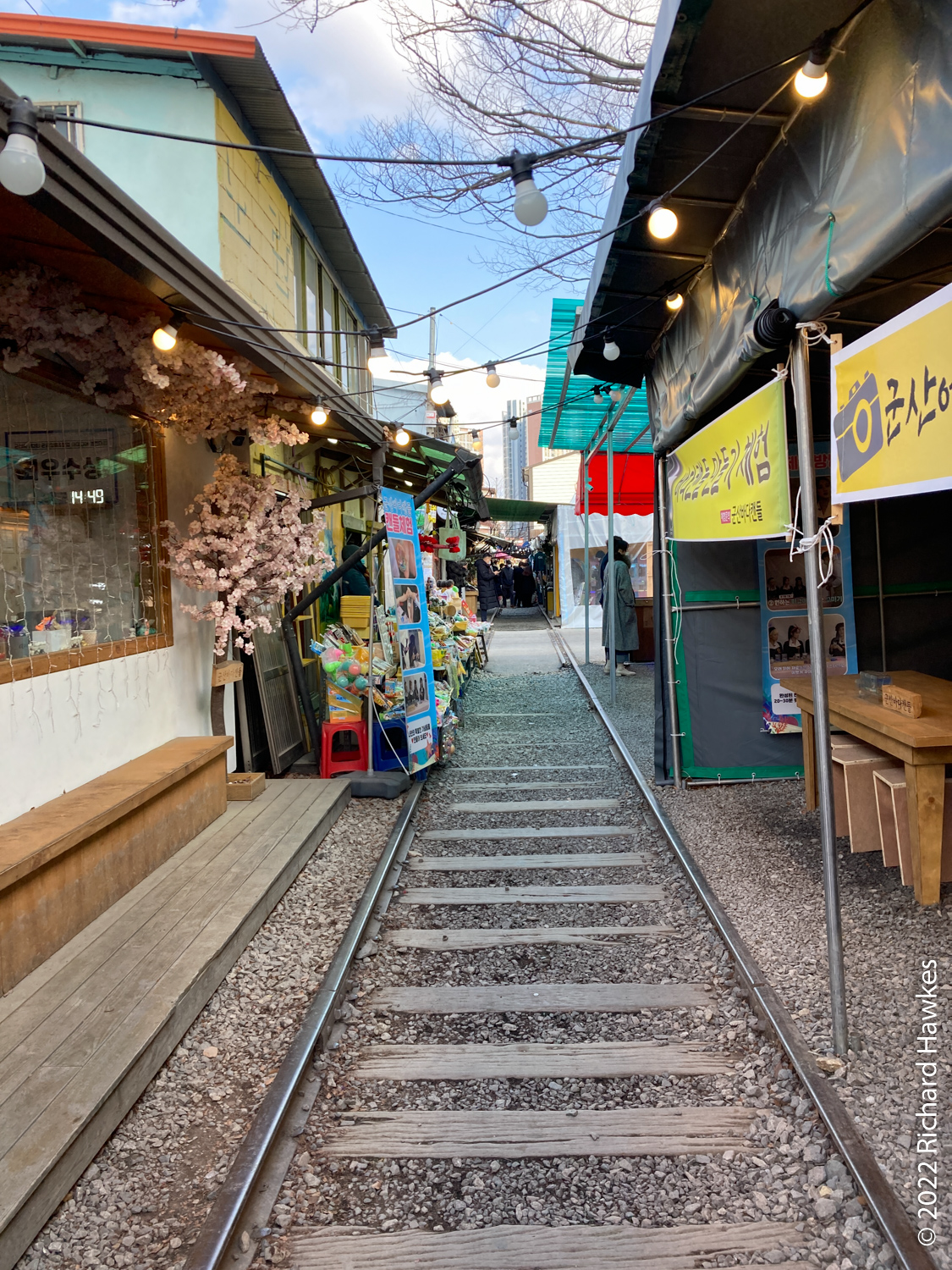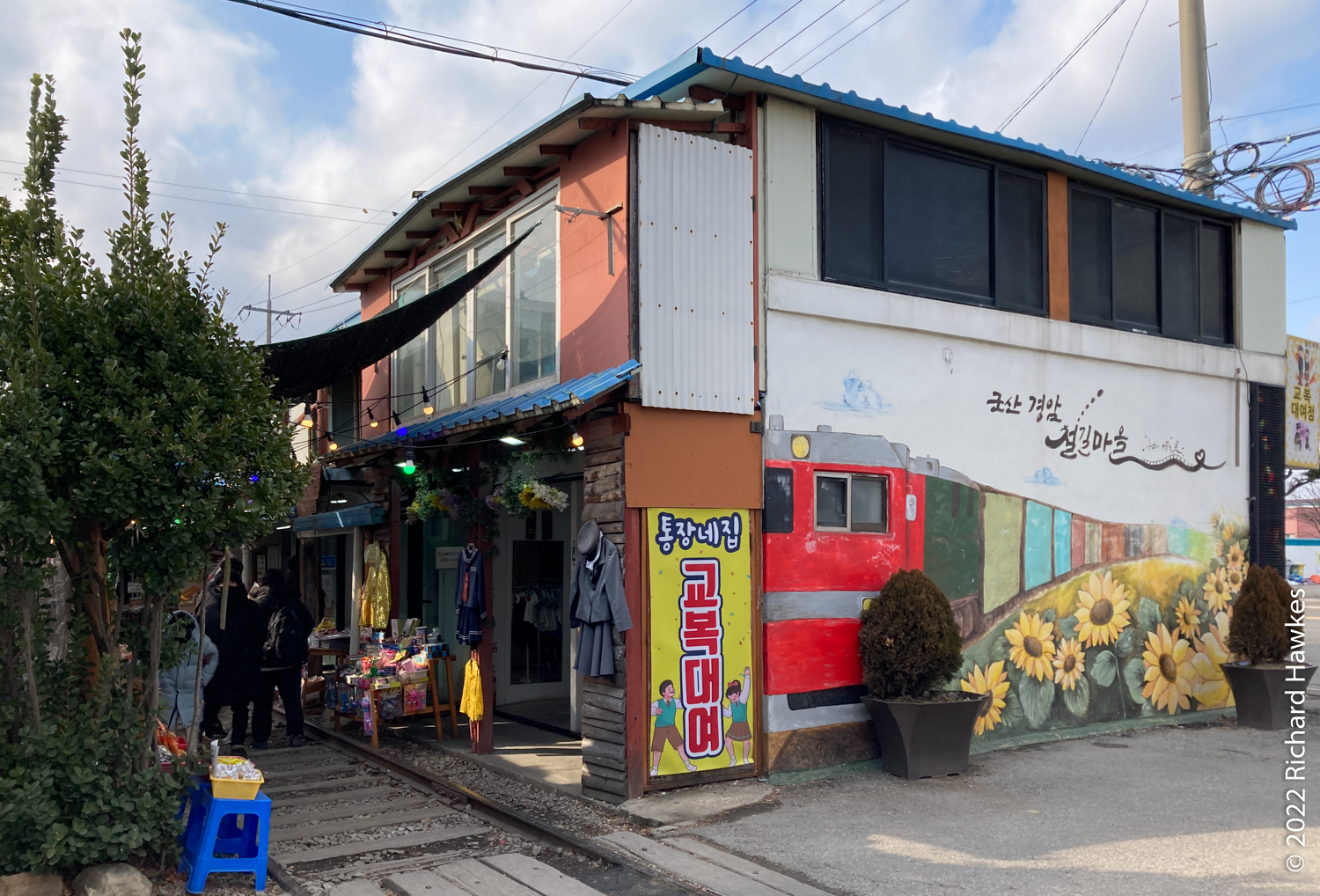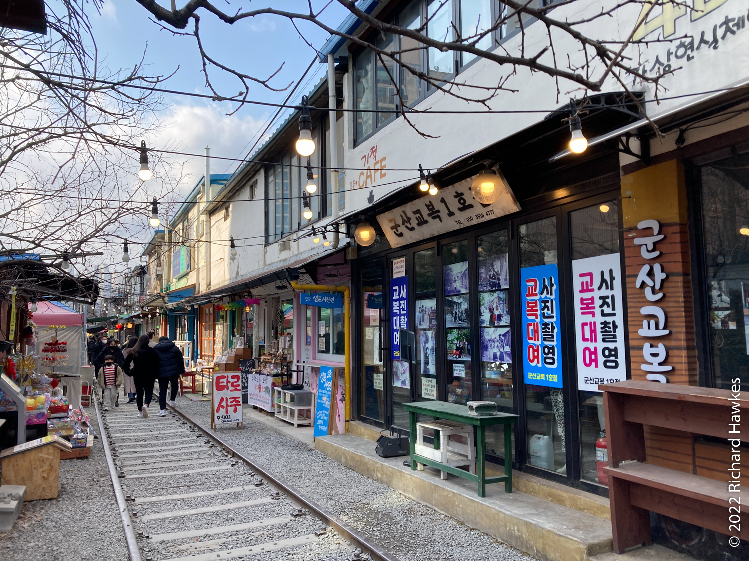 I’d heard of an old village that backed fully on to a rail track. I managed to get a bus from the park to Gyeongamdong Railroad Town (경암동철길마을), then spent a short time walking up and down it. Now it consists of stores in the tradition of nostalgic school days toys, food, and costumes. At the far end is a poster with photos of the actual village back in the day with people a stores operating just centimetres from the track, probably moving stuff out the way numerous times a day! A fun detour worthy of an hour, maybe longer if you’re feeling the nostalgi and stay for a snack.