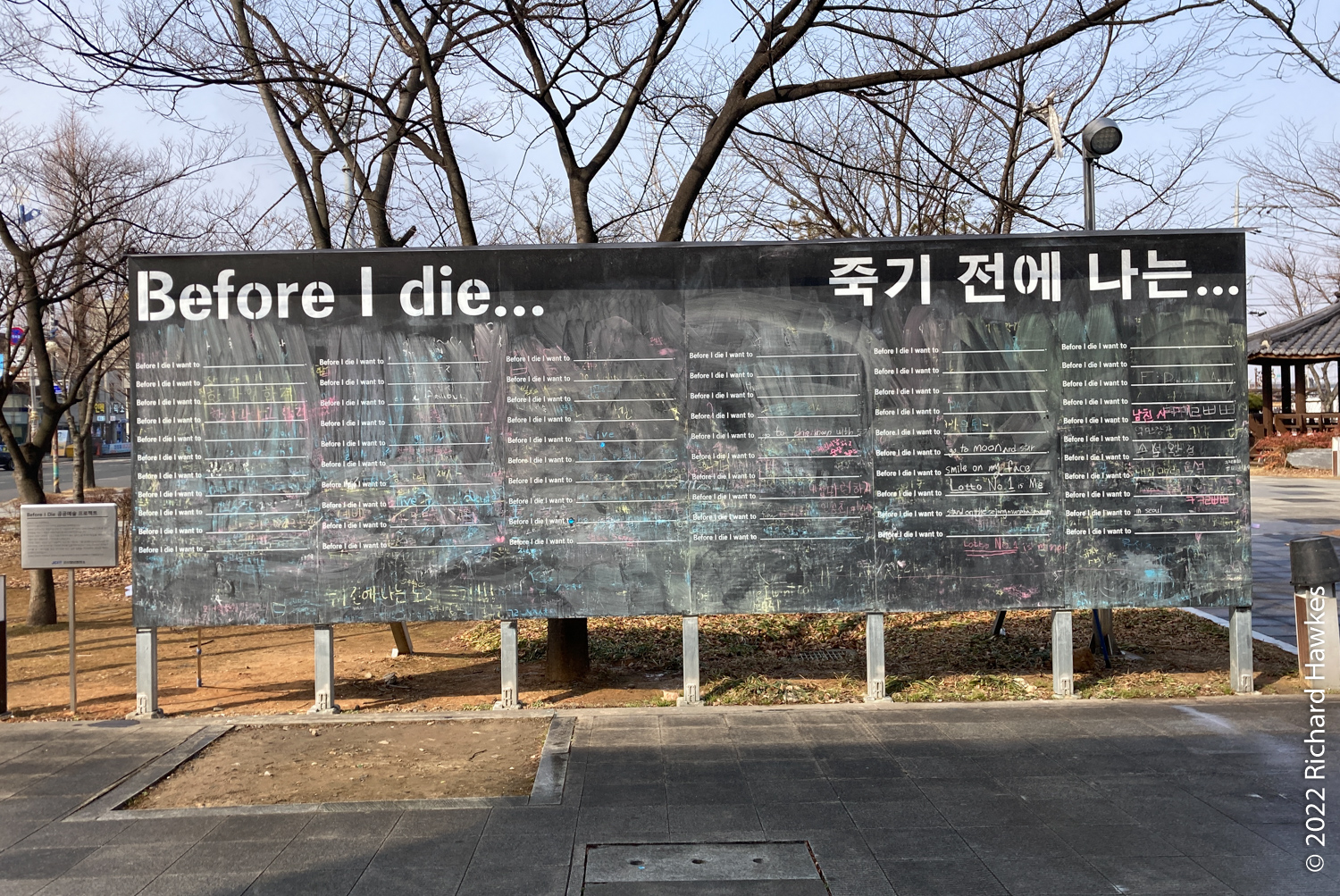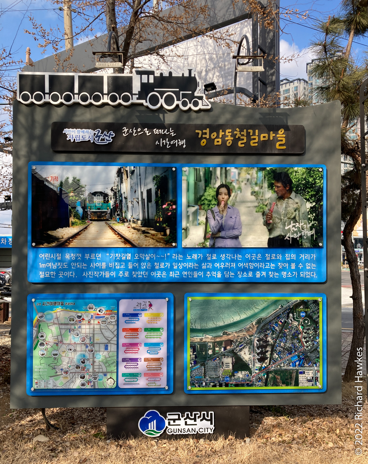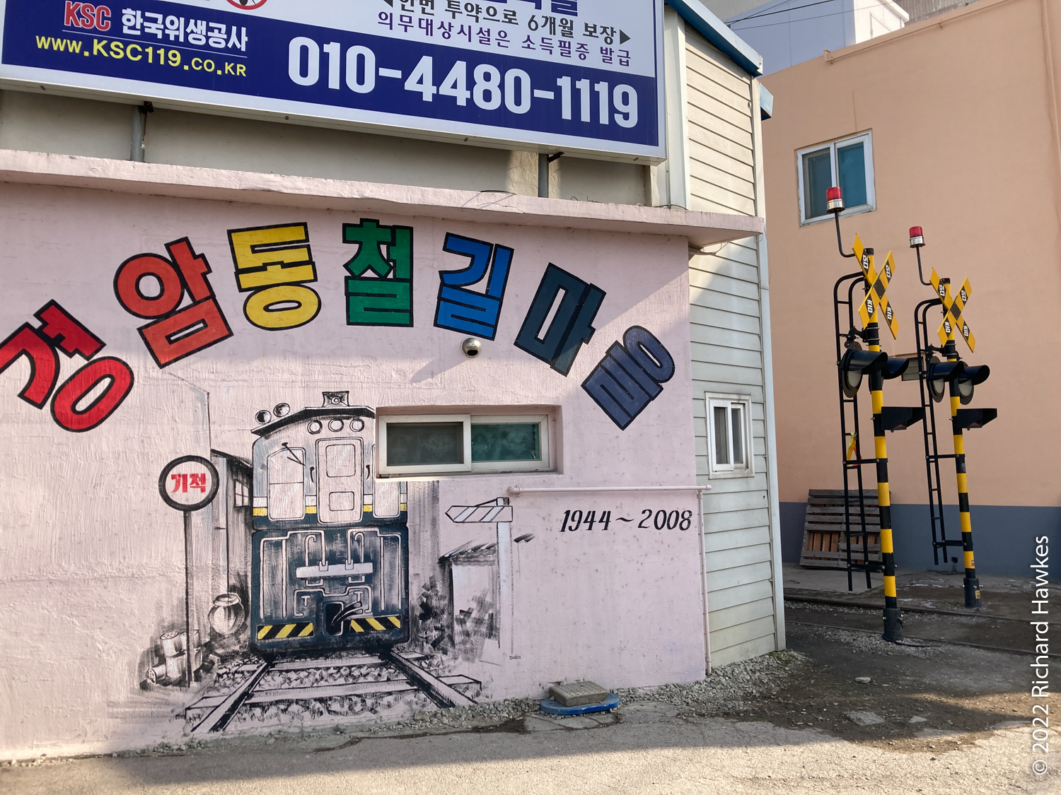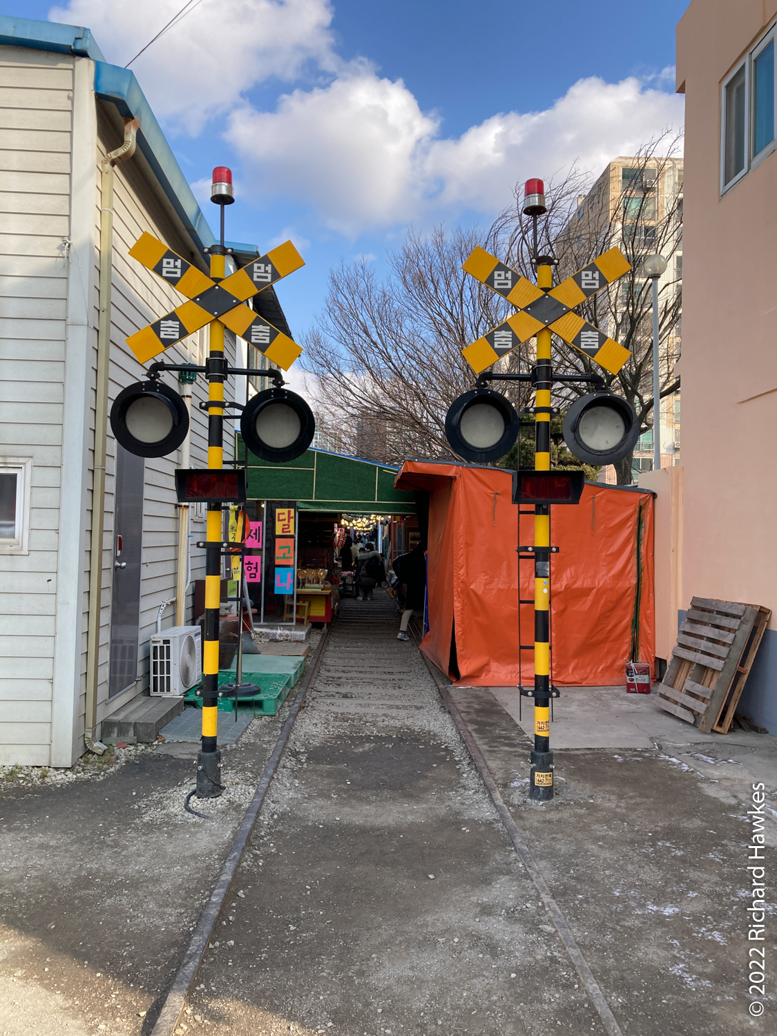 I’d heard of an old village that backed fully on to a rail track. I managed to get a bus from the park to Gyeongamdong Railroad Town (경암동철길마을), then spent a short time walking up and down it. Now it consists of stores in the tradition of nostalgic school days toys, food, and costumes. At the far end is a poster with photos of the actual village back in the day with people a stores operating just centimetres from the track, probably moving stuff out the way numerous times a day! A fun detour worthy of an hour, maybe longer if you’re feeling the nostalgi and stay for a snack.