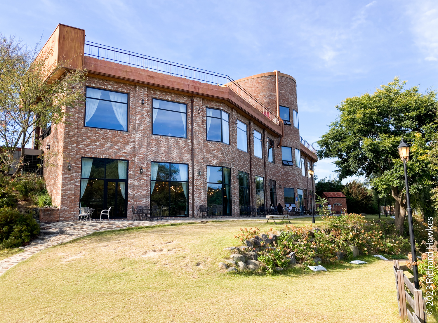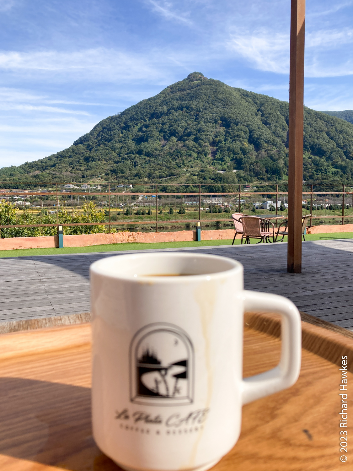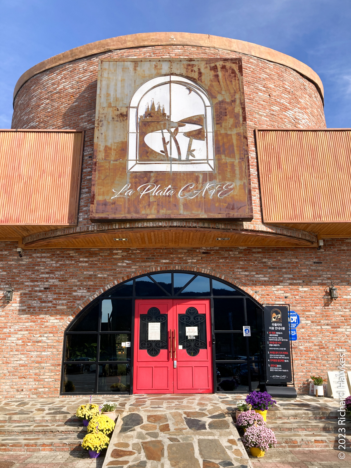 La Plata cafe (라플라타) is a mega cafe with garden and rooftop terrace overlooking a river and mountain.