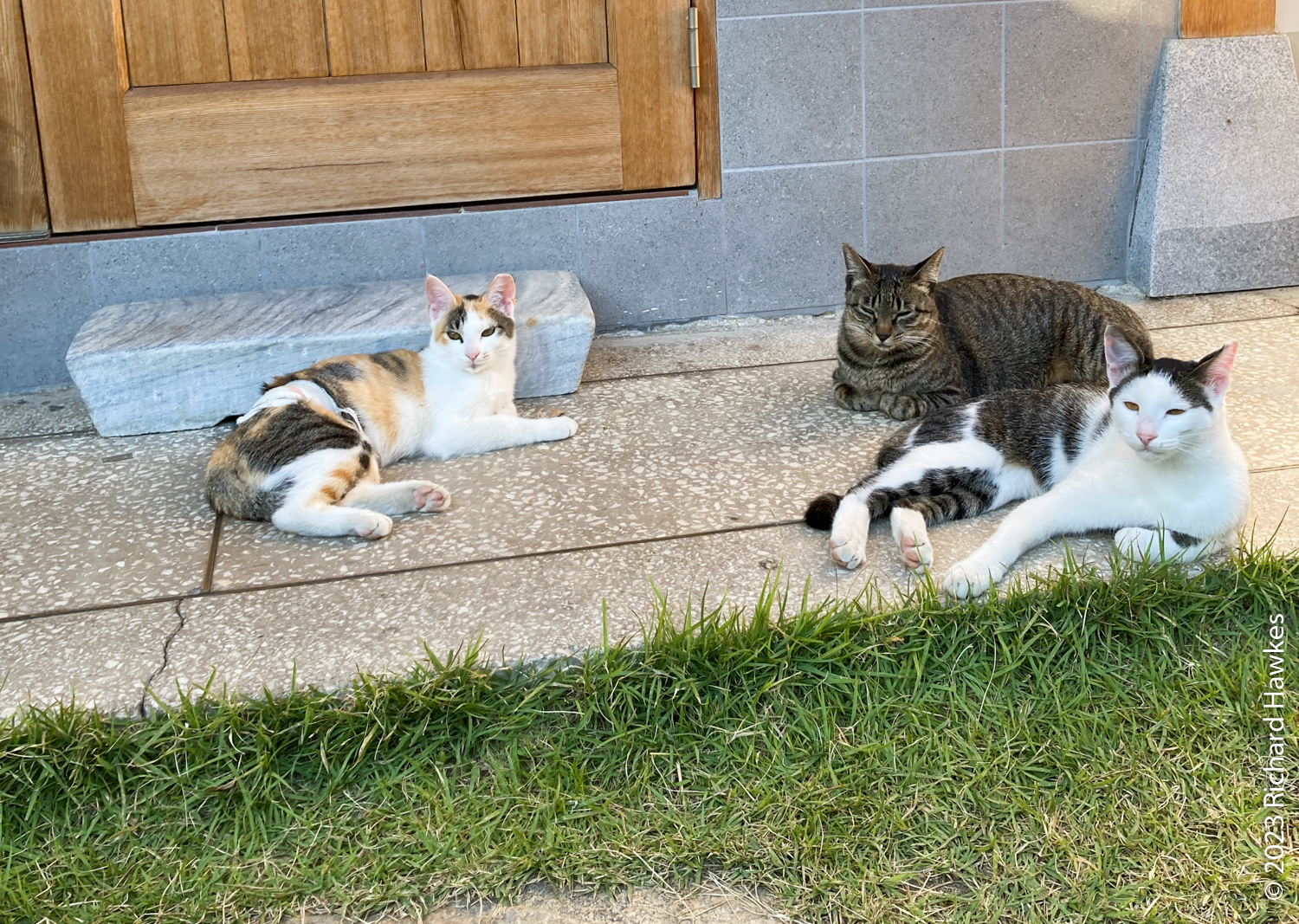 Back at the guesthouse, I showered then had a beer in the garden. One of the cats entertained me for a while. Another guest in the kitchen bought me some beer snacks (generous!) then I went to bed.