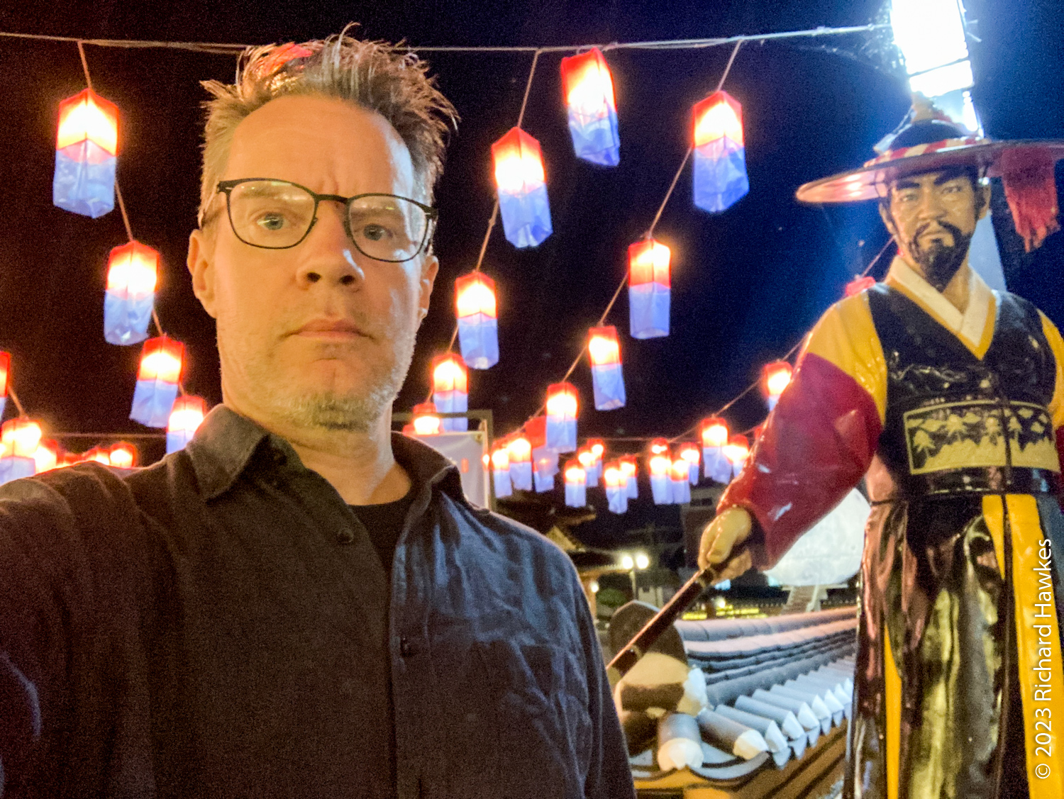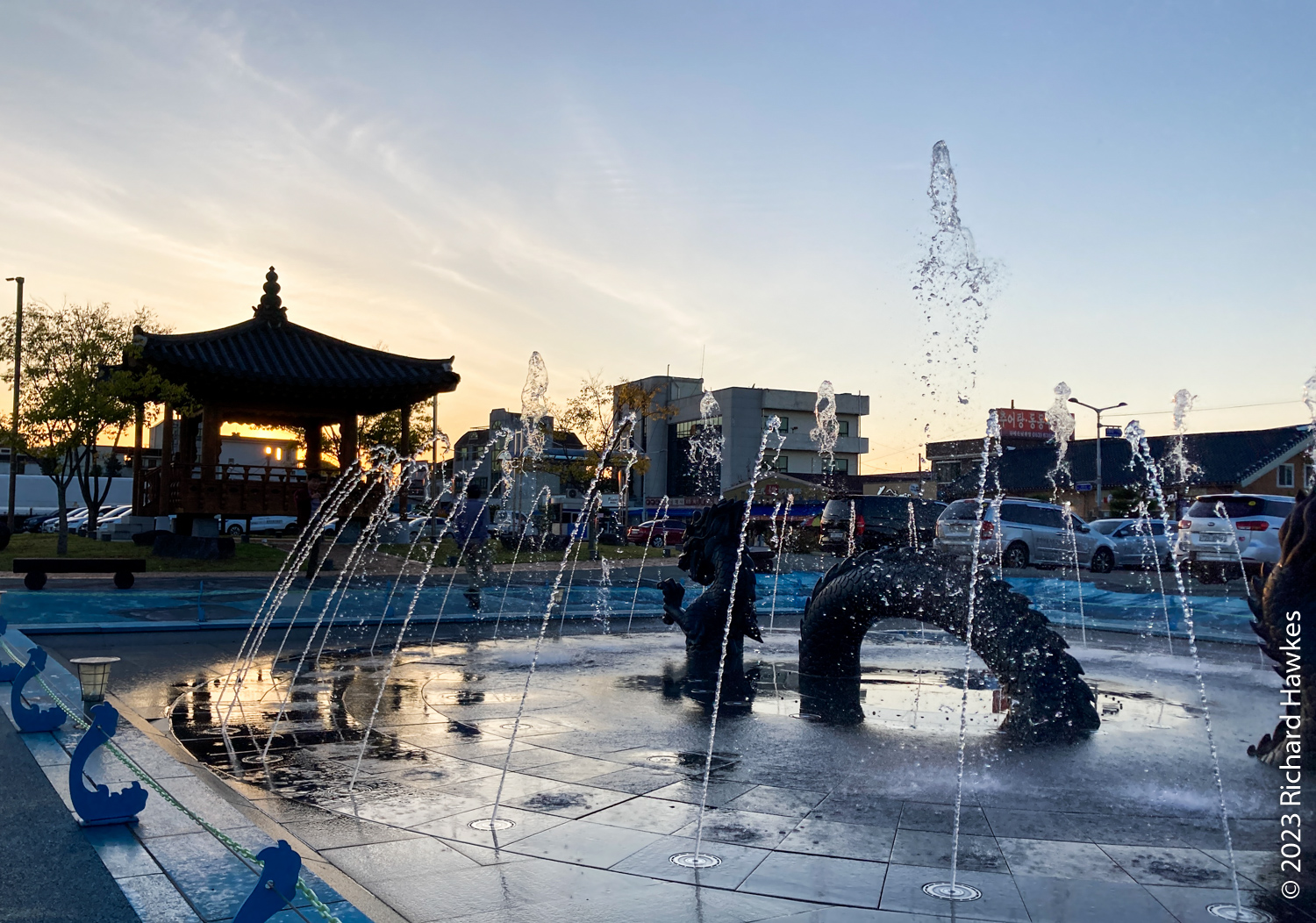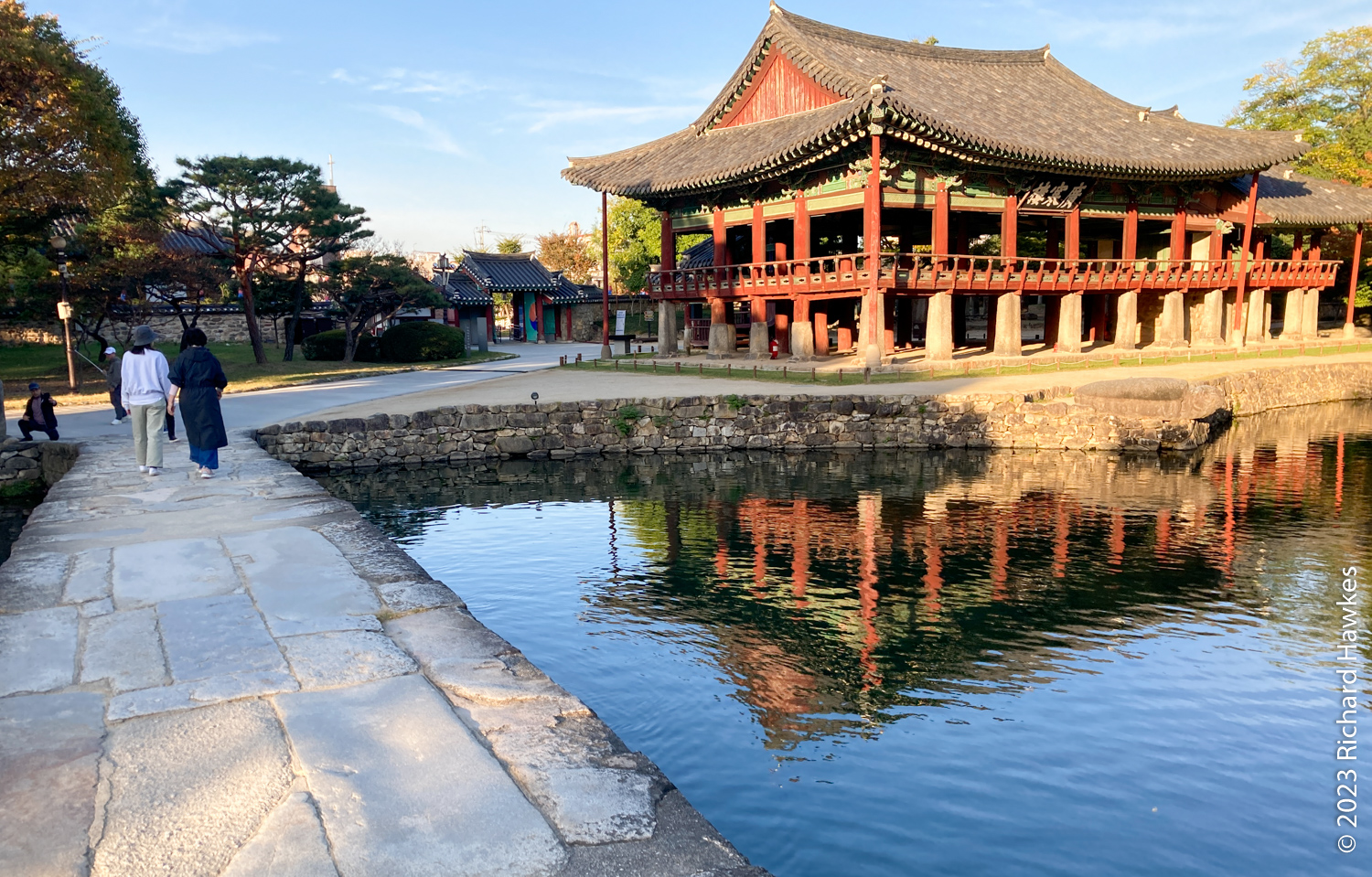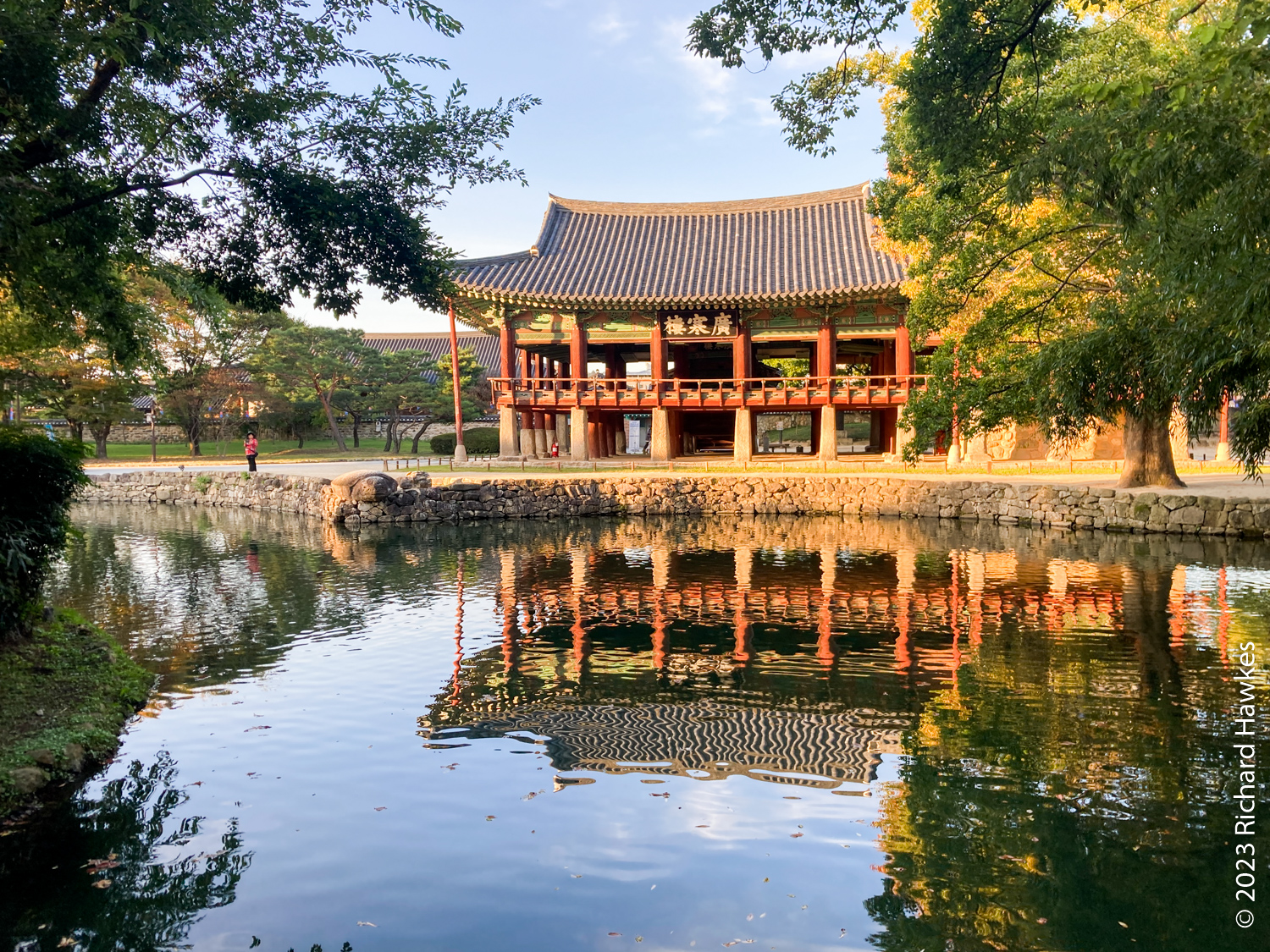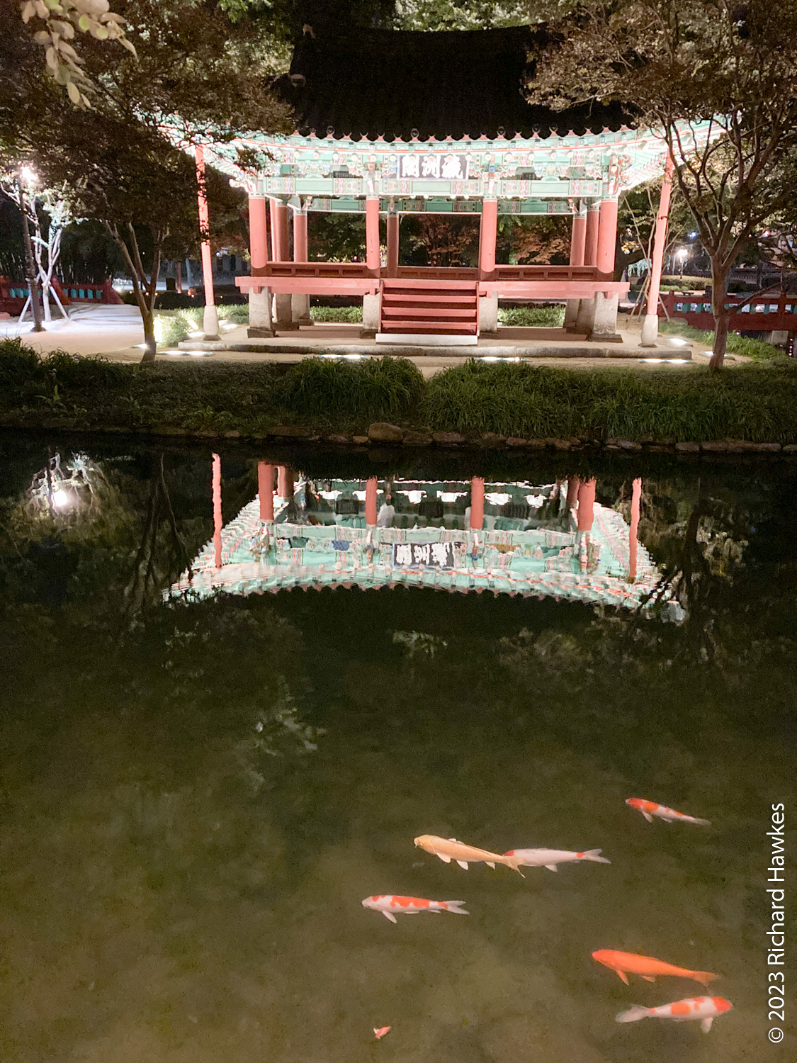 I went for a long wander to get some food and couldn’t really find anything that took my fancy. I tried one place that only served groups of two or more. I ended up at a 24-hour restaurant that served all kinds of things; not great but good enough. I then returned to Gwanghanruwon gardens to see it lit up with spotlights. It was quite nice.