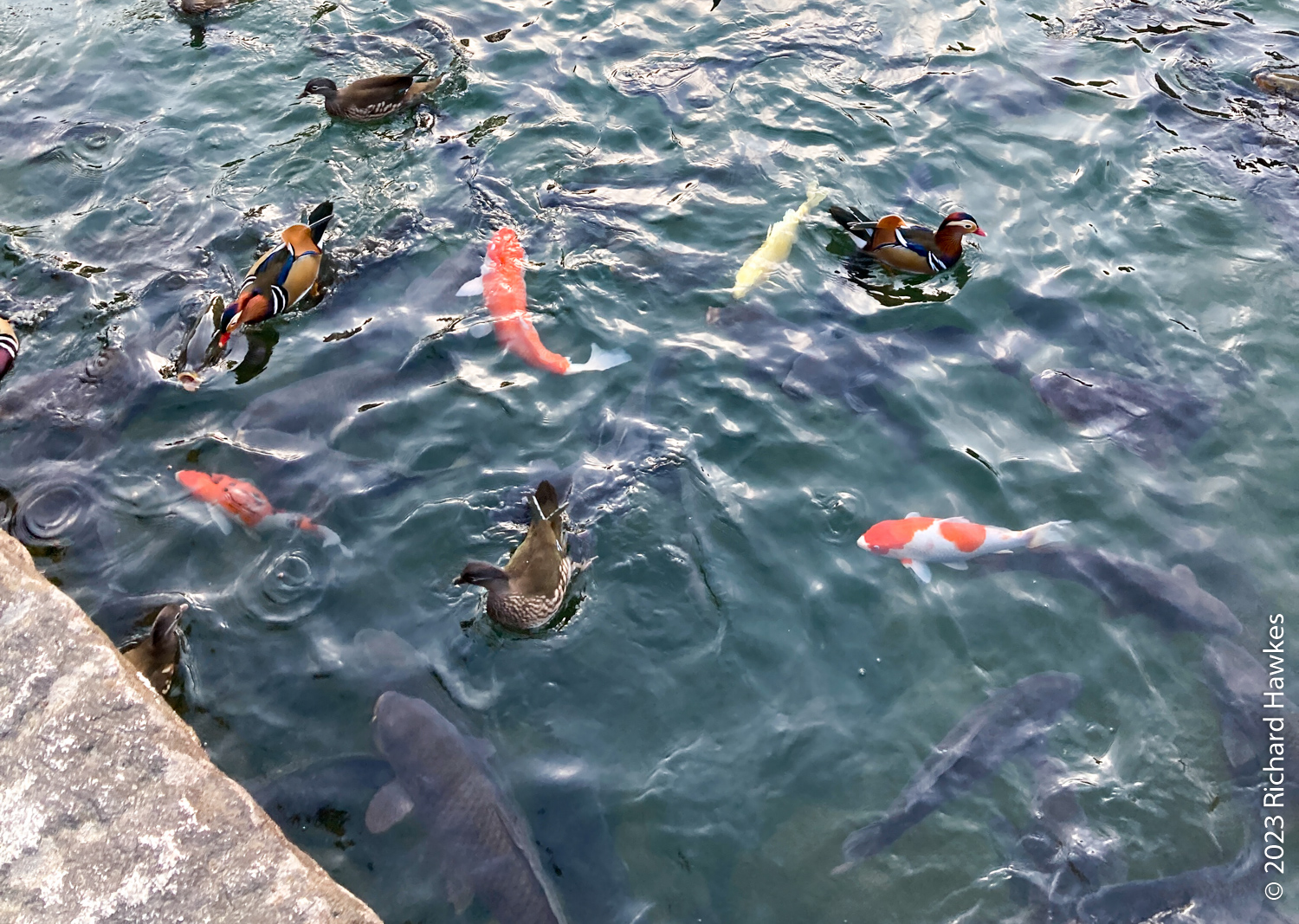 The Gwanghanruwon Gardens (광한루원) are probably the main attraction in Namwon. They are a collections of buildings, ponds and trees. It has some historical significance but I didn’t find that out! I spent about an hour there. There were some very interesting looking bird on swimming on the ponds, perhaps some kind of duck? There were also a lot of very large carp. The sun was setting and the light was perfect for photographs. The gardens were also open till quite late and free to enter after 6 pm (I’d paid about 5,000 won to get in).