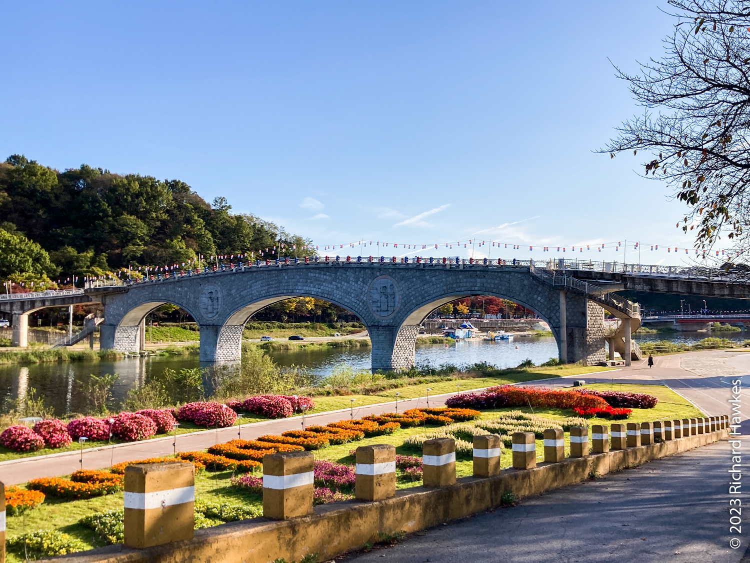 I walked along the stream and to Seung-Wolgyo (승월교) an elegant looking stone footbridge. It seemed like there was some kind of flower festival in preparation. I didn’t go but heard some musical performers later.