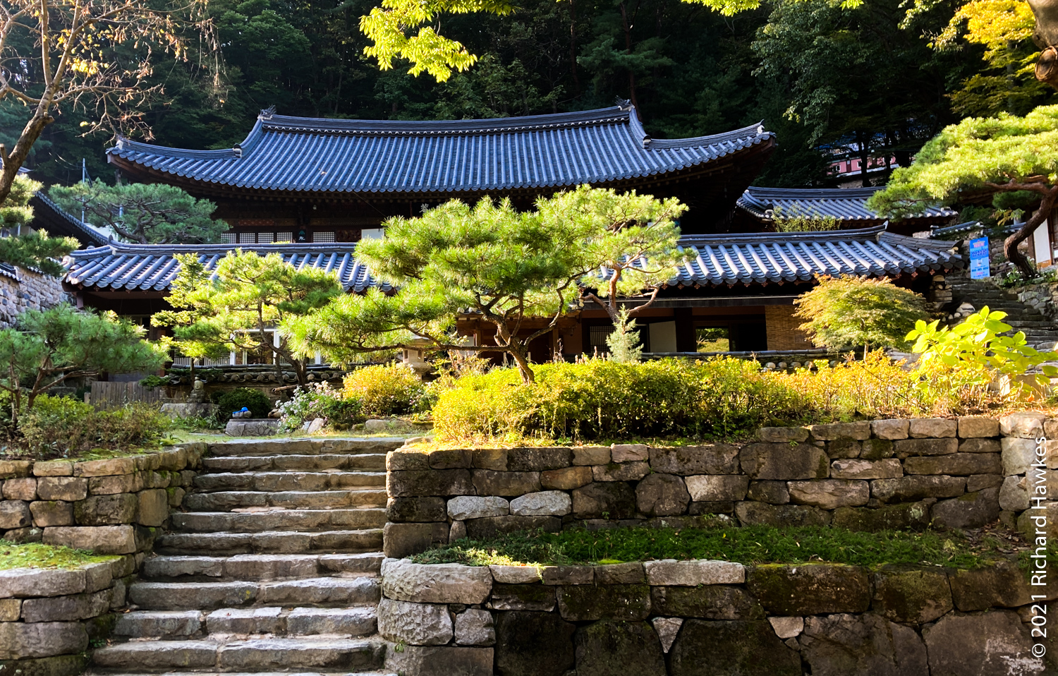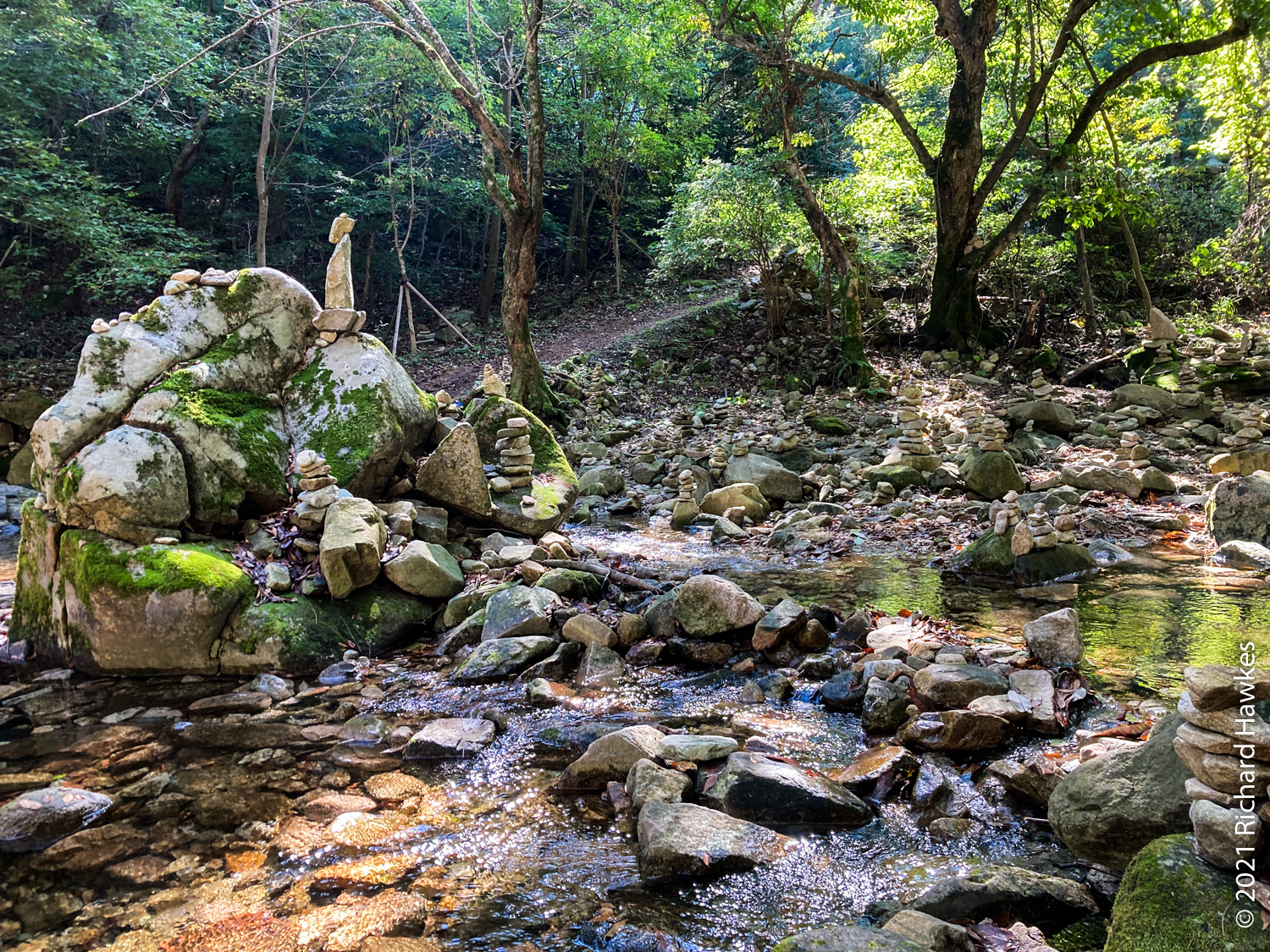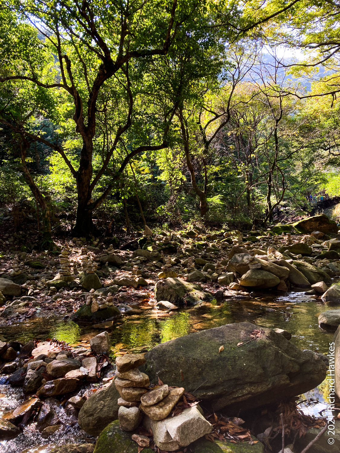This is my second trip to Gyeryongsan (계룡산); I came in the summer of 2019 with Romana but we didn’t hike up, just enjoyed the streams! This trip was going to be a hike to the peak. I drove to the eastern park entrance and paid a small fee to park. I walked to the trailhead stopping at Sandeul-E (산들에) for some coffee to drink outside in the sun. I walked up a road (some car was driving crazily out of the park so I pretended to take pictures and report them on the phone…huh) along a stream and then past Donghaksa temple (동학사), also a Buddhist school.