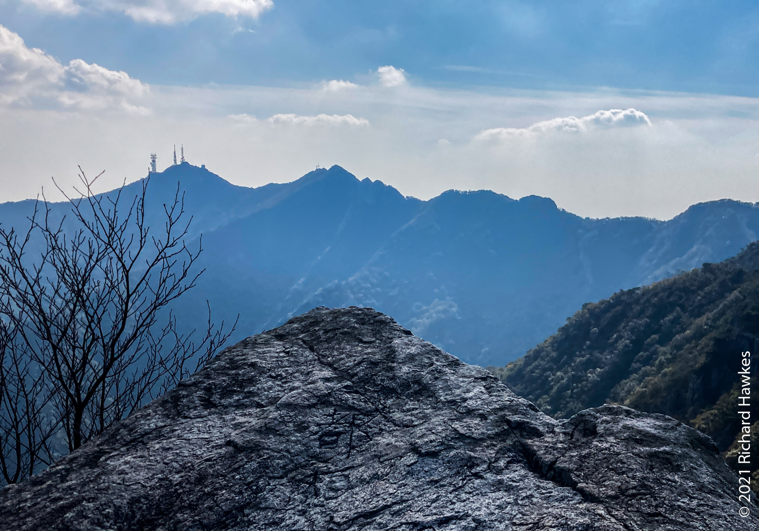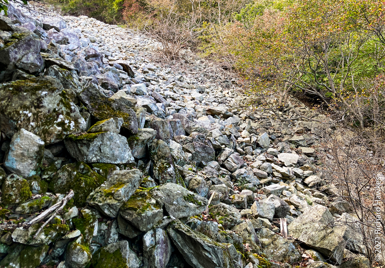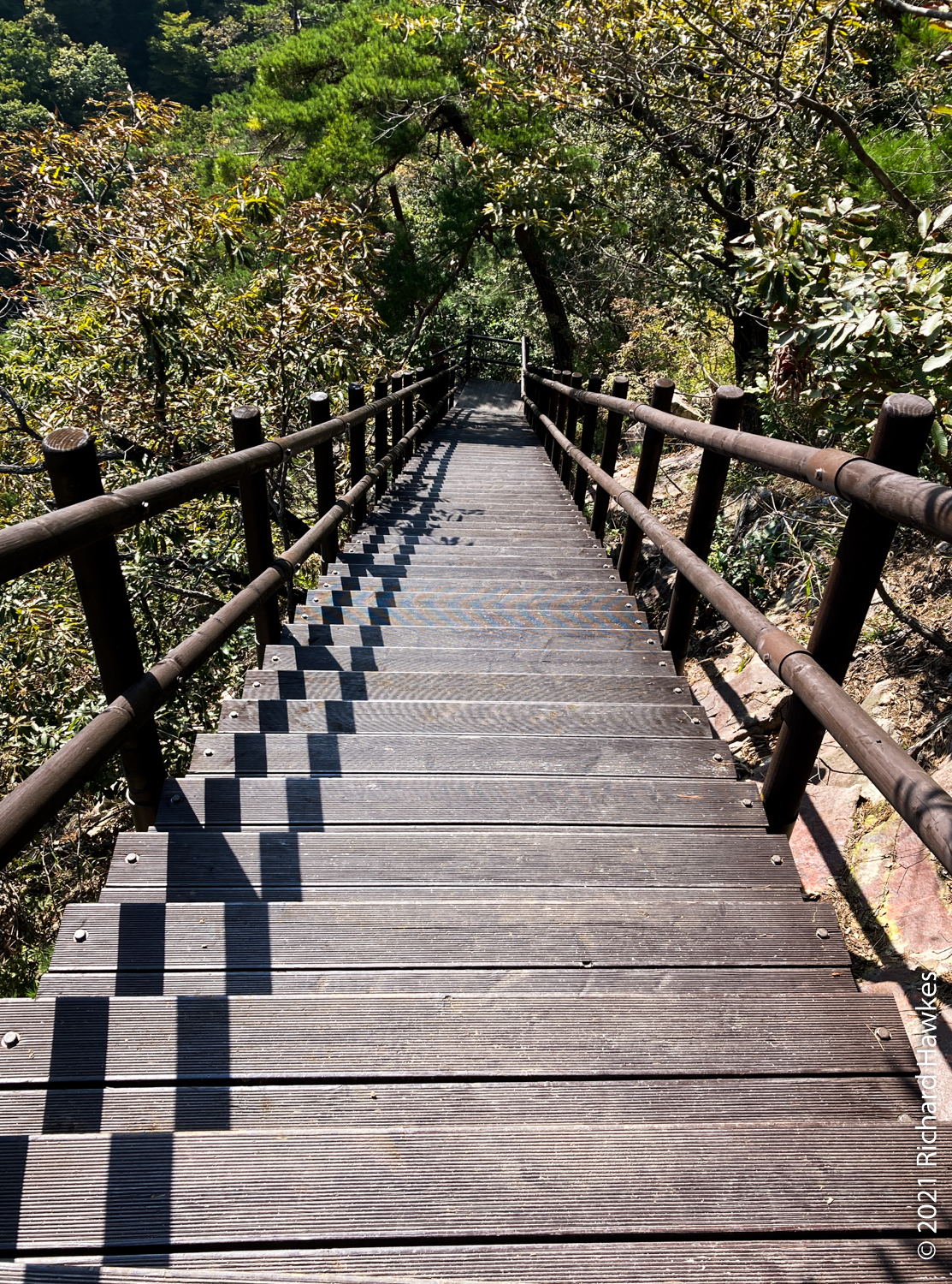 I didn’t stop for the temples and kept on going. I got to the real trail and headed up through forest, rock and stairways. It wasn’t a tricky hike and there were lots of green valley views behind me, as well as a long section of rock rubble that took up a whole slope.