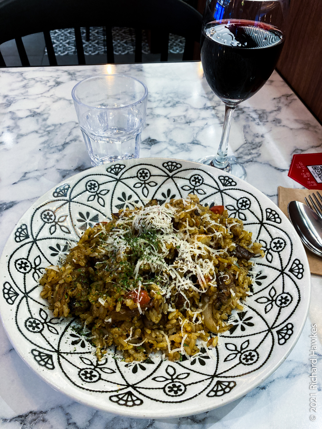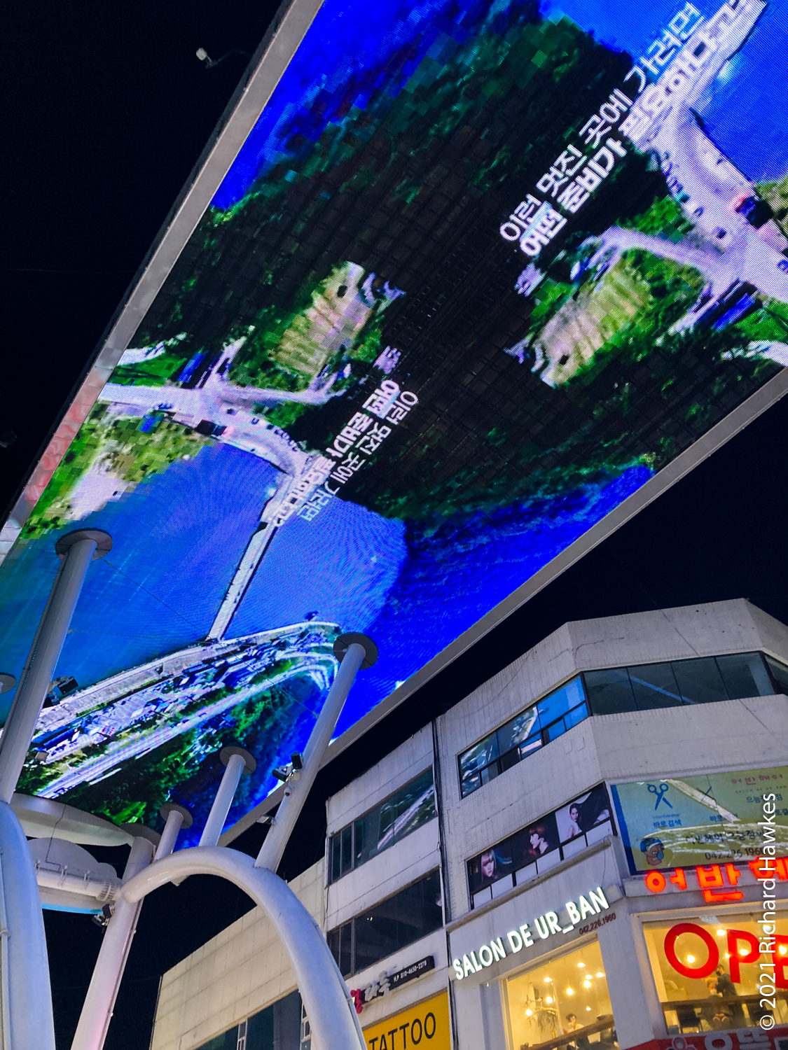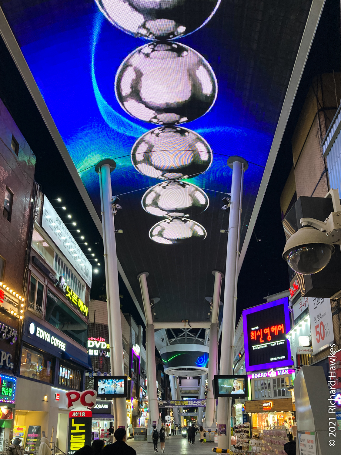 I drove back to Daejeon, parked up, washed up, then out to hunt for food. I went to the busier part of town but wasn’t really inspired by the towny offerings. Out of desperation I went to Rolling Pasta, a chain pasta restaurant from Baek Jong-won, one of Korea’s top TV chef personalities (a Ramsey and/or Oliver type!). I wasn’t expecting much, just desperate for food! But… the sausage pasta was actually very, very good and reasonably priced; the wine was only 3,000 won a glass and was perfectly decent! Lucky me. Afterwards, I found Sky Street (Road?) on Uineungjeongi Cultural Street.