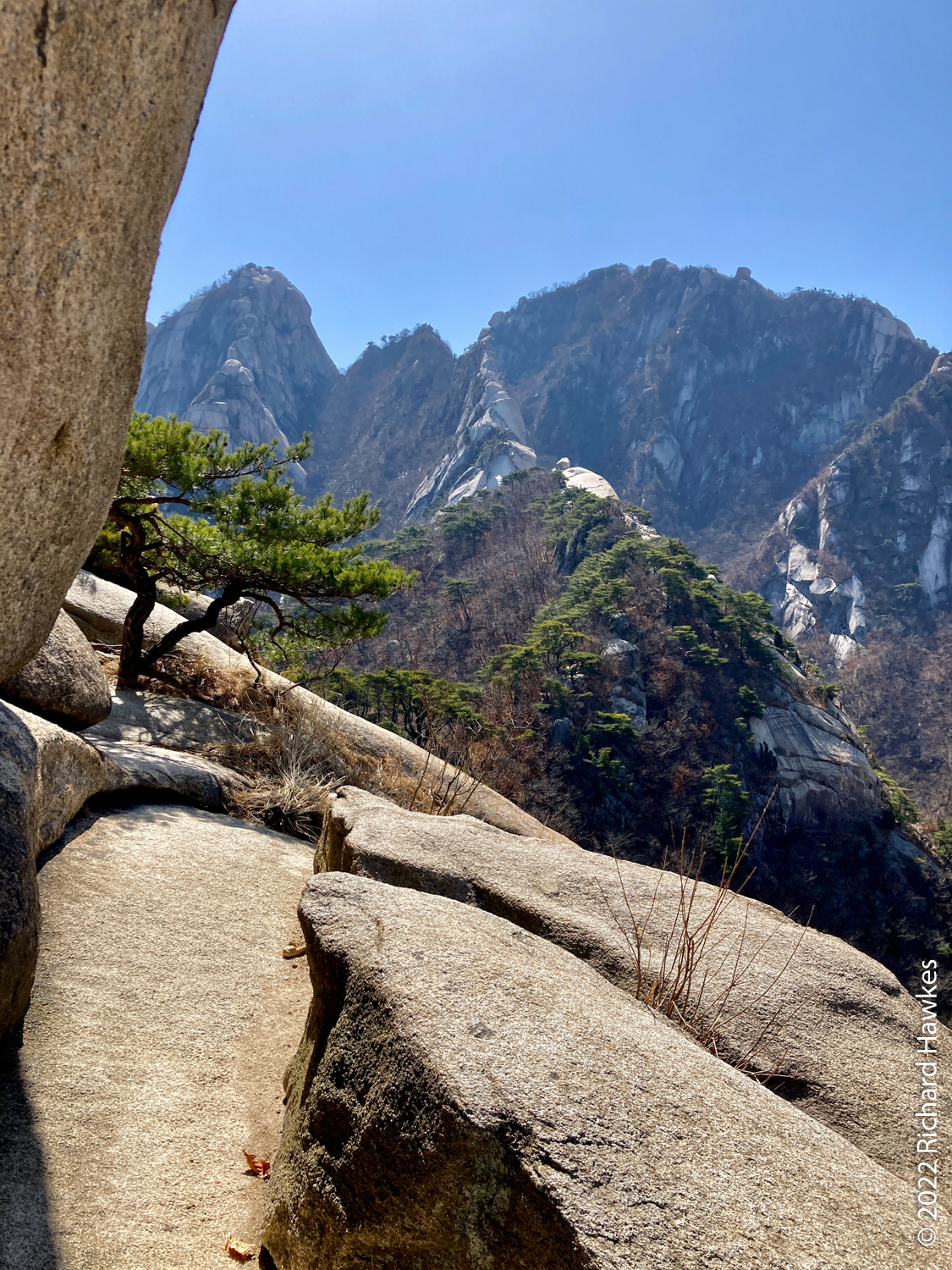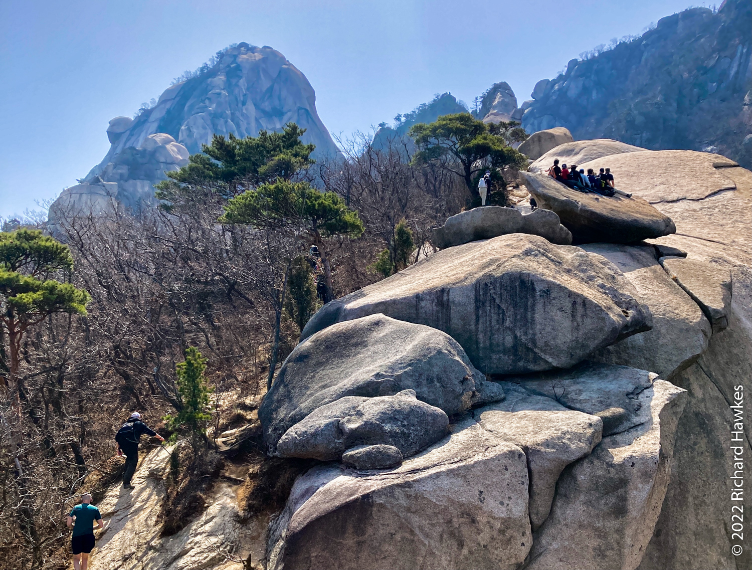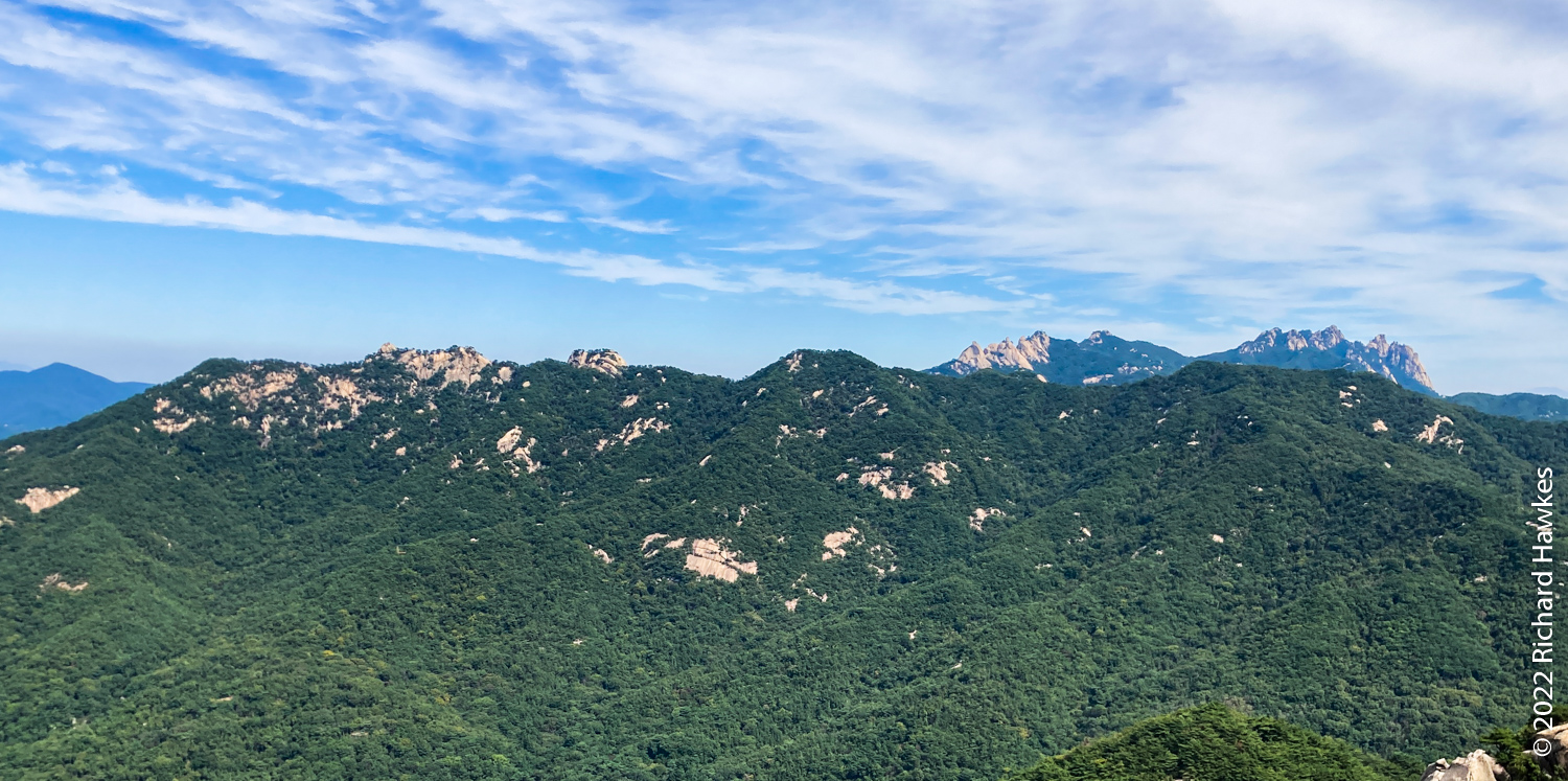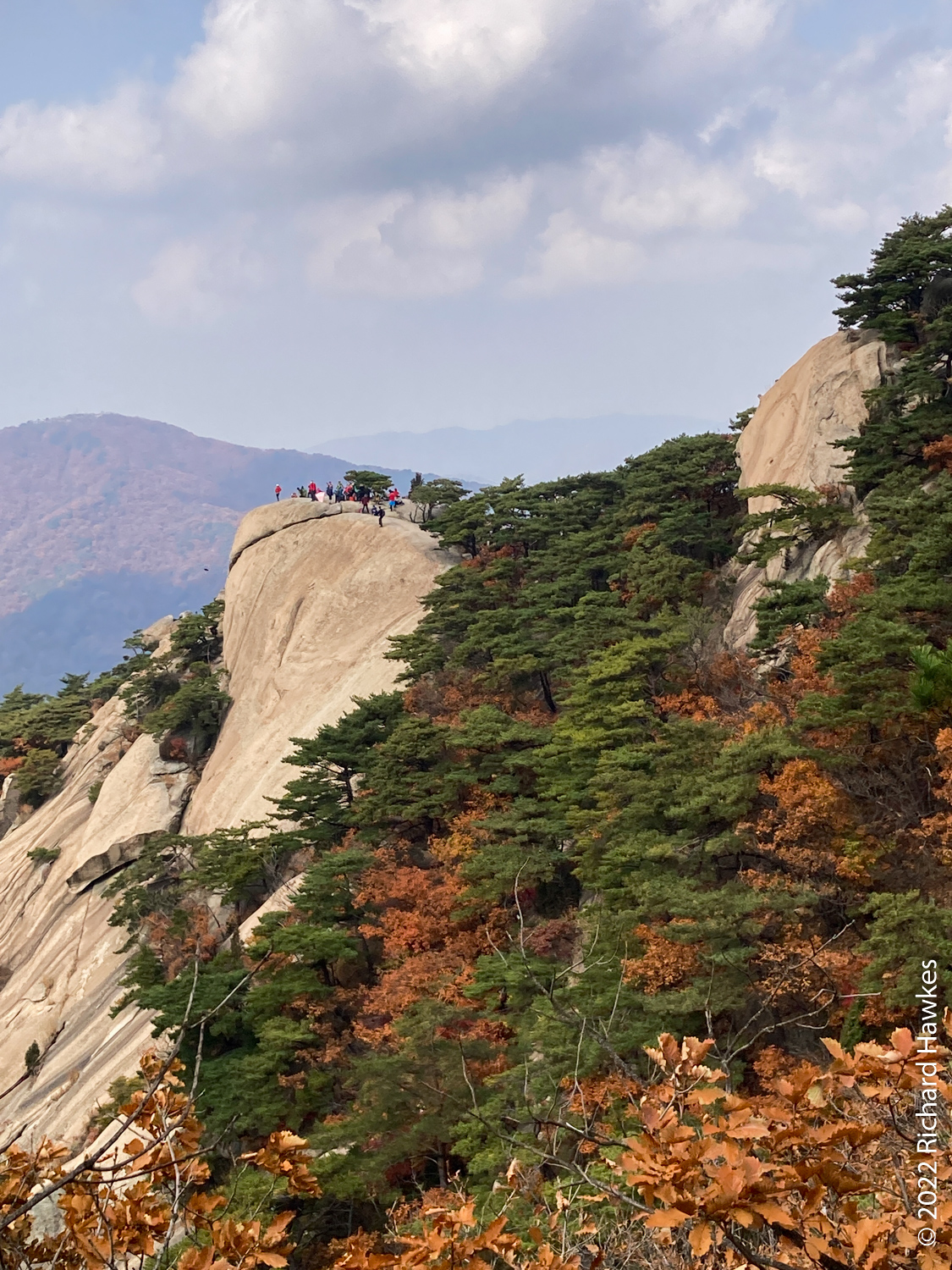 The rest of the hike was easy going and relaxing. Looking back at Baegundae is always fun; sometimes there are rock climbers clinging to the rocks. You can always see hikers walking along the wall section that leads to the peak. For photos of this though, you’d need some decent lenses.