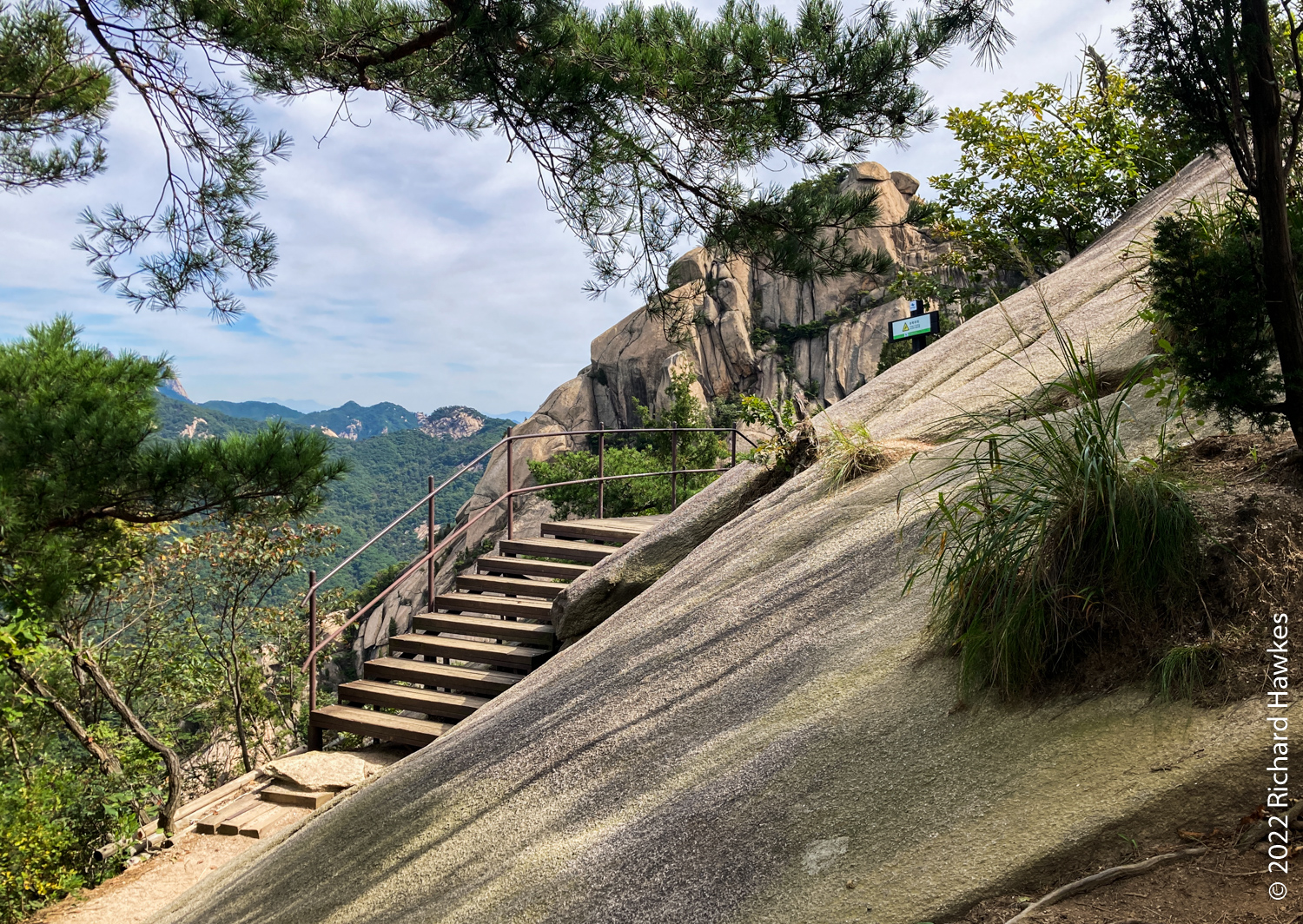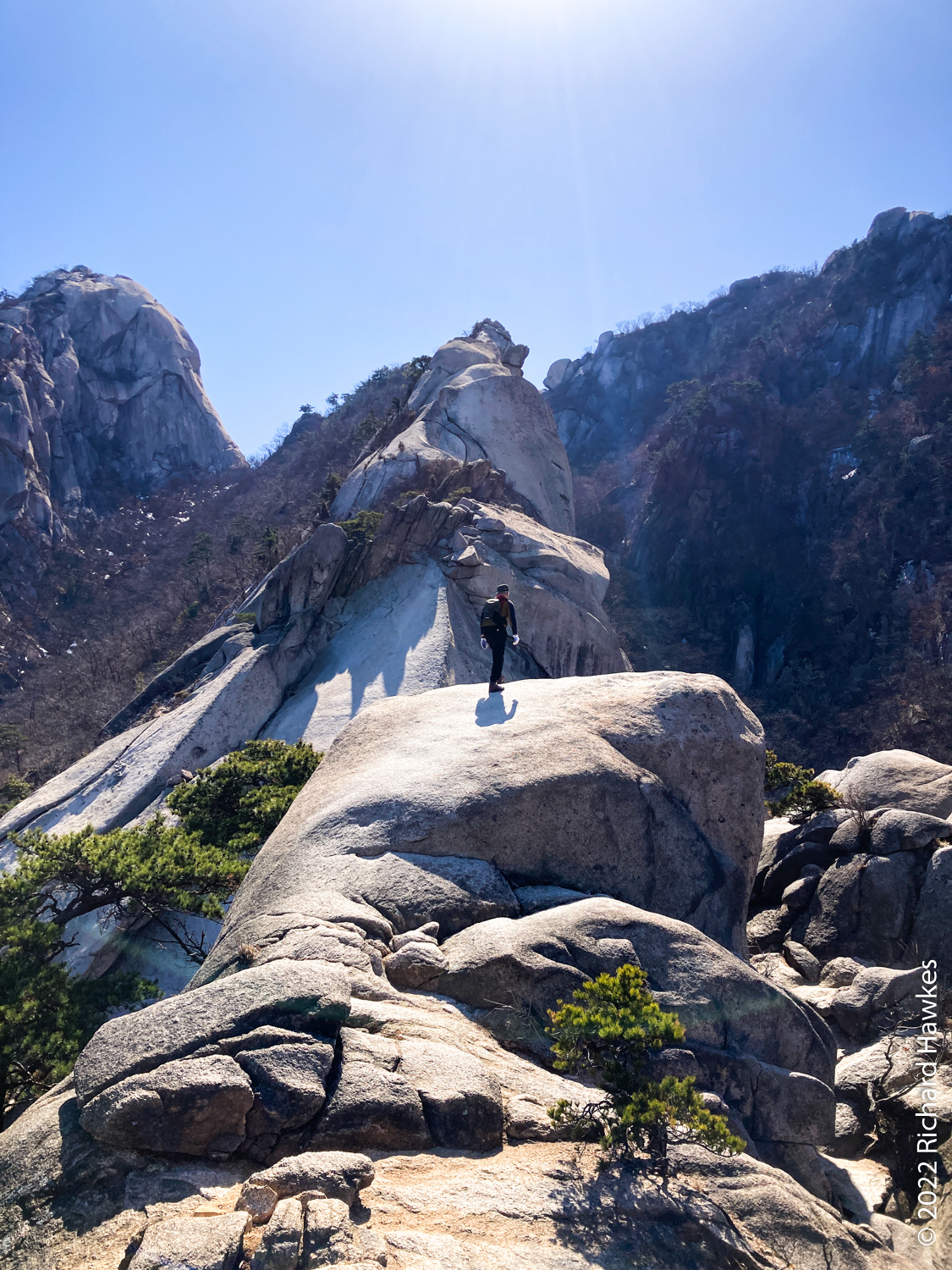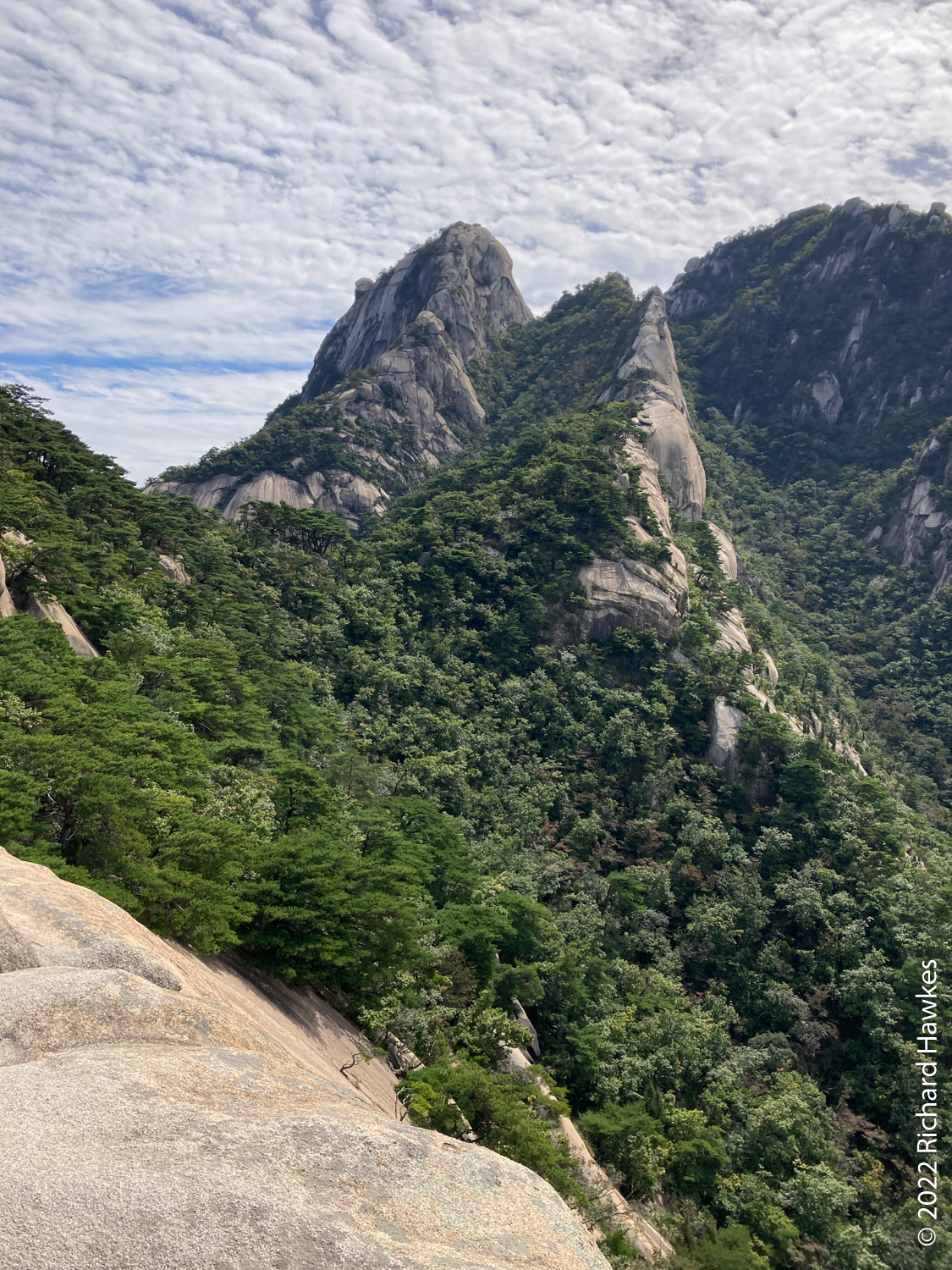 The rest of the hike was easy going and relaxing. Looking back at Baegundae is always fun; sometimes there are rock climbers clinging to the rocks. You can always see hikers walking along the wall section that leads to the peak. For photos of this though, you’d need some decent lenses.