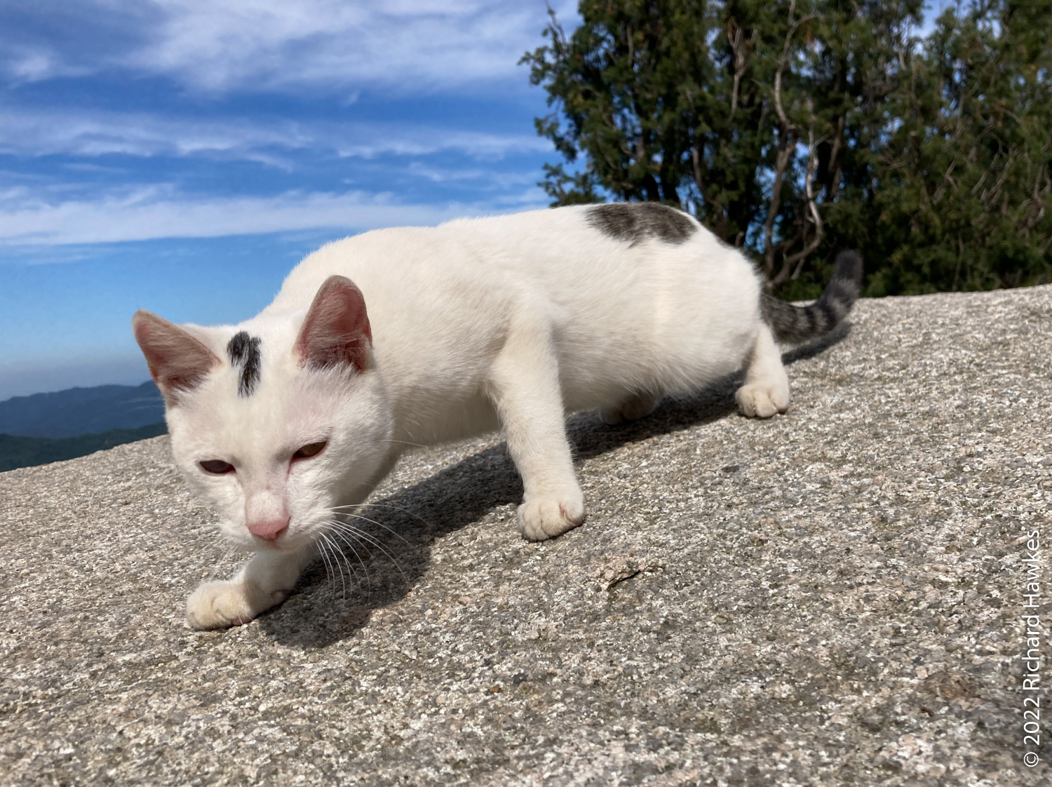 At the start of the main peak there were a few people eating and three or four inquisitive cats.