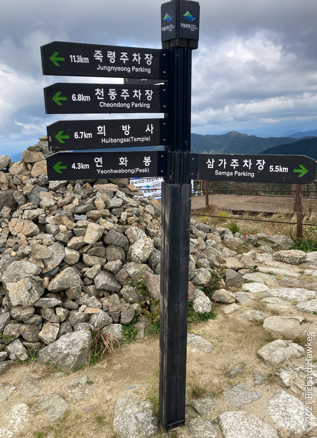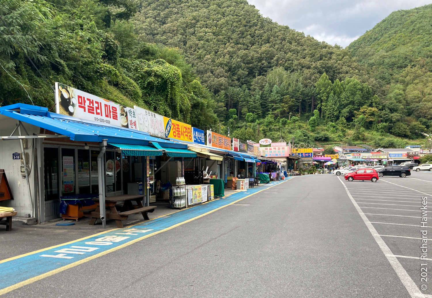 I drove about 10 minutes to the entrance of Sobaeksan National Park, then drove back about half a click back to find some free parking; I wasn’t sure, but I think only people staying at the accommodation are allowed to park there… need to double check.