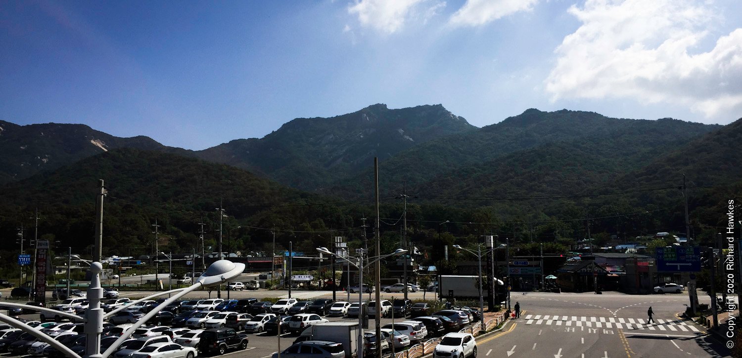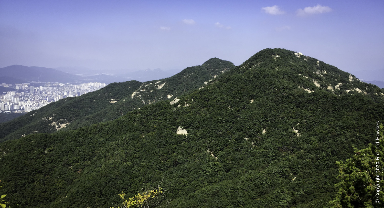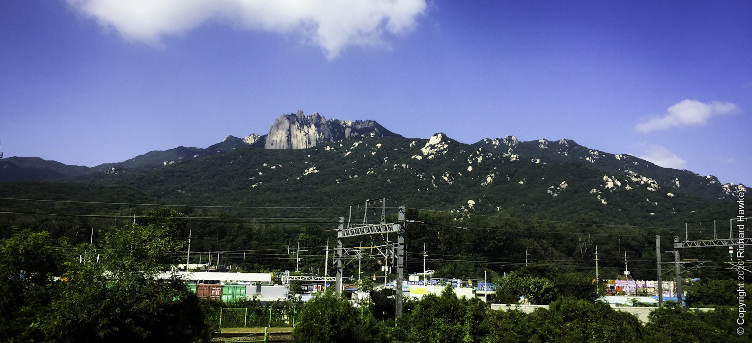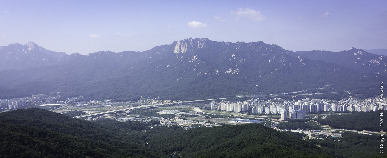 I headed out of Jangam Station and head east and crossed a main road. I saw a grilled chicken place and headed east up the road to get to the main trail. From here you can look west and see the mighty Dobongsan and east to see Suraksan. The light was much better on Dobongsan at this time of day.