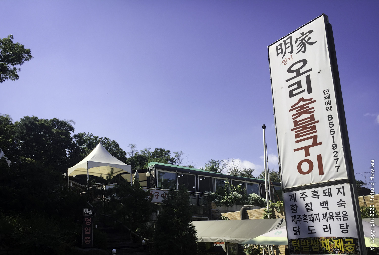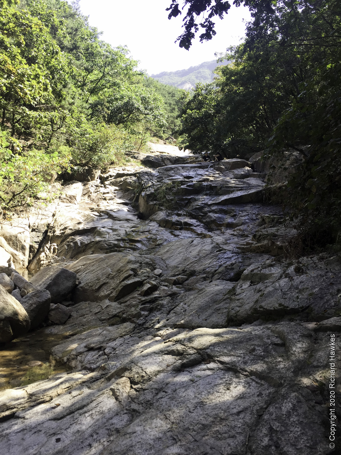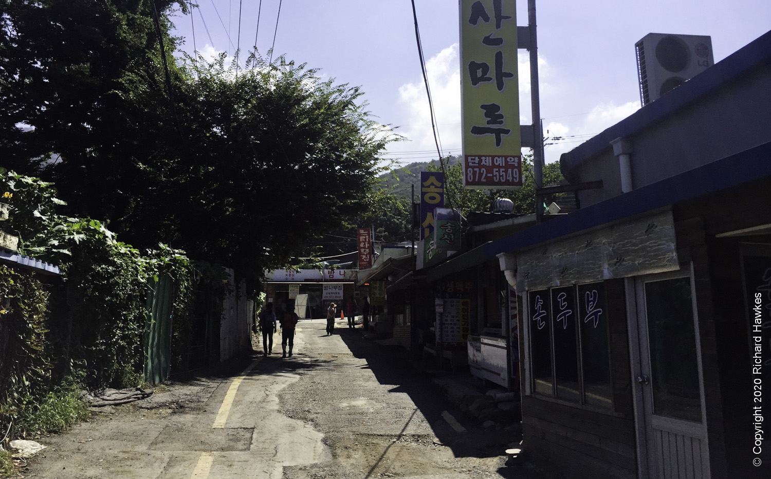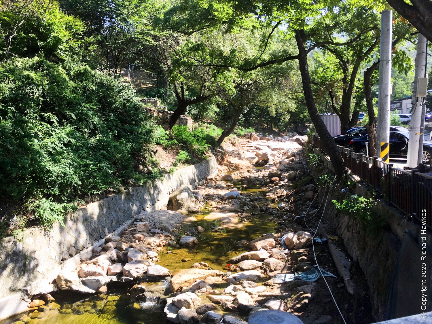 On the trail out, heading west, I came across a stream with people playing and wading in it, plus a few restaurants. I stopped at a place that sold jeon (전) korean pancake, and had some with a beer.