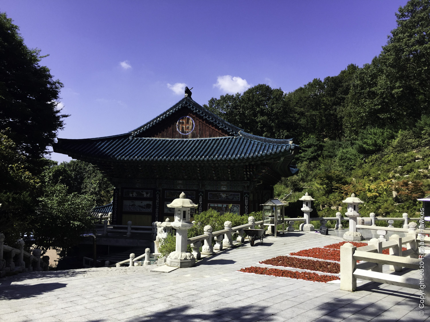 There’s a river on the way which you follow, plus some interesting buildings including a Surak Temple (수락사) which had lots of red chilis drying in the sun.