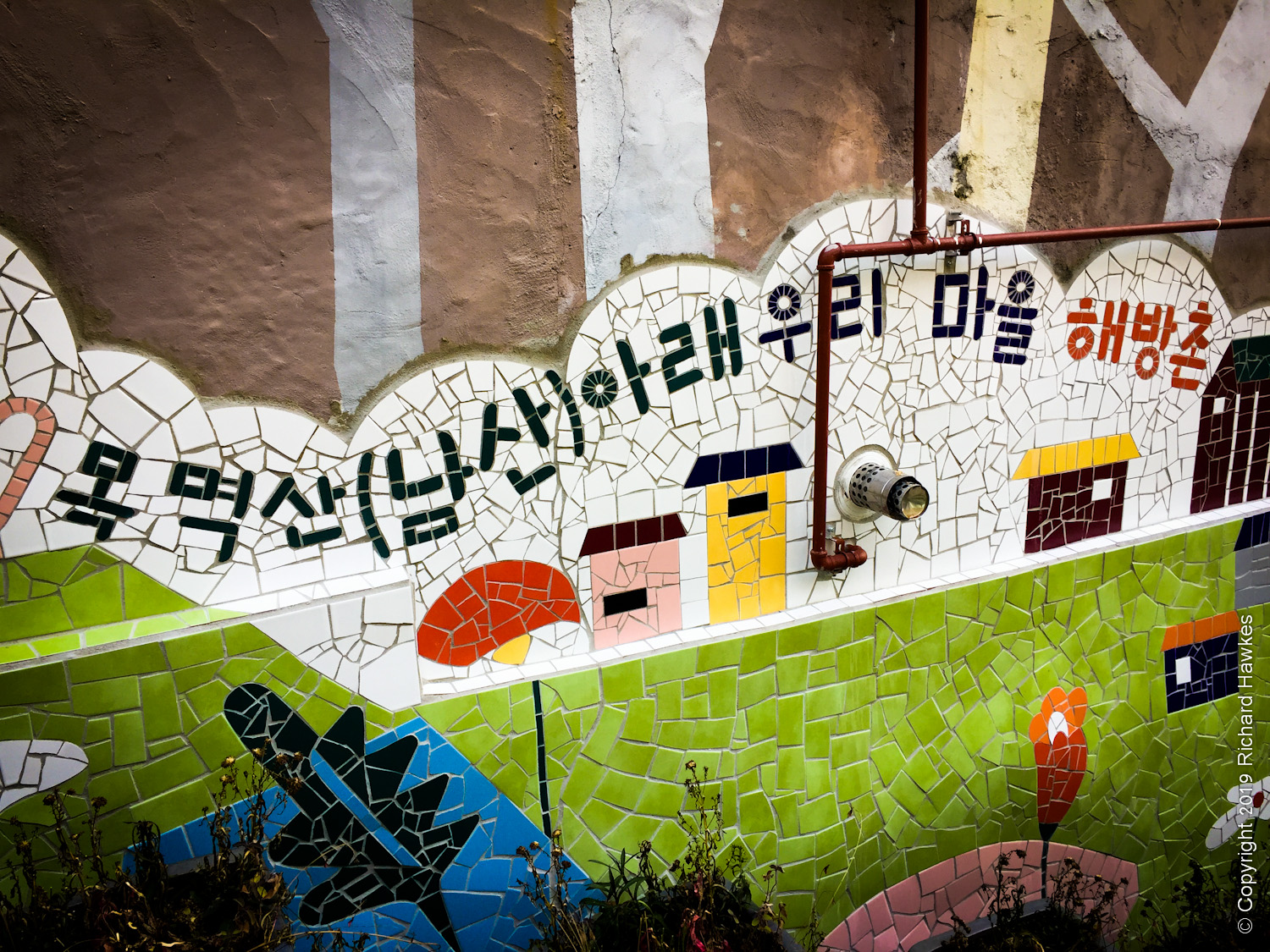 After a fine drip coffee at Narino, and on my way back home, I went to the 108 Heaven Stairway, or at least I think that’s the name in Korean. Apparently it was made during the Japanese occupation and led to a Shinto shrine; the locals were required to march up these steps every day to pray there, and once liberated, the same residents tore it down. The stairs are still there, with an added funicular type elevator, which reminded me of my trip to Lisbon a few years back. Not quite as old and far fewer murals and graffiti, but interesting nonetheless.