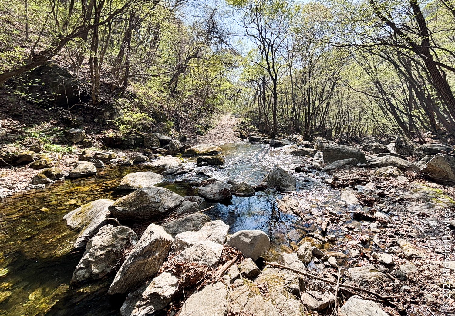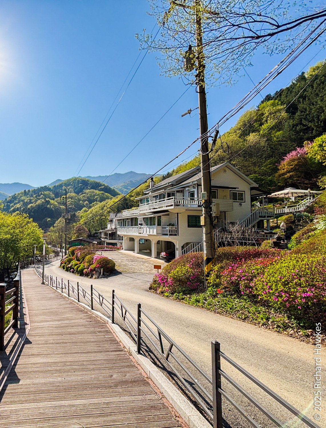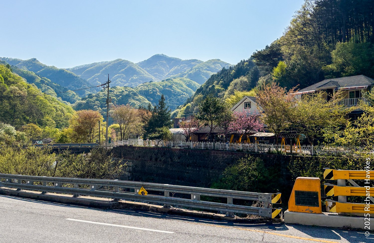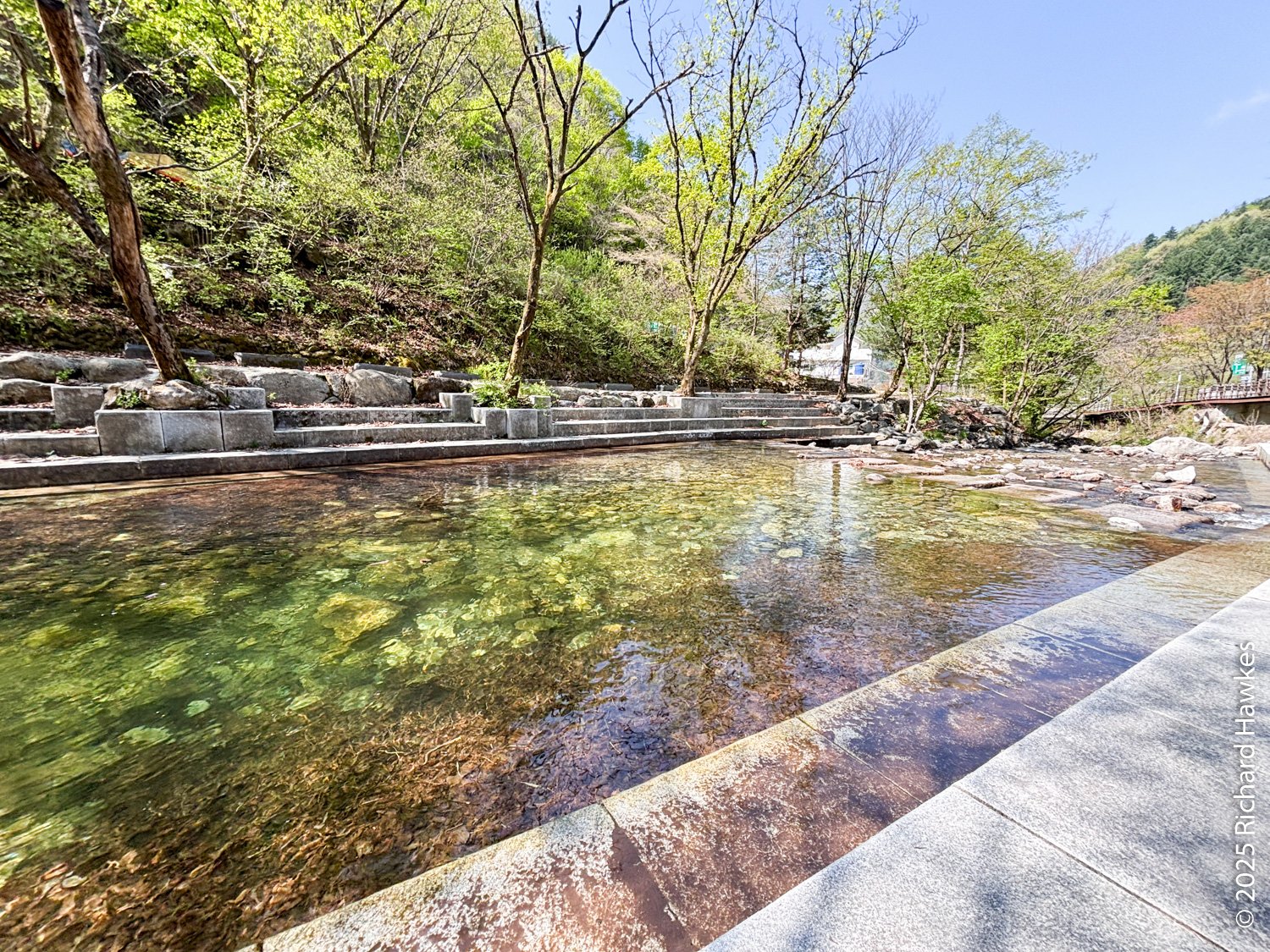 I got trains from home to Gapyeong station (arriving about 8:30) where I collected my reserved SOCAR for the day. It took me till 10 am to get to the trailhead as it took a while to walk from Gapyeong station to the car collection point, then drive through all the school zones! First, I went to an official car park for the trail but decided it was too far so doubled back and parked on the road by the trailhead. I imagine parking here on weekends would be an issue, but not on a Monday. The entrance is a tarmac road with a few vacation properties on the side. The road starts off next to a nicely built water spot where families can safely wade and play around in the water.