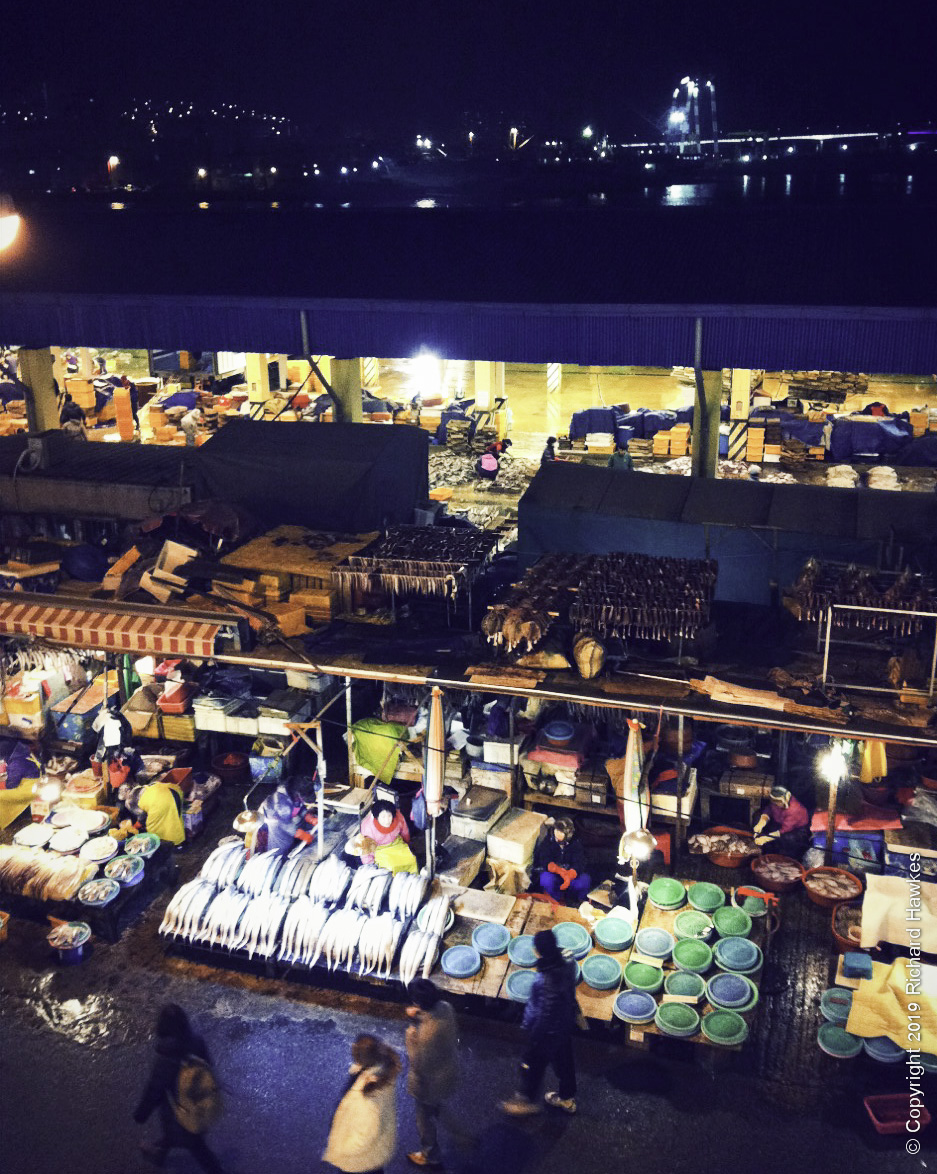 What is it with tourists and fish markets? This was our first stop in Busan, basically to get food, and this fish market is pretty well-known. It was cold and we were hungry!
