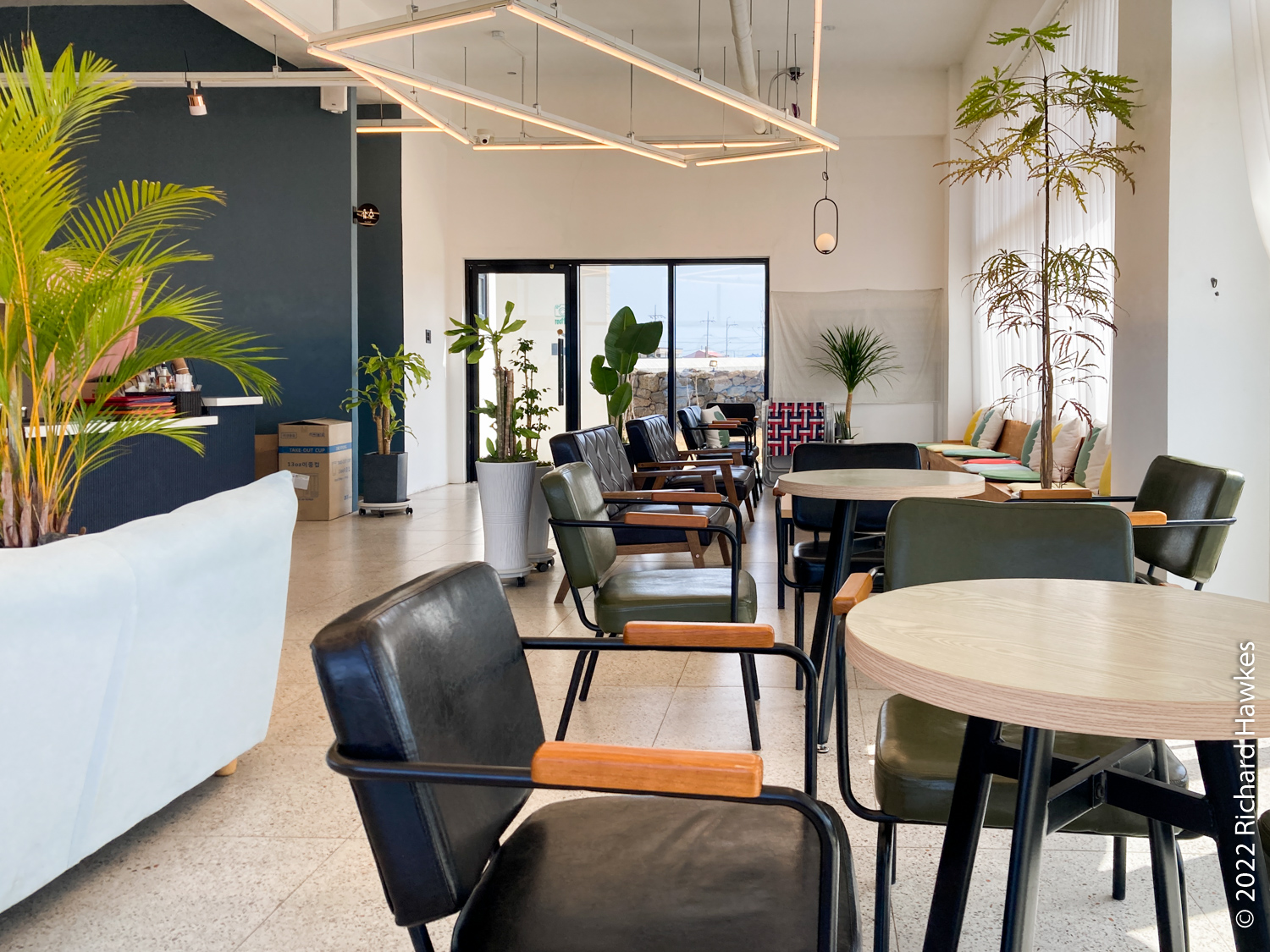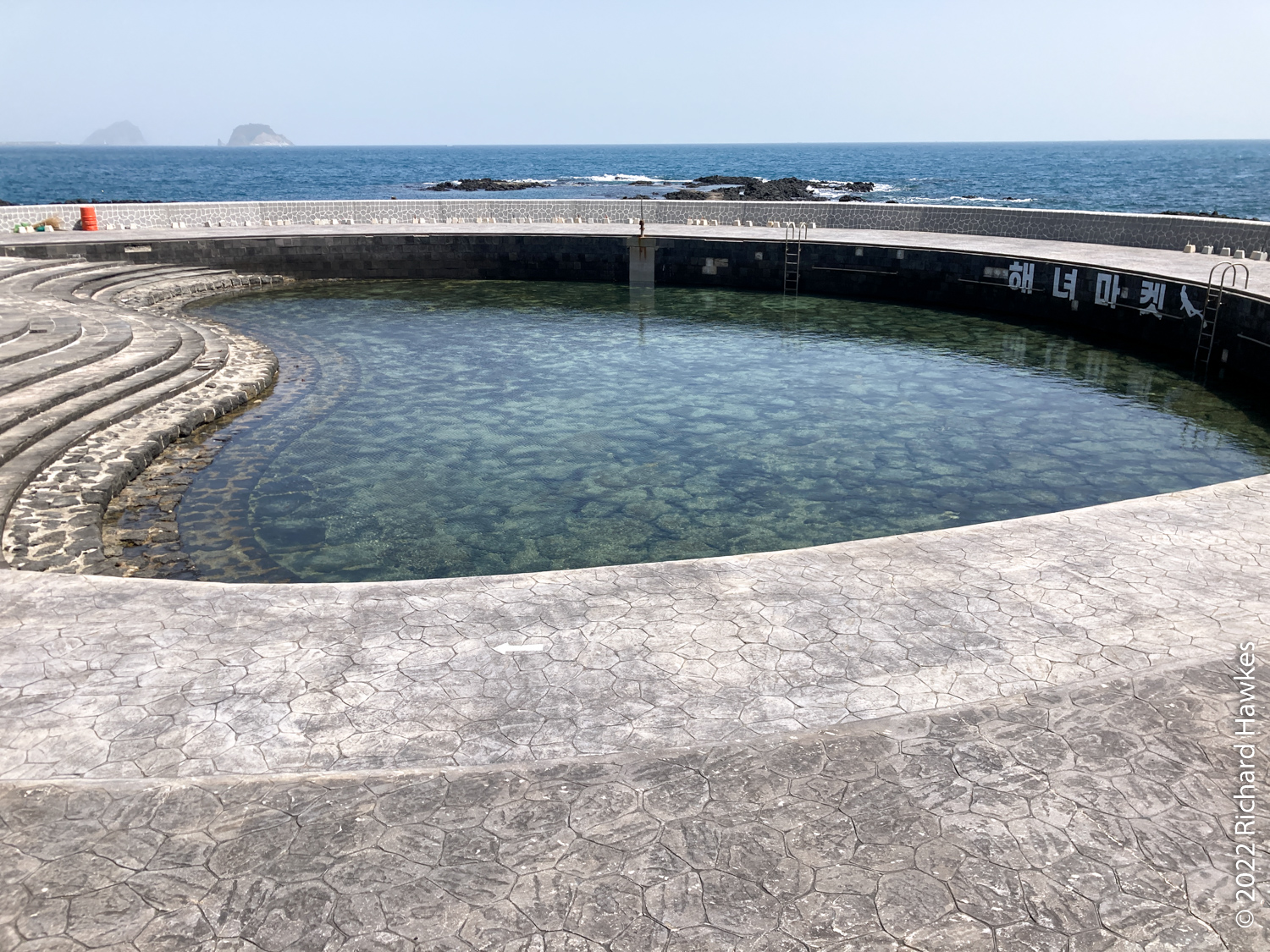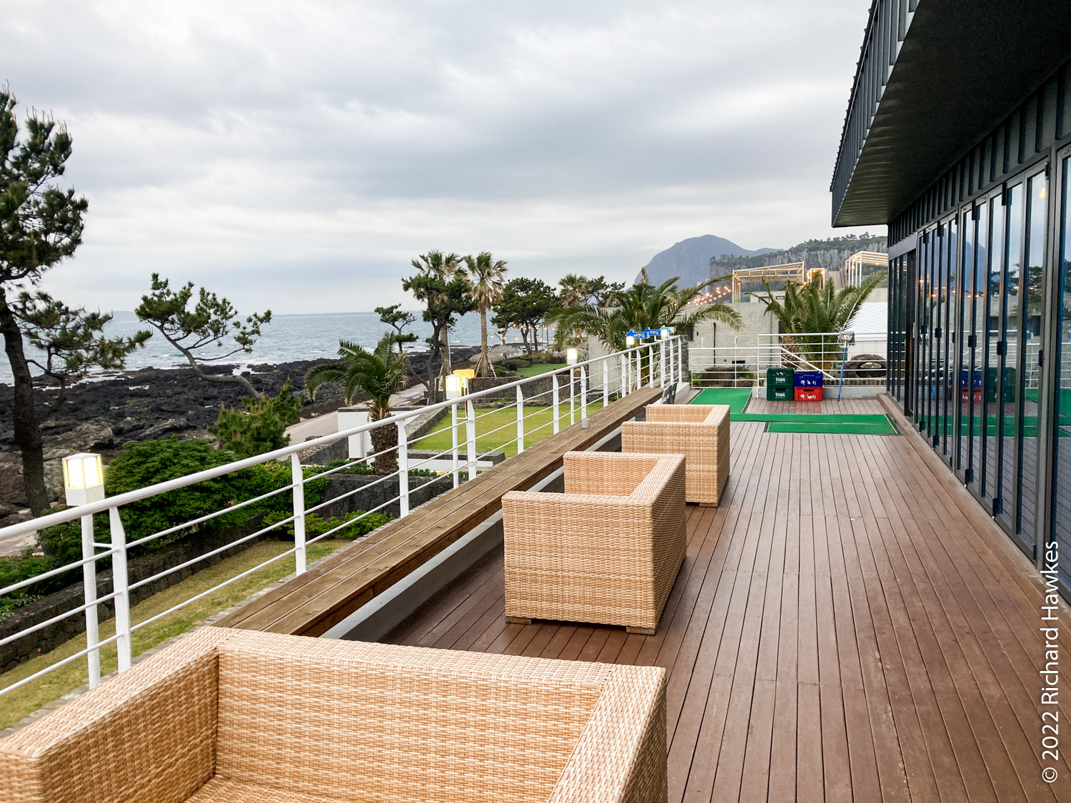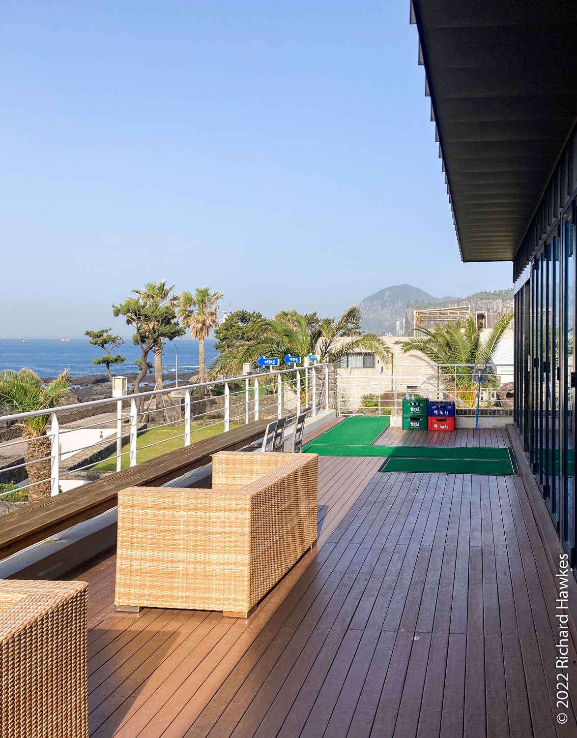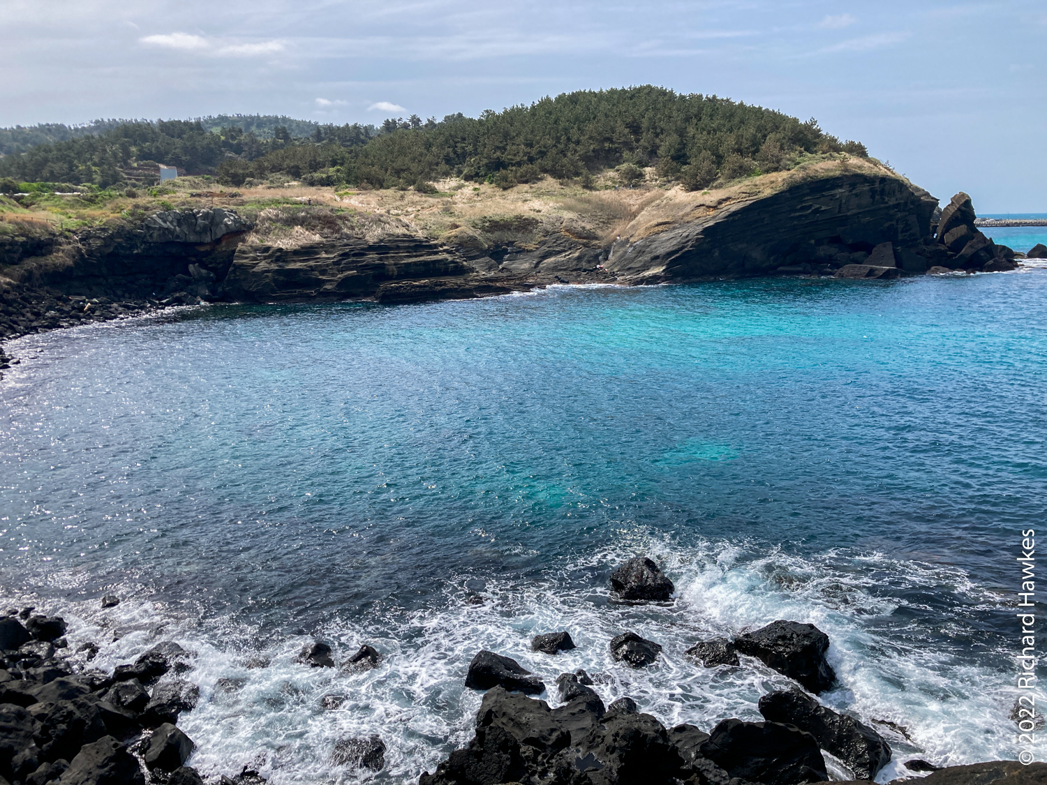 First day on the island for this 4-day trip. I got straight off the plane and onto the 8:40 102 bus to the south west of Jeju, then another bus a few kilometres up to Yongsu-hang harbour (용수항) the starting point of trail 12. I stopped at Bean2020 for a coffee (카페 빈2020). Good coffee and great location. I was too early for their homemade scones, sadly. There’s a rooftop looking out to the sea.