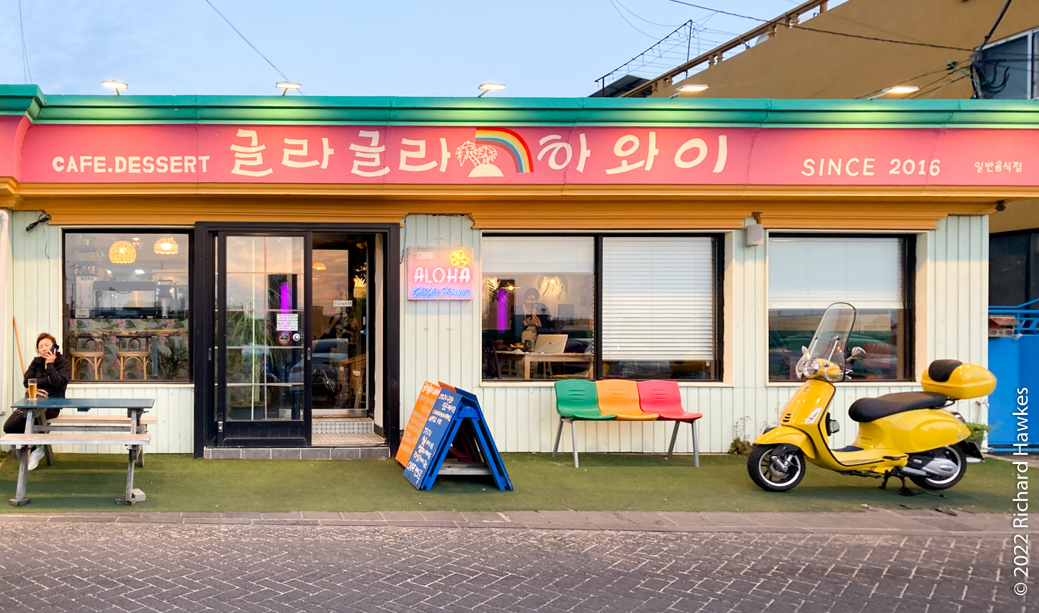 Once back on Jeju, I walked from the harbour to The Lemon Tree Guesthouse. and checked in. After showring, went next door for fish and chips and Magpie IPA at Gla Gla Hawaii. This was my second time here (and I’d visit again the next evening, too!