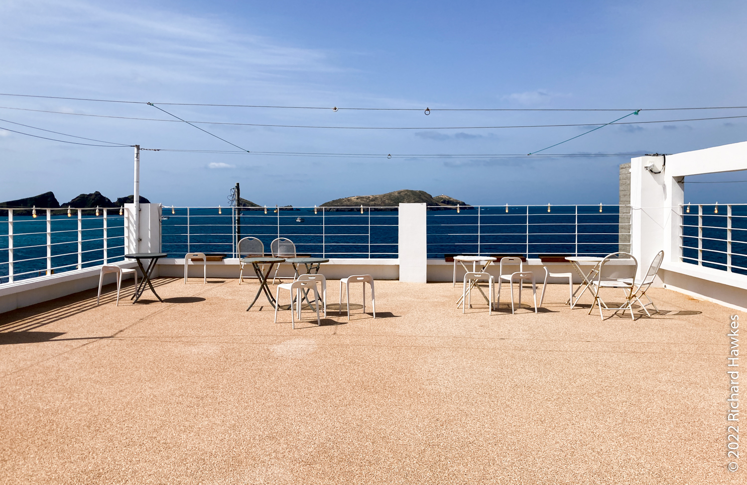 Fourth and last day on the island for this 4-day trip. I got up early and was on the road by 7:30. Wimi with Me Guesthouse is about halfway along Course 5, and the rest of the trail is mainly along coastline. It was turning out to be much much hotter than I was expecting; the sun was low and also there was no shade where I was walking. There are a lot of rocky coastline sections where I had to walk very carefully and it was all very beautiful and breath taking. I managed to change into my shorts without getting caught; there were a surprising amount of other hikers! At one section, where people can only pass single file, a group of hikers passed me going in the opposite direction; I think they were honestly about two coach loads of people and they were led and followed by a tour guide. There were a lot of paved sections, too, also very pleasant to walk along with lots of shade.