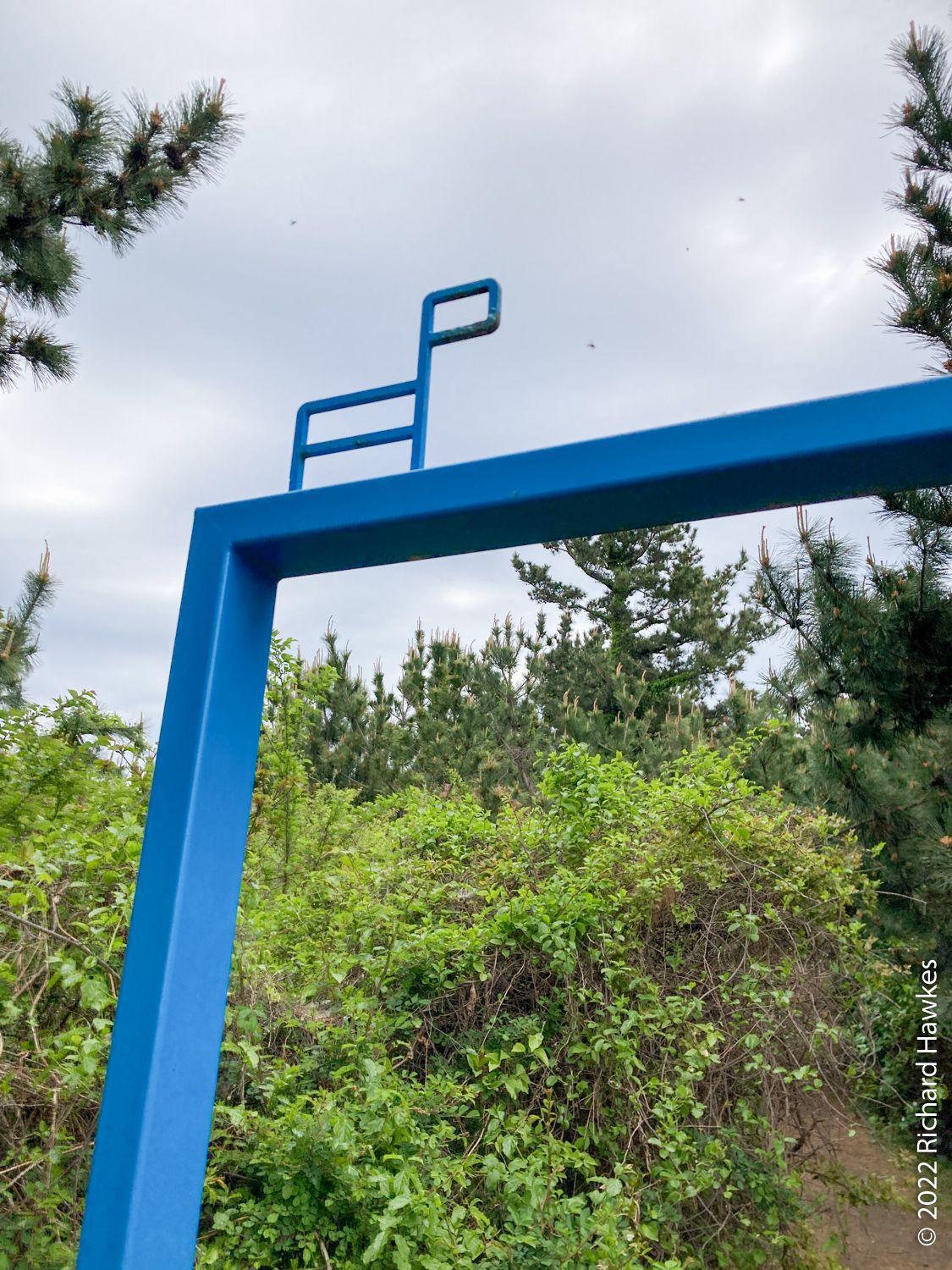 The next part of the trail got tricky as the path wasn’t super obvious. It seemed to say go back to the rocky beach but the was also a trail going next to the beach on higher ground. I wanted to avoid more rocky trail so took the upper trail. It soon kind of stopped and went into what seemed like hilly private forest; I kept going looking at my GPS position on Naver Maps. I was going onto unchartered territory here (a bit like yesterday!) and then came to a solid wall of vegetation of deep green leaved plants. So go back or continue? I looked at ground level and saw there was actually the remnants of a rocky trail so I pushed through the vegetation and put aside the thoughts of any bugs transferring to me… Finally I got out of the bushes and onto a trail and back to the road; and past a sign saying “Don’t enter here, it’s private”. Oops.