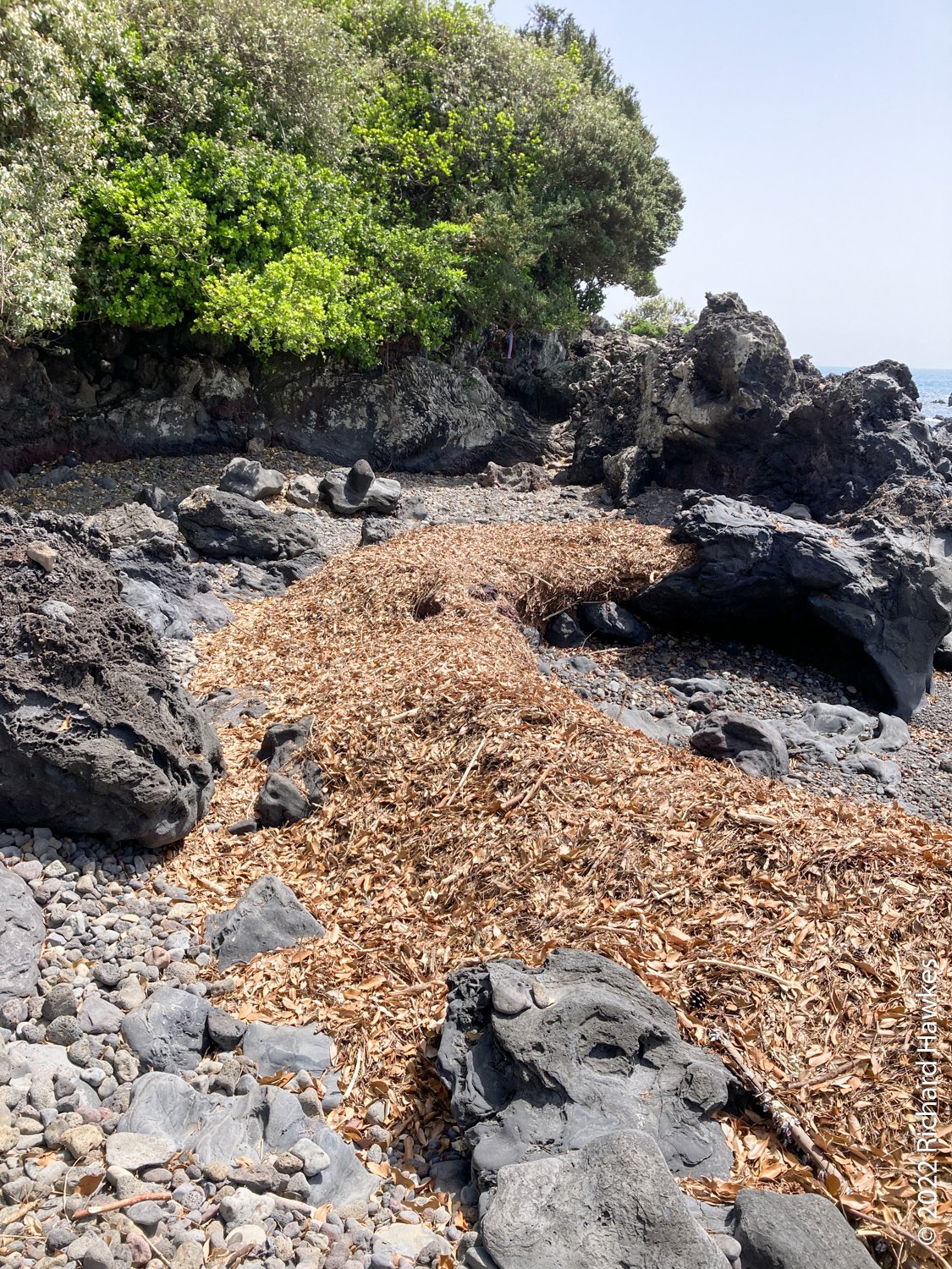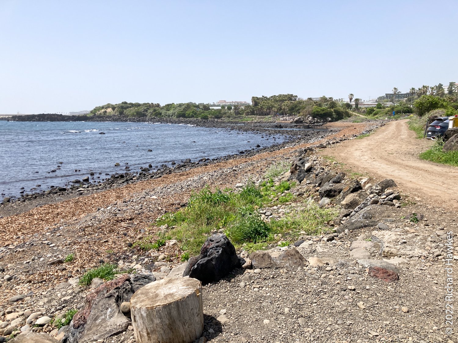 The bus ride (531 or 633) took me close to the start of the Route 7 which was in an intensive farming area; not sure what the crops were as they were in plastic sheeting green houses. There were some mandarin trees around too. I walked along the narrow roads and then into a nice little village and the actual start of the trail. It hugged the coast and there were great black pebble beaches and hilly, forested paths.