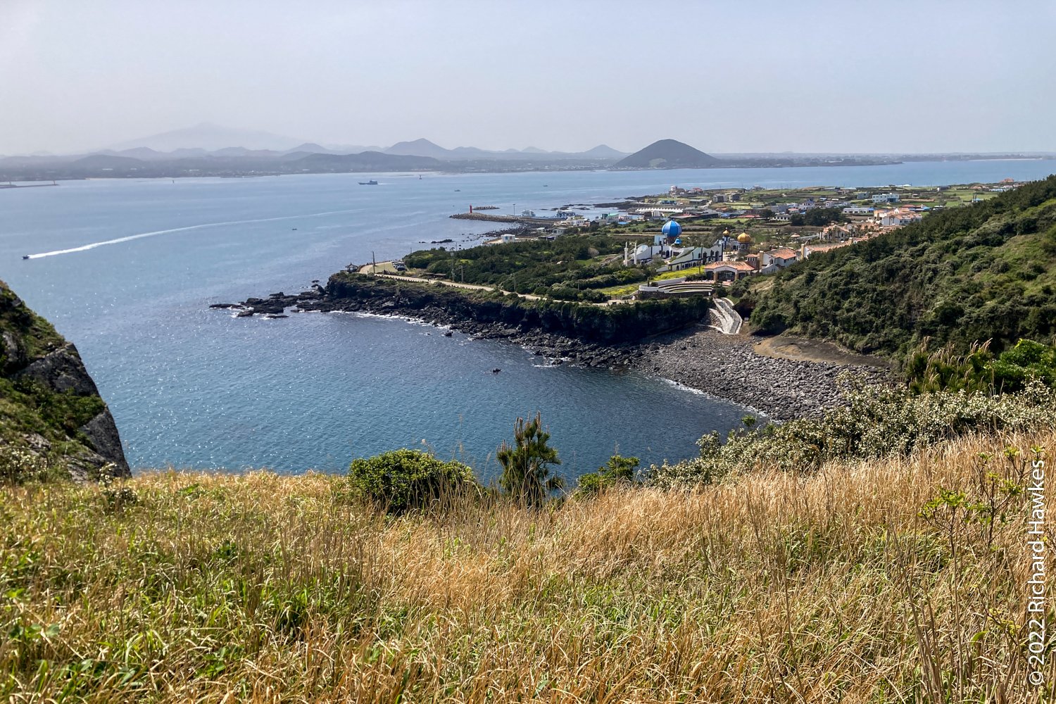 Fourth (and last) day on the island for this 4-day trip. I had toast and coffee (one espresso shot plus Americano in one cup) on the terrace overlooking the harbour at the Seom Guesthouse on Jeju; fantastic weather today! From Seogwipo Everyday Market, gate 7 bus stop (서귀포매일올레시장), take the 201 bus that goes to Seongsan Harbour Entrance (north: 성산항입구, 북) that heads east. BEWARE, not all the 201 busses stop at the harbour entrance, so ask the driver if this bus goes to Seongsan Entrance. You might have to wait a few to get the right one… This is my second post about Udo and I think the fourth time I’ve been? The first post is here.