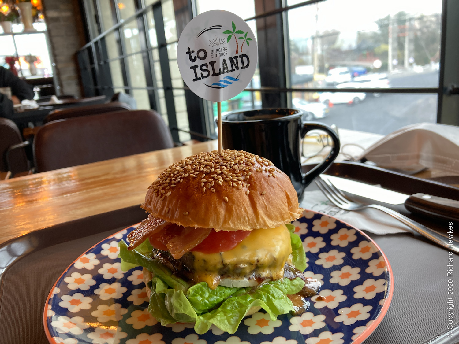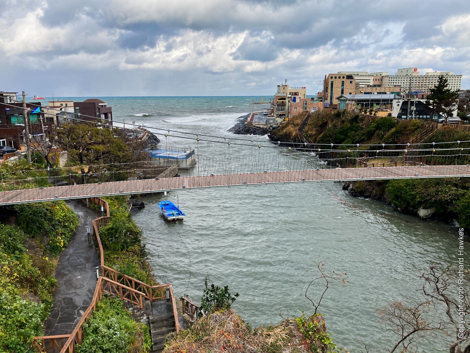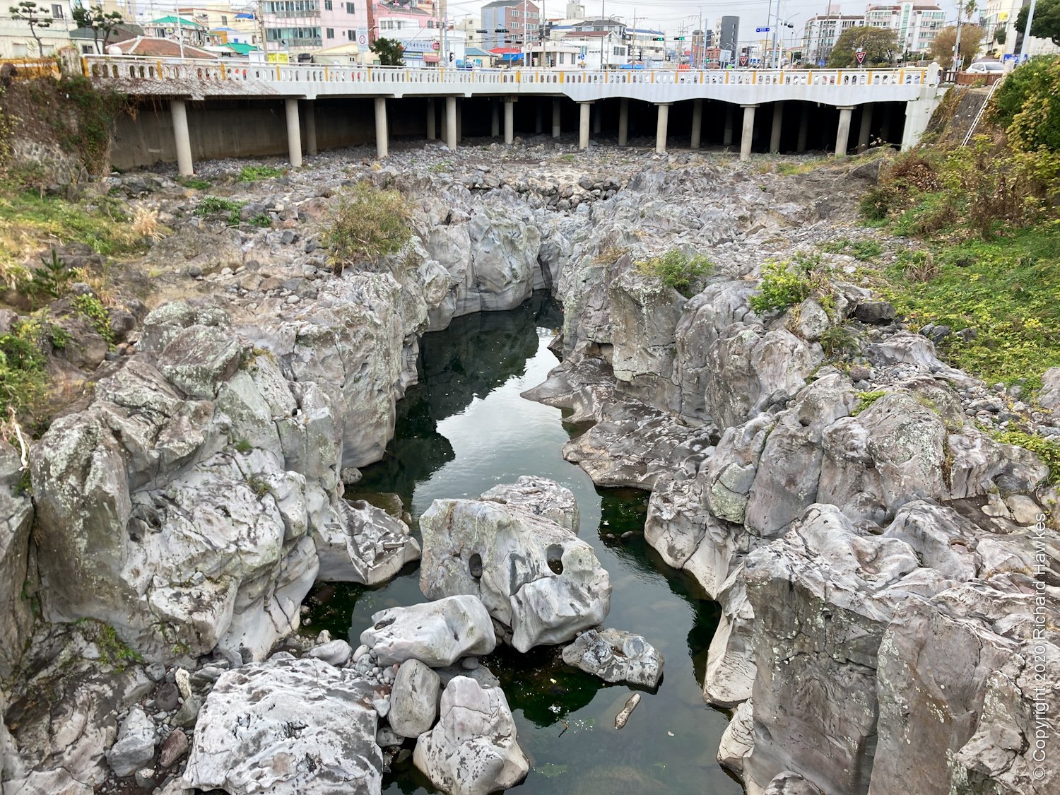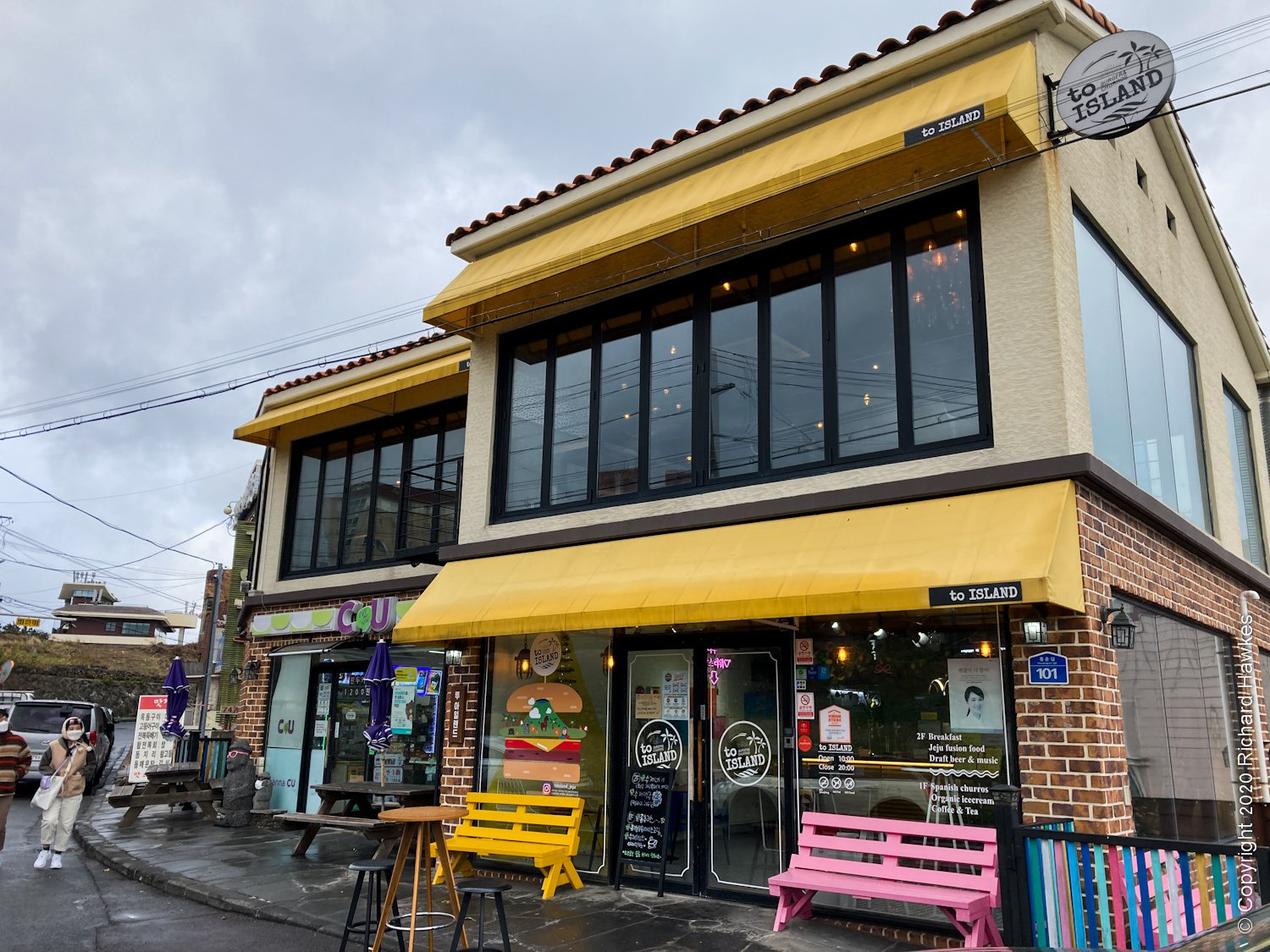 Straight off the plane and into my Kia Morning rental and then straight to a place to eat, to ISLAND cafe. This is near Yongyeon Stream (용연계곡), formed with volcanic lava flows and quite picturesque as an estuary to the sea. It was a bit windy and chilly to really appreciate it though, and this is when I saw my first snow of the year. The burgers at the cafe were homemade and tasty, and if I hadn’t been driving, I could have had a nice Magpie ale…