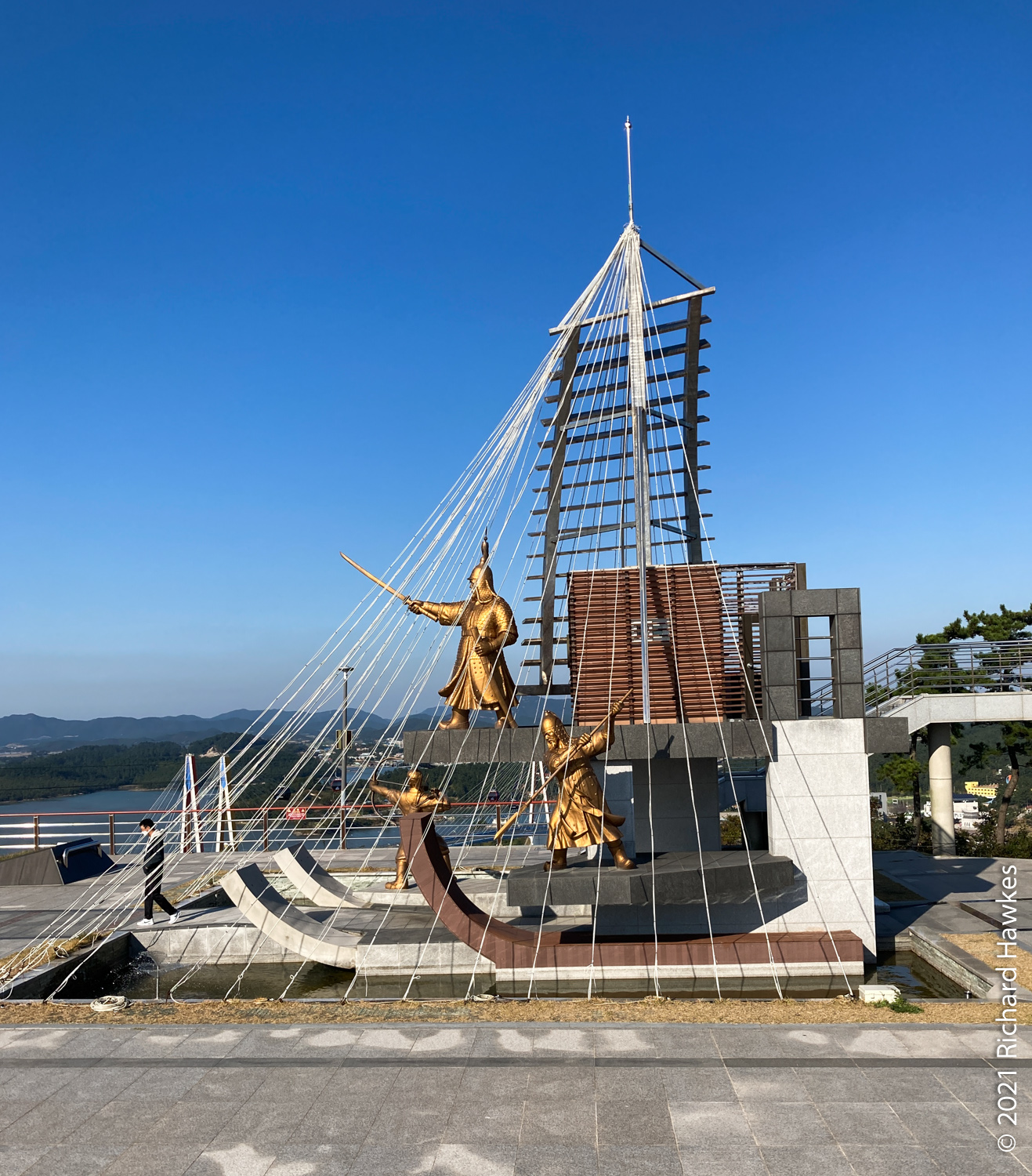 I kept driving south to Jindo (진도), the place that the ubiquitous Korean dog is named after. I was going to visit the cable car that goes over the Myeongnyang Straight, location of the a battle between Admiral Lee Sun-sin and invading Japanese forces in 1597. I missed the cable car entrance, however, and went across Jindo Bridge to the other side to Jindo Tower. I didn’t actually use the cable car in the end, and instead strolled the small park and went up the tower for some views.