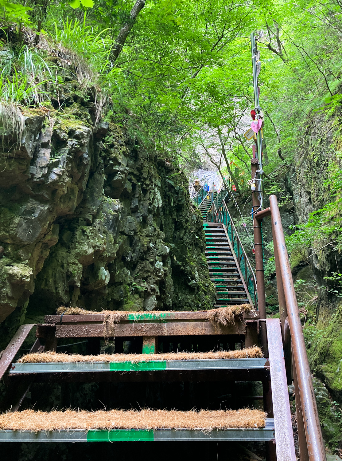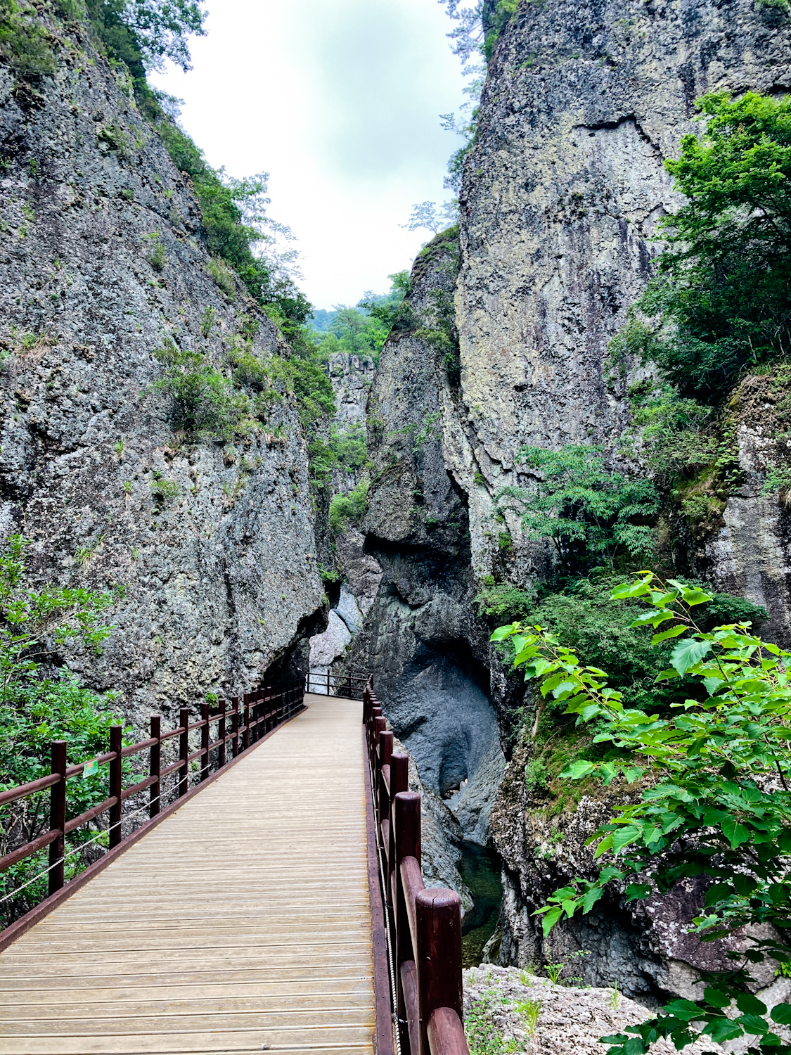The final part of my hike took me to the small hermitage, Juwangam (주왕암) with lots of steps and walkways to a shrine in a cave. The walk to this place looked up to the cliffs and ridges I’d passed on my hike up. Very impressive. This was a detour route, so next time, I might walk along the river as there was a promise of huge imposing boulders in impossible positions along the way!