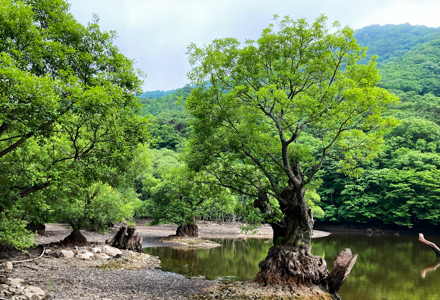 I started the day with fried bacon and eggs. It had been a pretty crappy night due to my neck pain exasperated with minimal bedding, but I felt okay now and ready to head out. There’s an entrance fee to the park. There is a route to different peaks near Daejeonsa temple (대전사). I spent a moment deciding which route to take and decided to follow the Juwangsan loop I found on AllTrails. A bit further on I had to decide which way around I’d do this loop. I decided anti-clockwise; good choice it turns out.