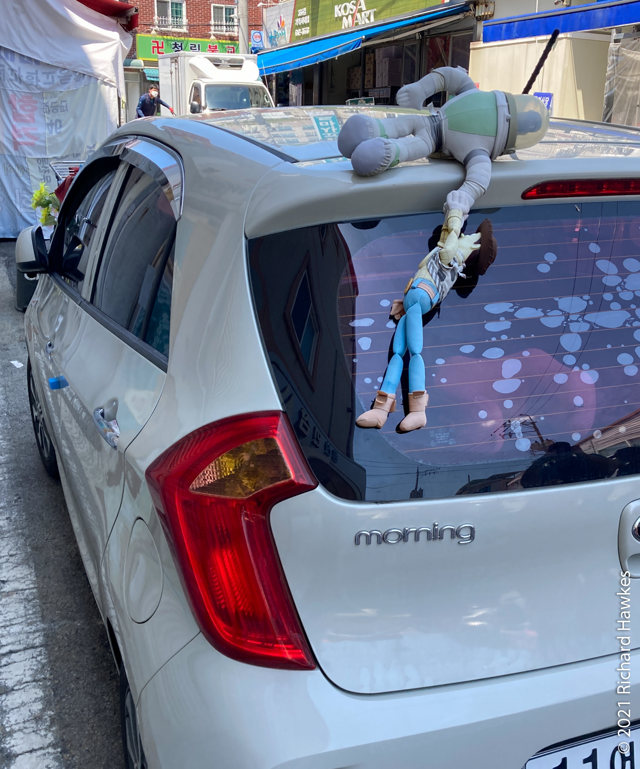 At a suitable spot, we had ice cream before walking back to our car through the market where I spotted a dramatic re-enactment of a scene from Toy Story.