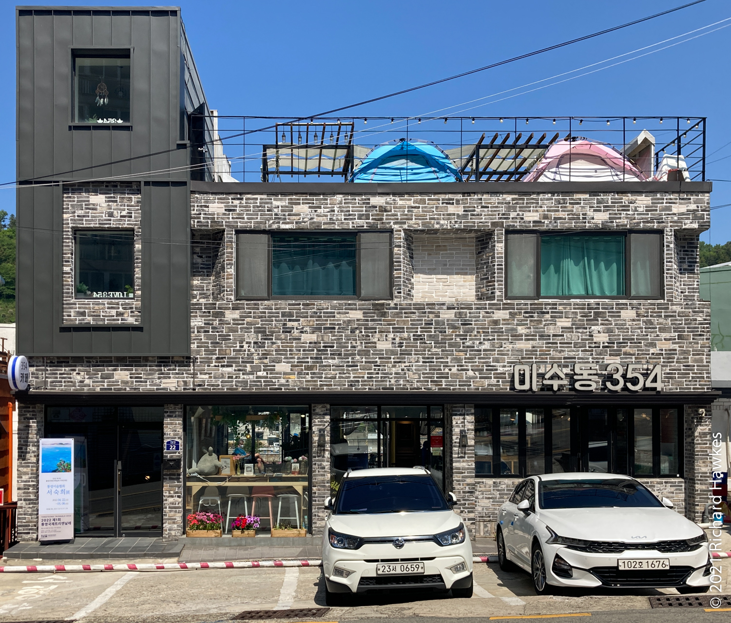 On our final day down south, we packed up and left our cool pension accommodation, and drove a short way into town for some breakfast at Misudong354 (미수동 354) a decent brunch and coffee place next to the canal.