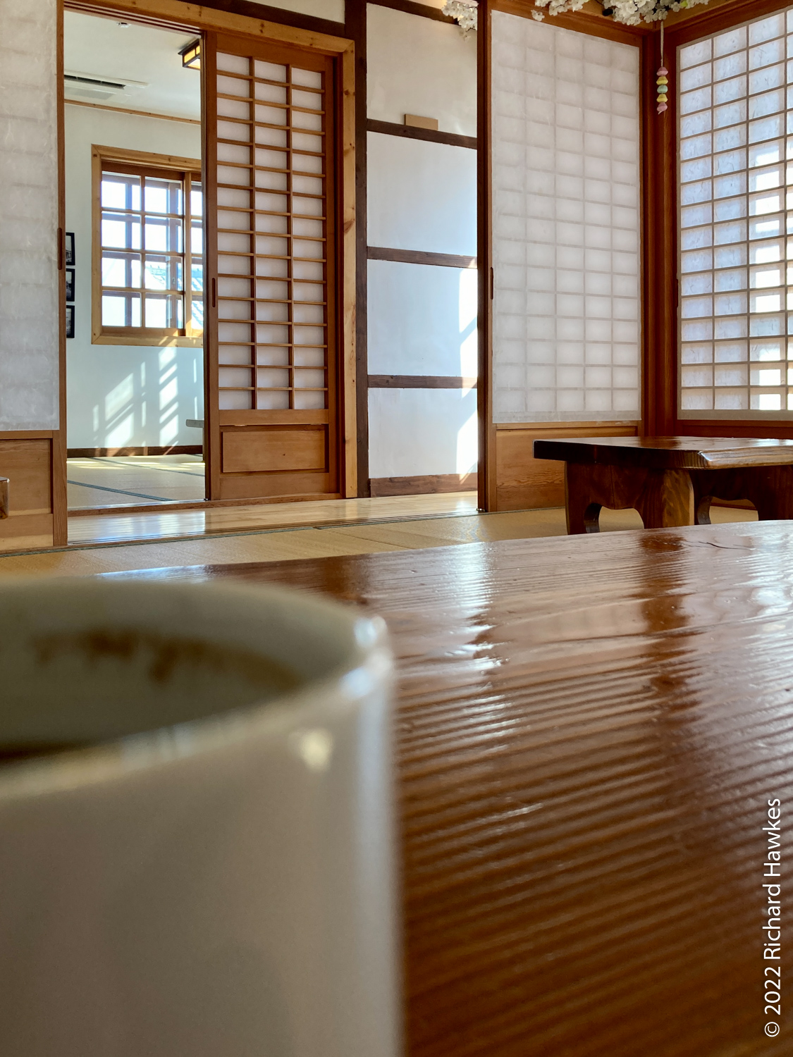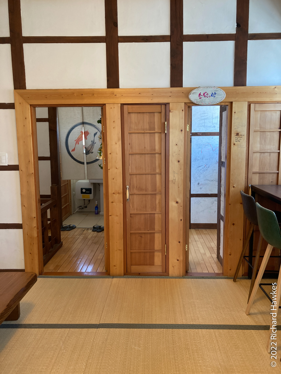 I then took a slow walk back towards the harbour and to Miz Coffee (미즈커피), a very nicely decorated cafe. The upstairs interior was in the style of a Japanese house, with a corridor running around the edge and different rooms in the centre. All were decorated with tatami and small tables to sit around. Very lovely. I was the only person there so could snap away in all the little rooms and ‘hidden’ without bothering anyone!