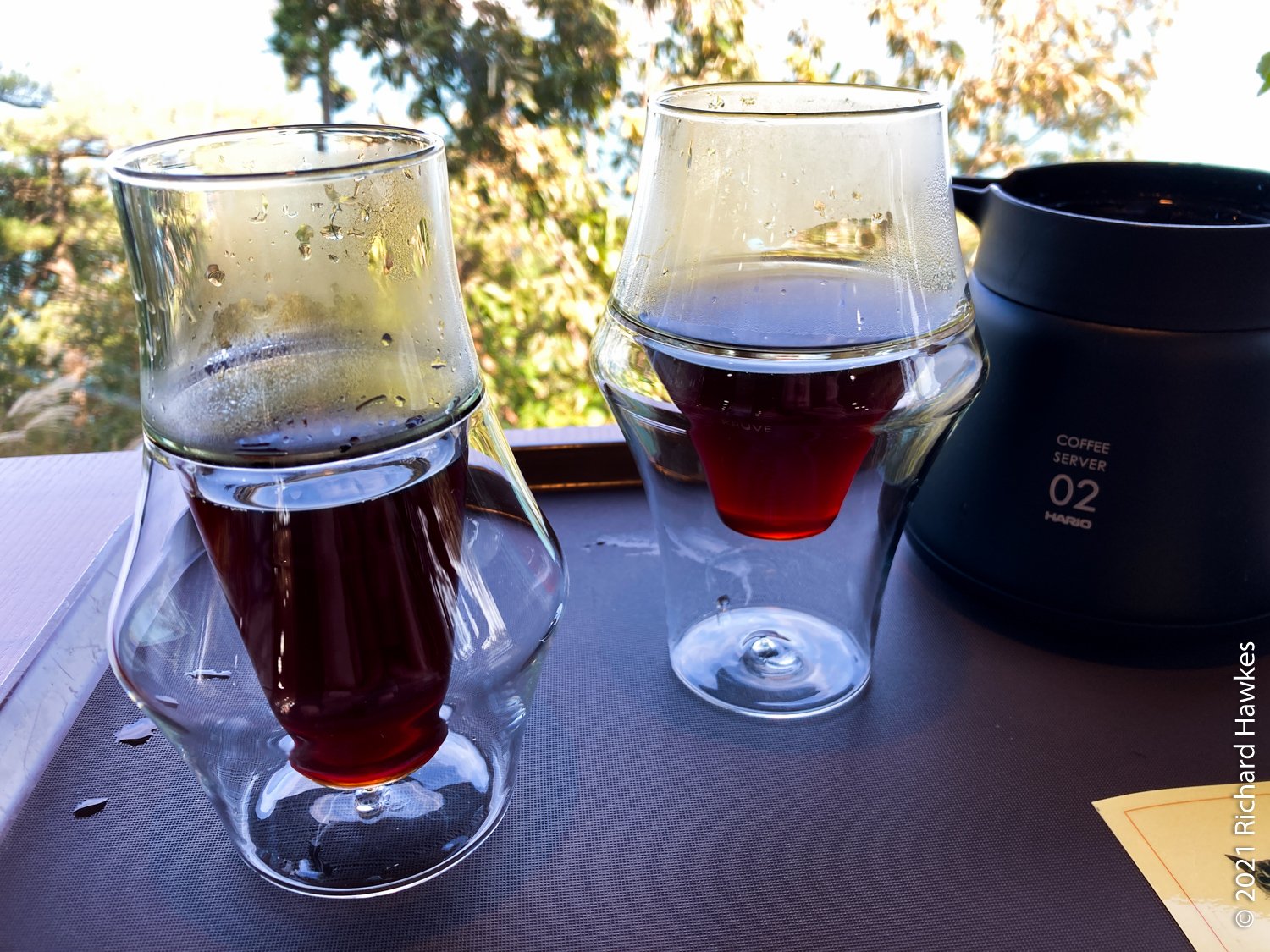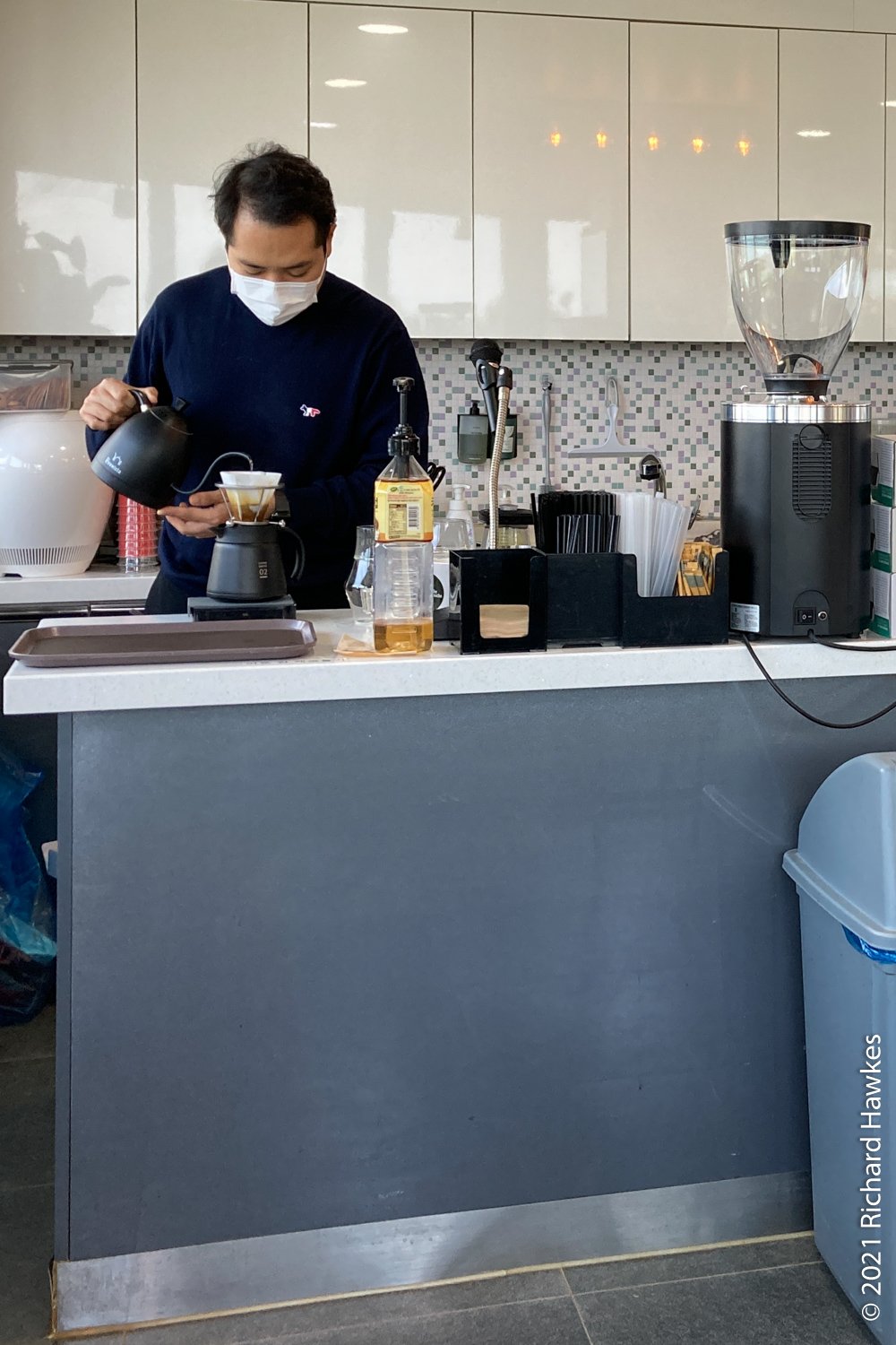 On Gohado, I walked to Cafe Panache(?) (커피파나쉐전망대점) on the ground floor of the Gohado Observatory (고하도 전망대). I ordered a drip coffee that was served in two glass cups. The two different shapes allowed different aromas and tastes to flourish, apparently! Anyway, it was very good coffee and there was a great view from the window seat.