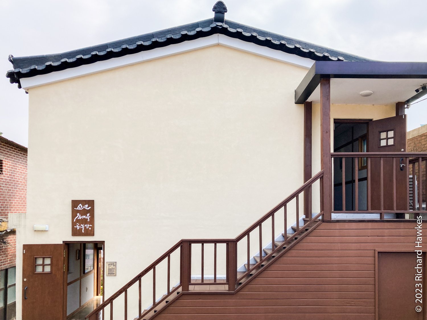 There were more historical buildings and other refurbished residential buildings. The whole area is flat with wide streets and the buildings are mainly low. I spotted an old house with a garden and decided that was my first rest stop. It was called Happy Home Cafe(?) (행복이가득한집카페), and the building was probably owned by Japanese business owners in the past. It mentions a 150 year history. It was a two-storey building with a small garden. Upstairs had a terrace. There’s lots of seating and the place is full of bits and bobs from the past. It was a pleasant place to have coffee and cookie before continuing my walk.